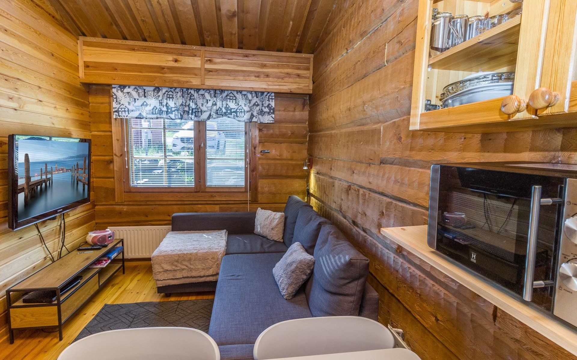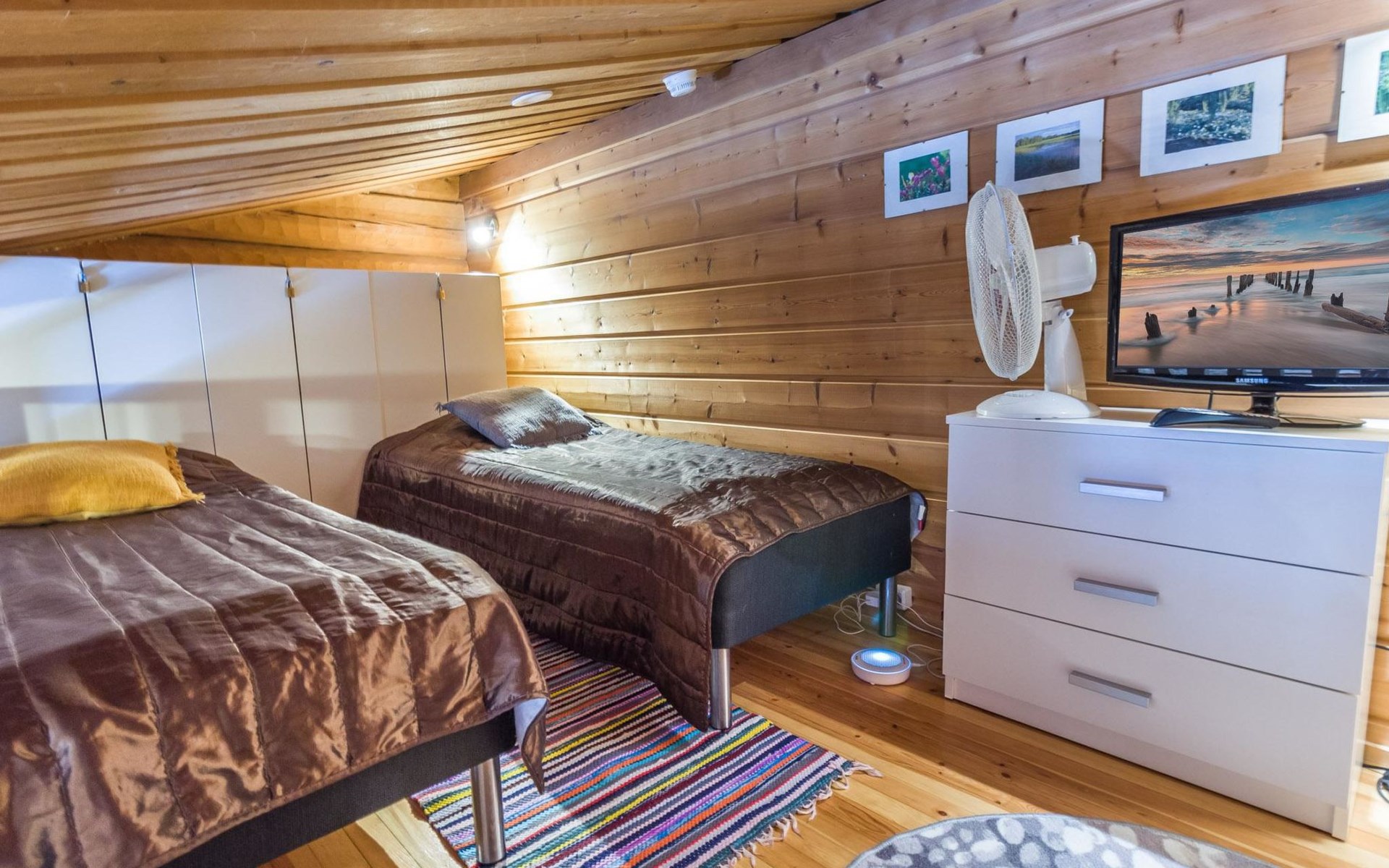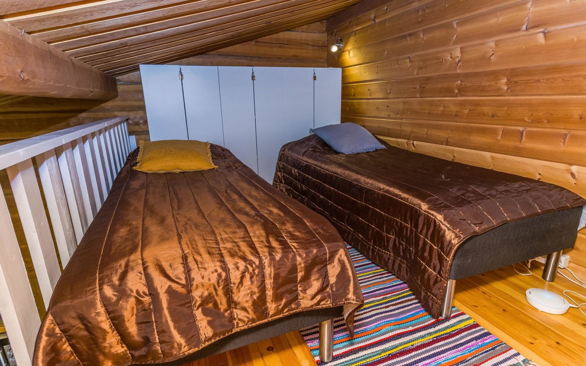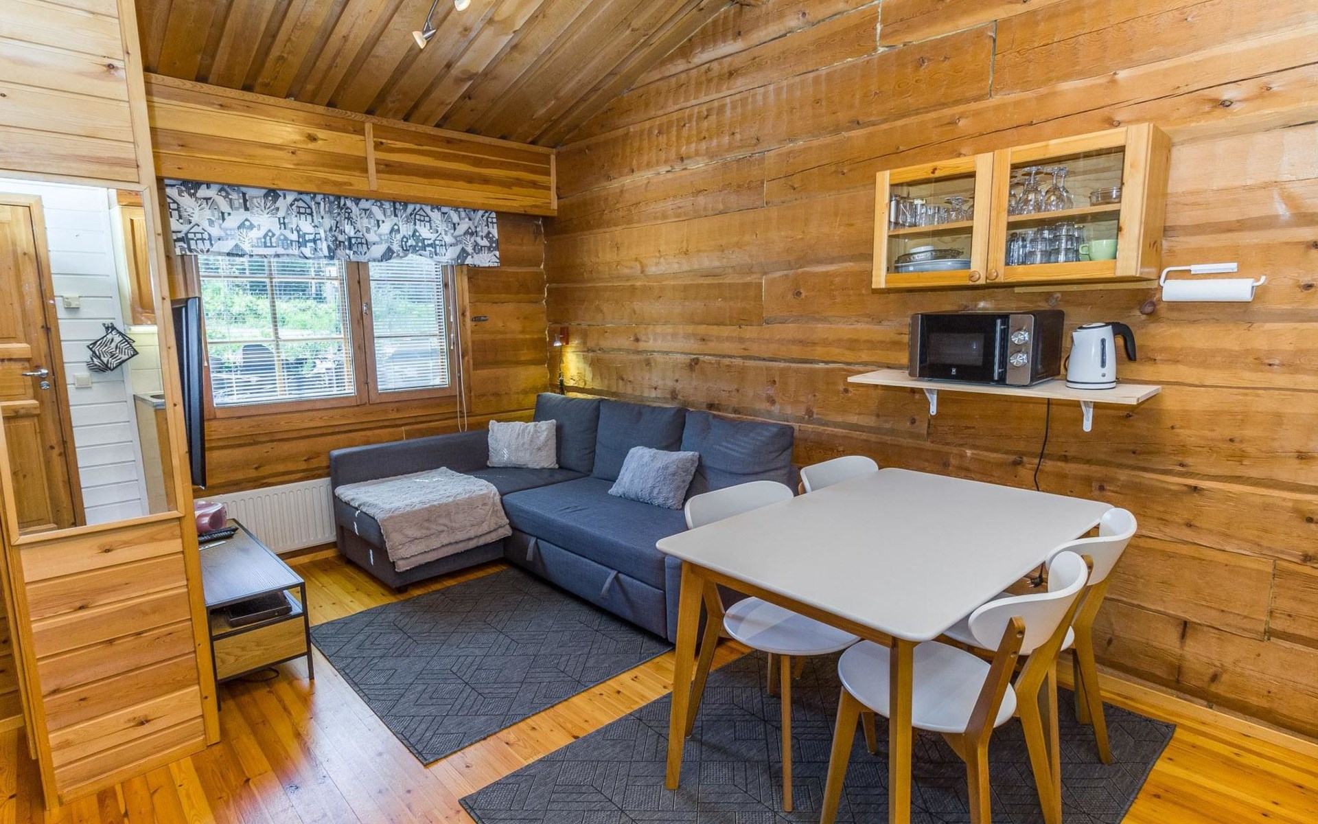 The apartment has a kitchen / livingroom with a fireplace, a low loft of 7 m² with two single beds. Two extra beds from the sofa bed in the living room. Bed places in total 2+2. Toilet/washroom, sauna with electric stove.