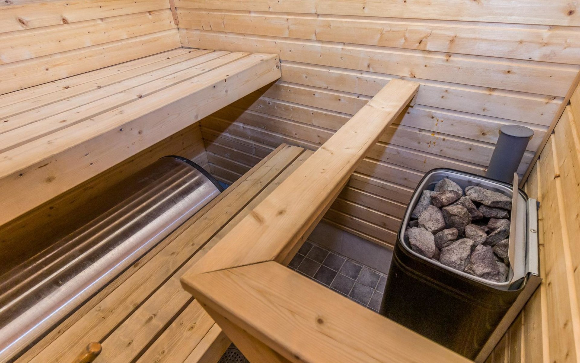 In summer, the possibility to swim and fish in Salmilampi, a rowing boat is shared by the residents of Porokaarre (life jackets for 2 adults and 2 children). In winter, there is an opening at the end of the pier and the dock route runs on the ice of the pond.