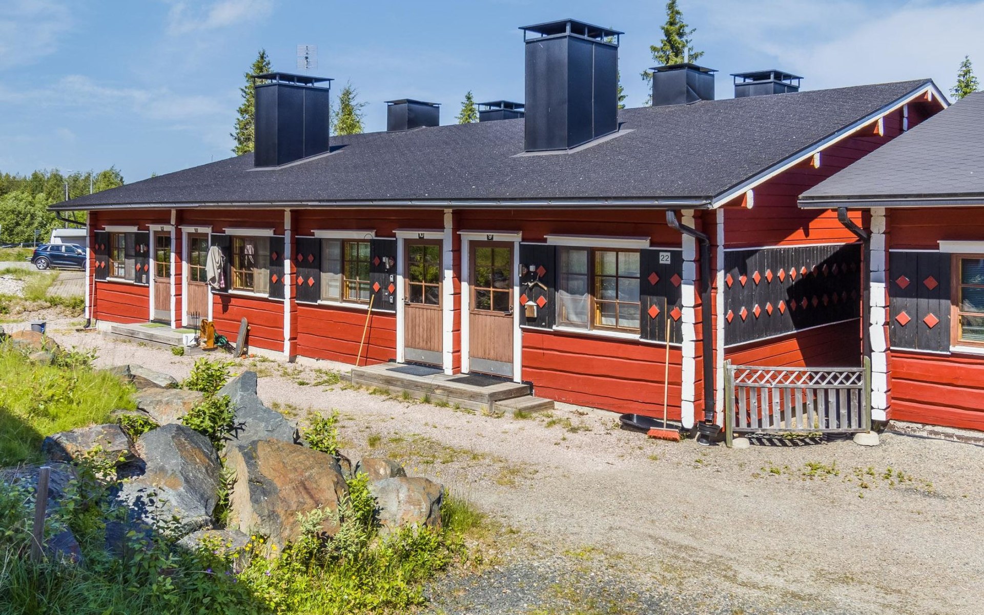 All services in Ruka are close by, in winter you can easily get to the slopes with the Skibus right in front, a stop nearby (50 m).