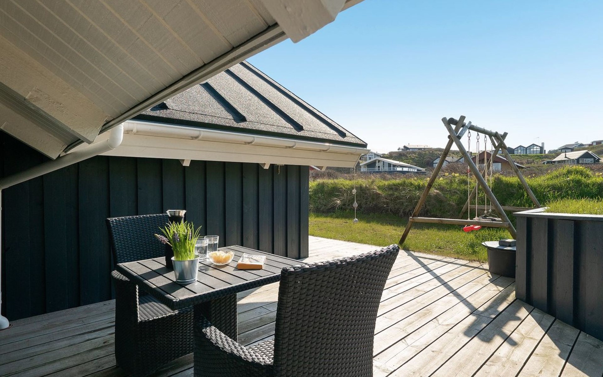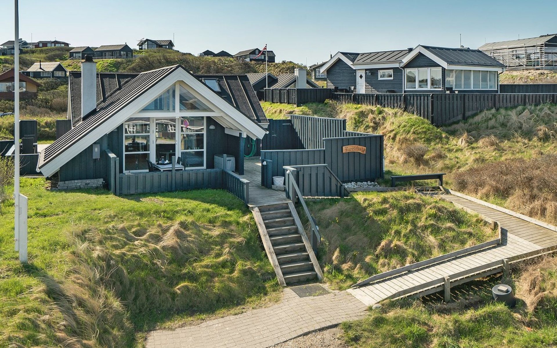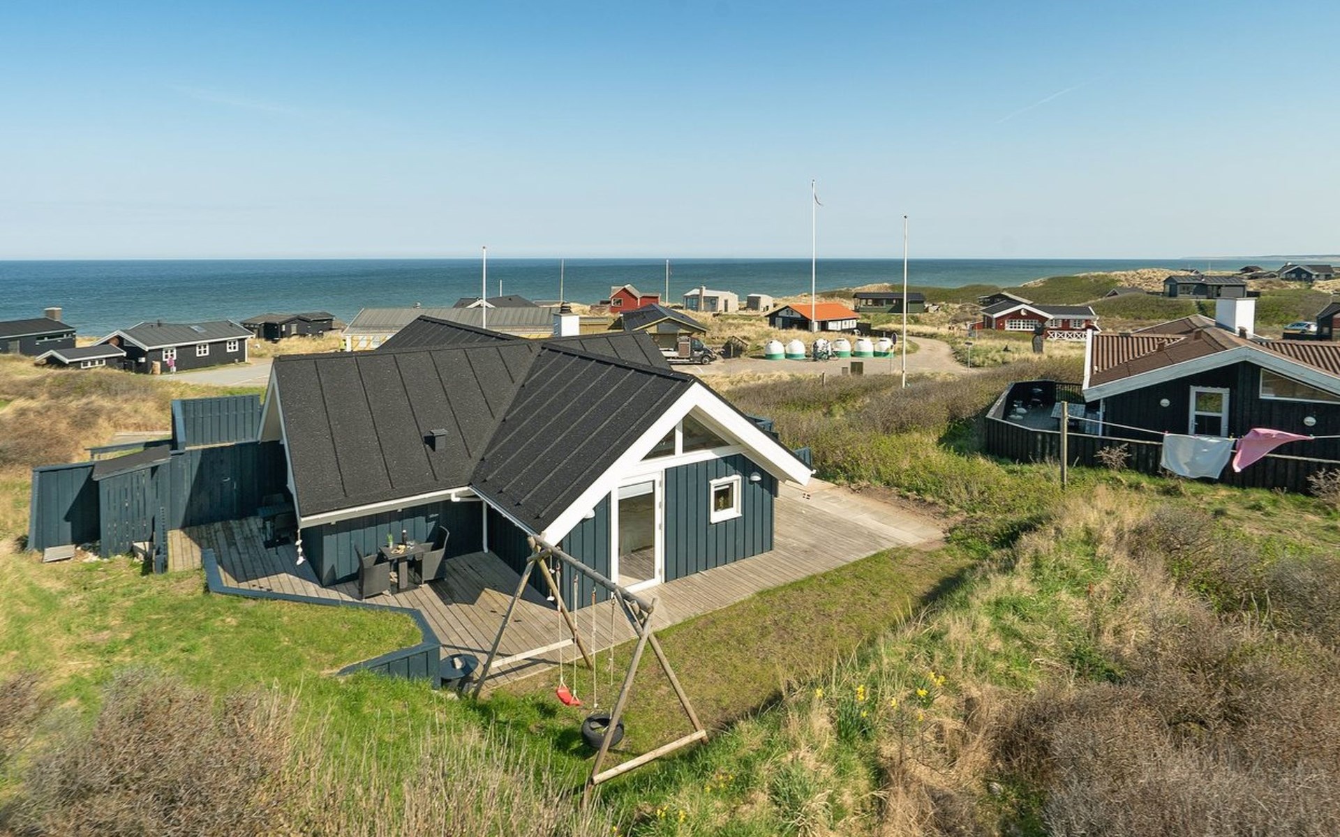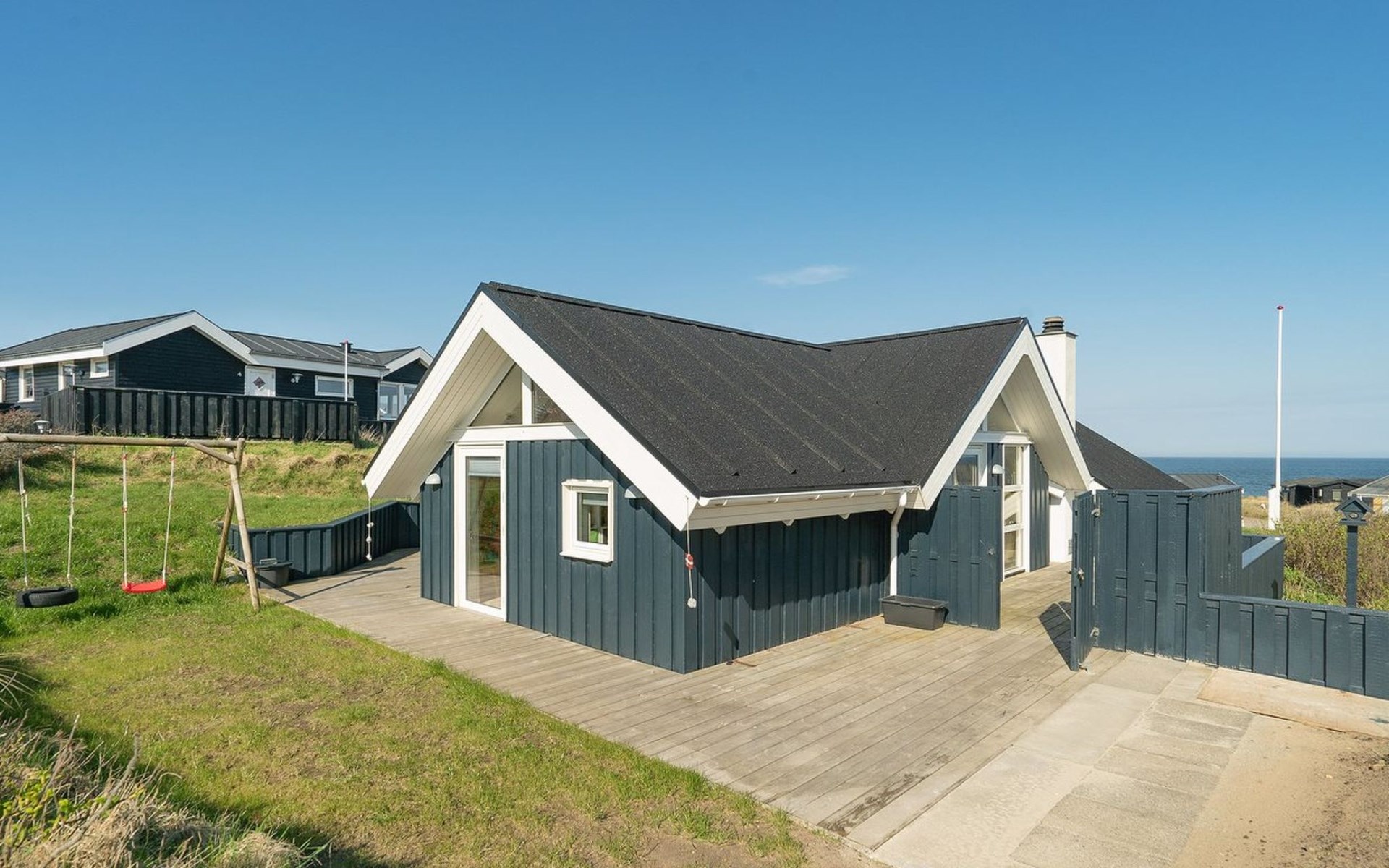 Single-family house, built in 1979. 100 m from the sea. Private: natural state property 814 m2. Terrace (25 m2), children's playground (swing). In the house: washing machine, tumble dryer. Parking at the house. Grocery 50 m. The owner does not accept any youth groups.