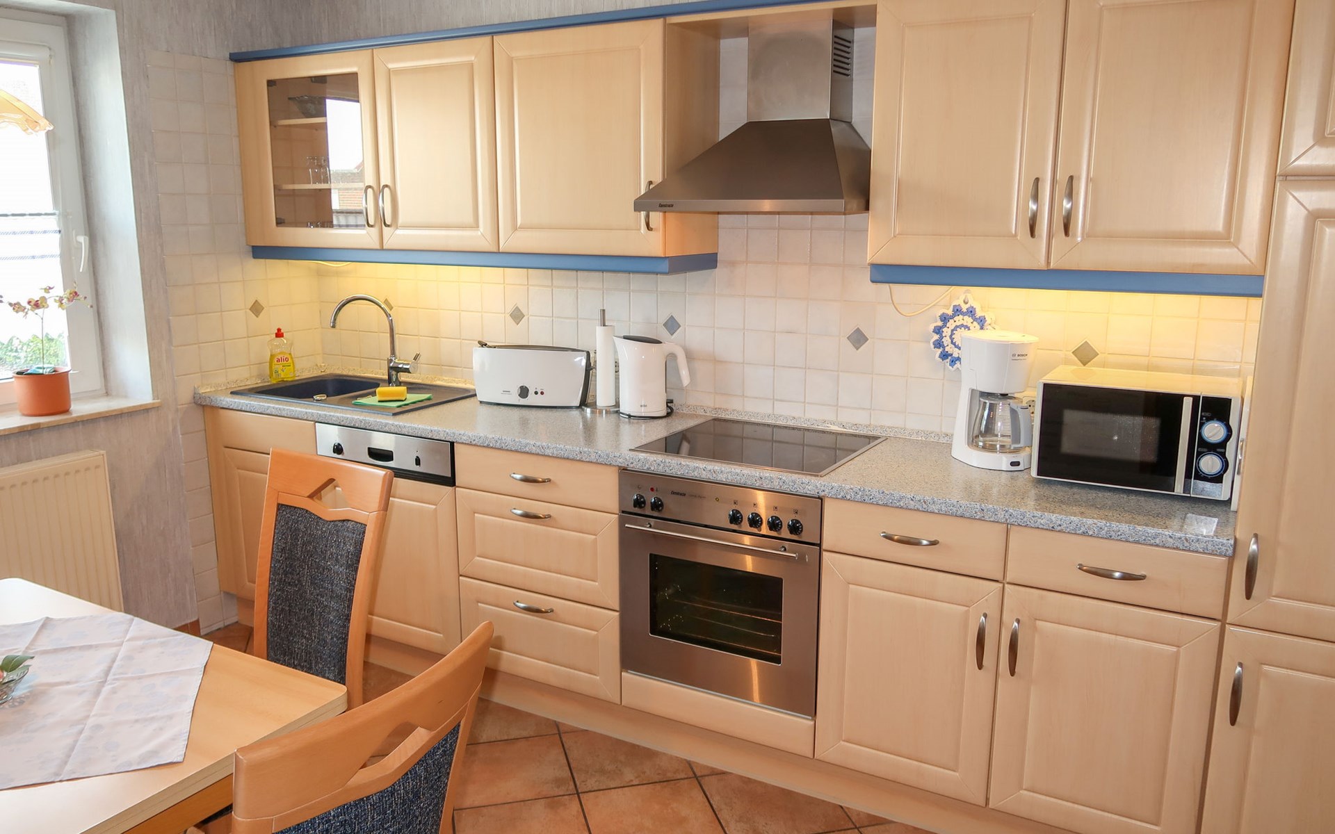 Wiarden 6 km from Horumersiel: Semi-detached house "Tjarks". 8 km from the centre of Hooksiel, 16 km from the centre of Jever, 6 km from the sea, in a cul-de-sac. Private: property 350 m2, well-kept garden with lawn and wildlife garden. In the house: table football, central heating system. Roofed, parking at the house. Supermarket 3 km, bus stop 400 m, railway station "Jever" 16 km, sandy beach "Horumersiel" 6 km, outdoor swimming pool 6 km, indoor swimming pool 6 km, bathing lake 3 km. Marina 6 km.