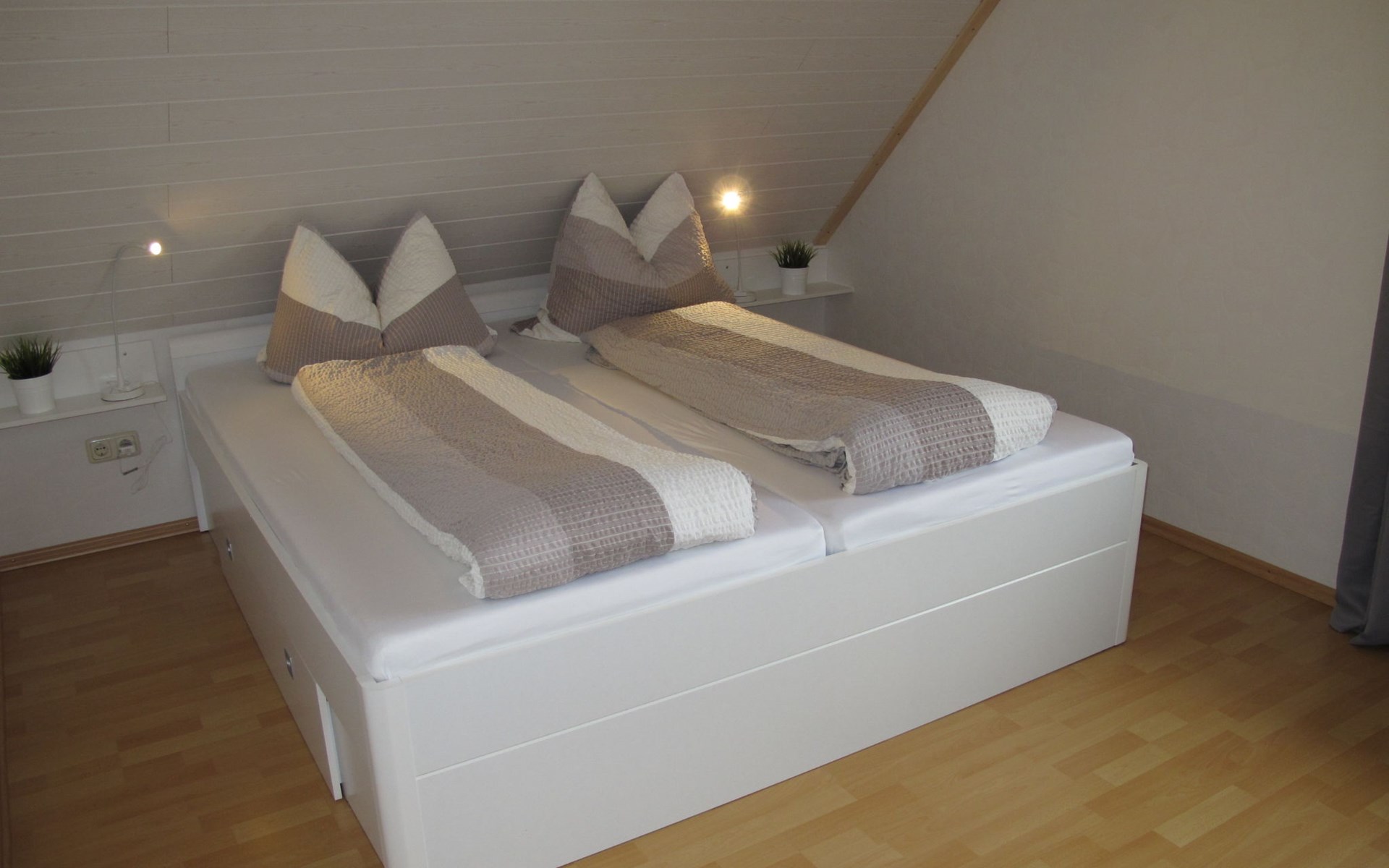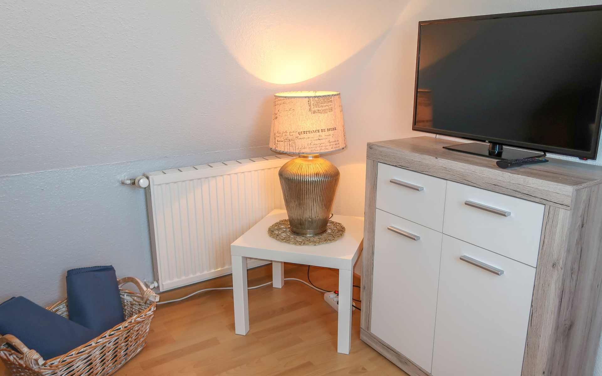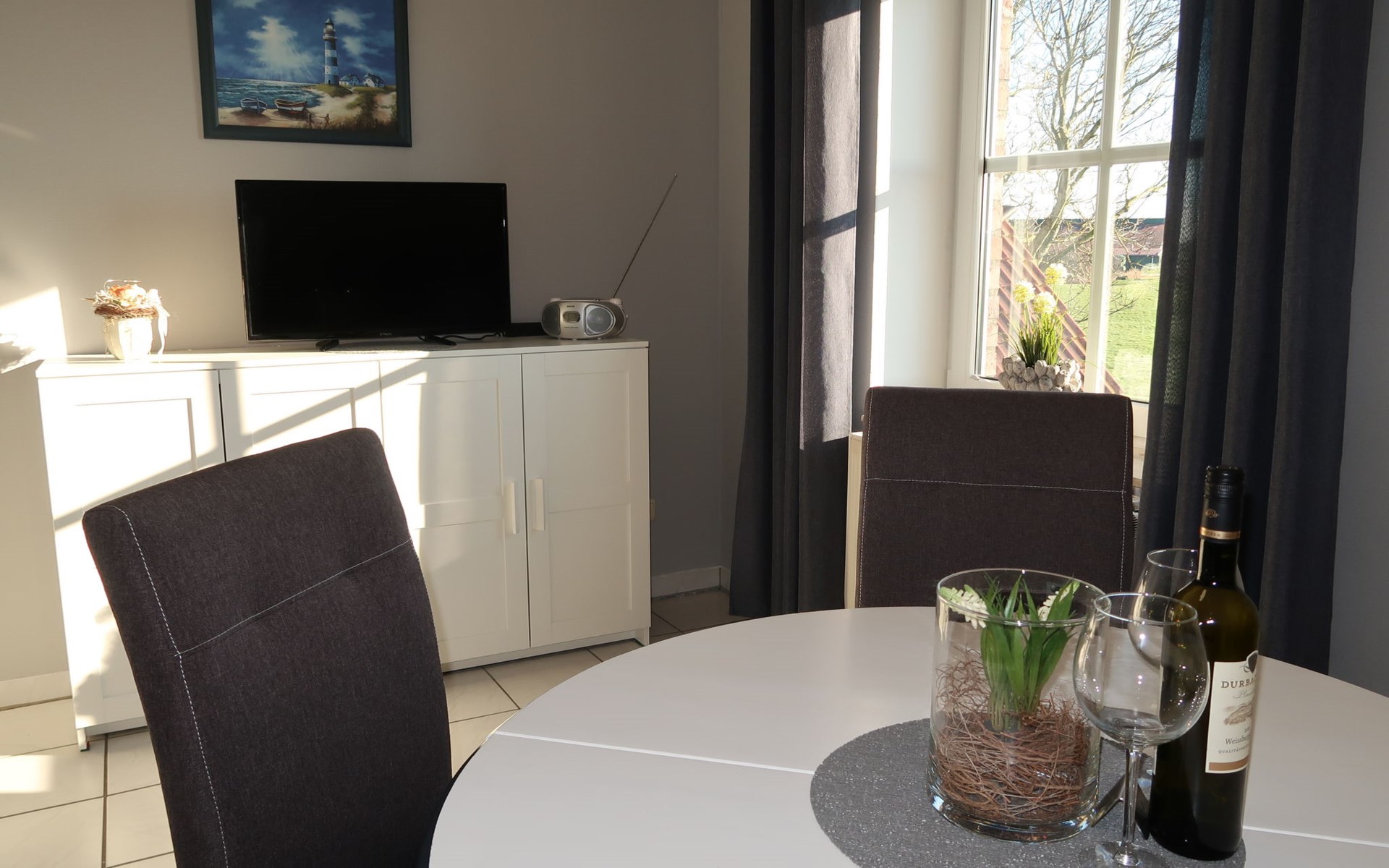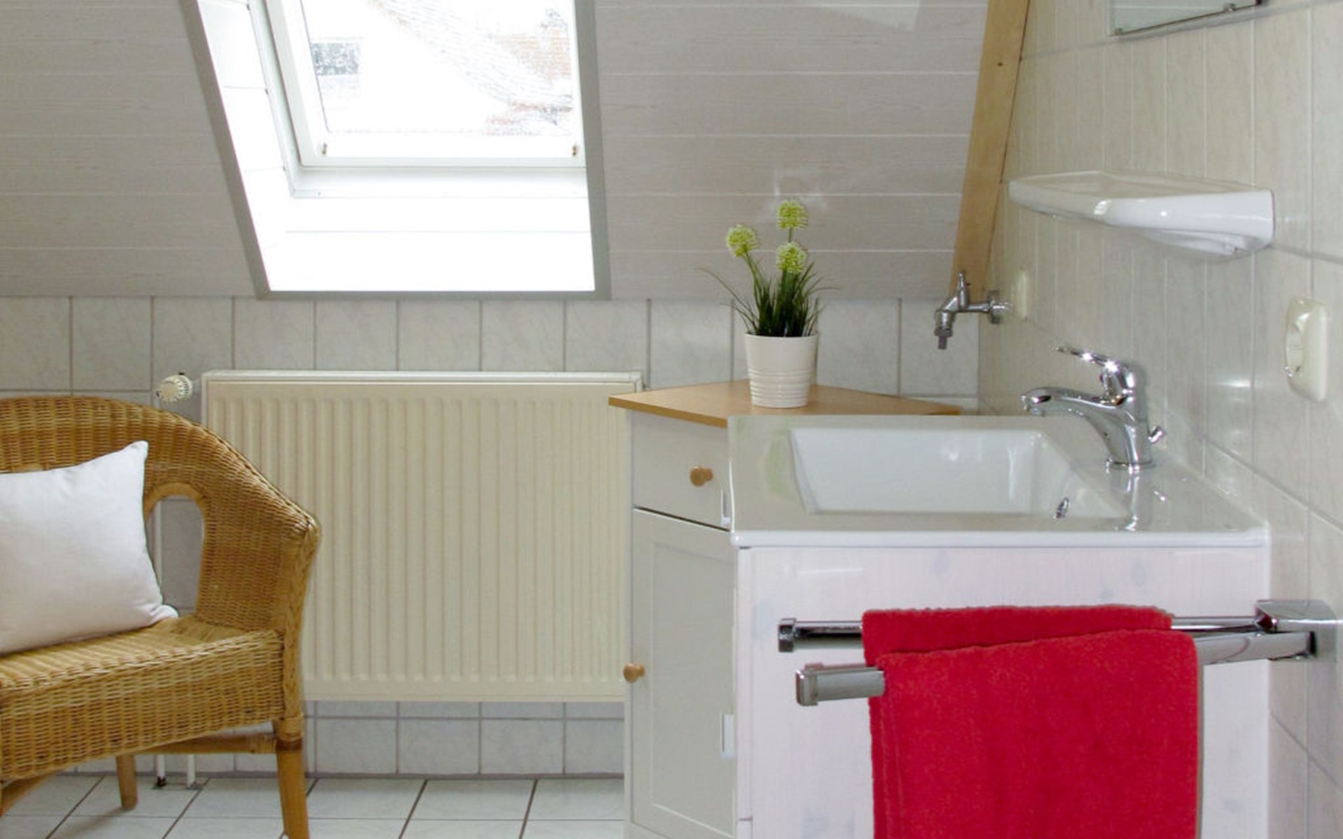Wiarden 6 km from Horumersiel: 2-family house "Rosenboom". On the outskirts, 24 km from the centre of Wilhelmshaven, 6 km from the sea, 8 km from the lake. Private: property 700 m2 (fenced), well-kept garden with lawn and wildlife garden. Terrace, garden furniture, barbecue. In the house: storage room for bicycles, central heating system. Parking at the house. Supermarket 3 km, bus stop 100 m, railway station "Jever" 16 km, sandy beach "Hooksiel" 6 km, grass beach "Horumersiel" 6 km, outdoor swimming pool 6 km, indoor swimming pool 6 km. Marina 6 km. Storage room for bicycles is lockable.