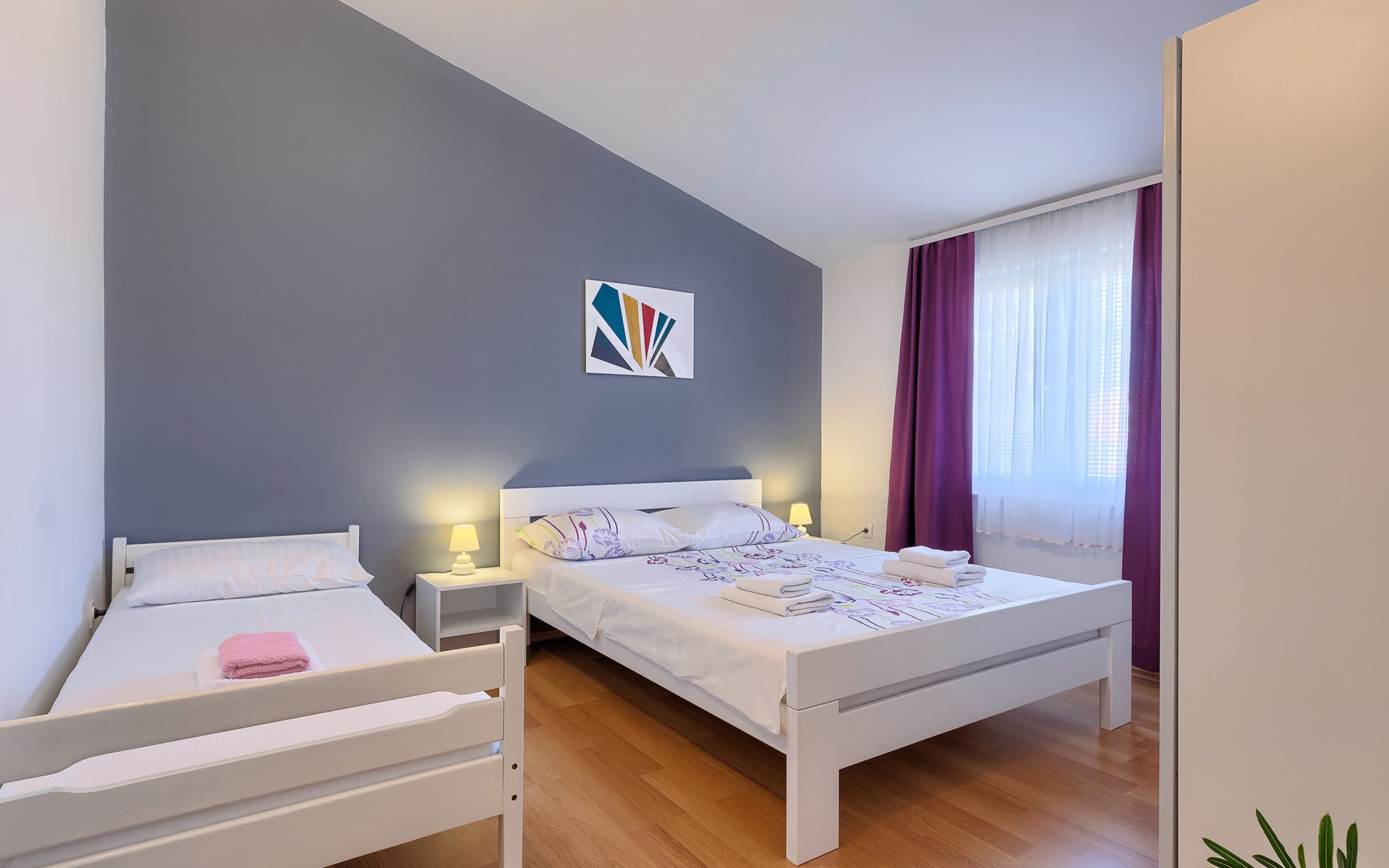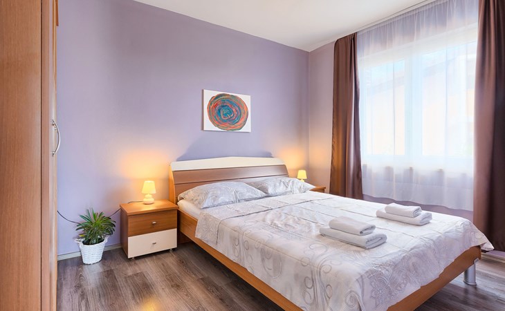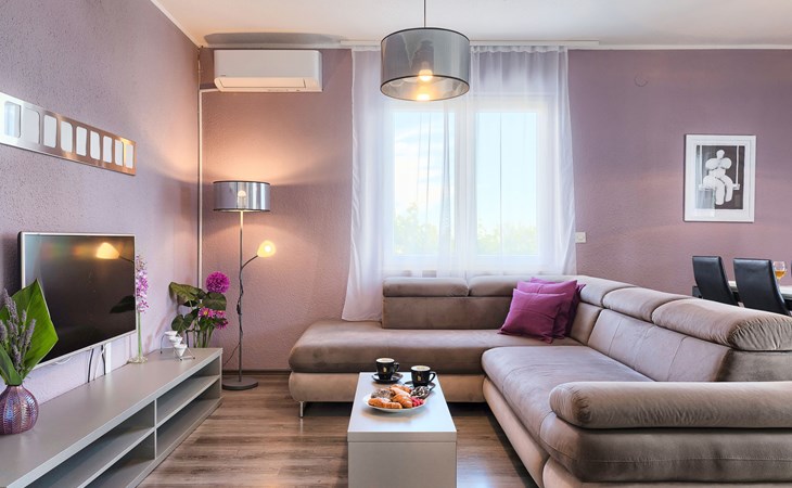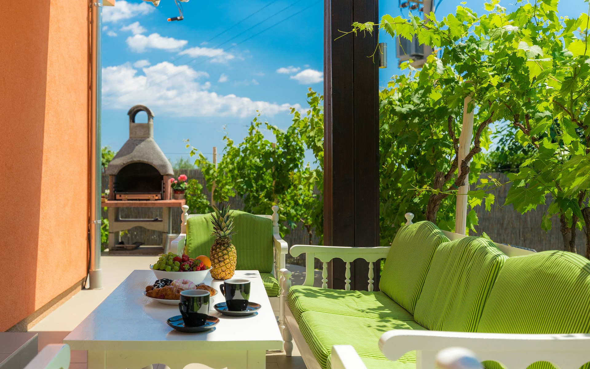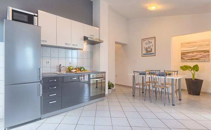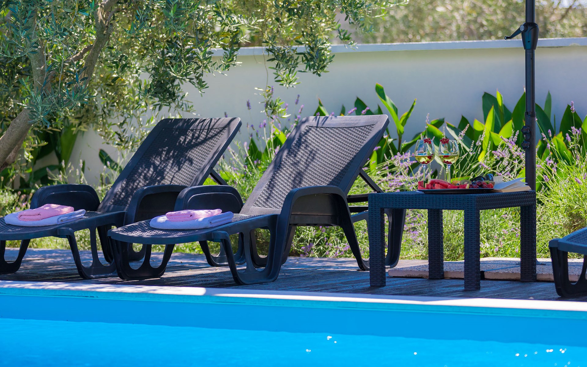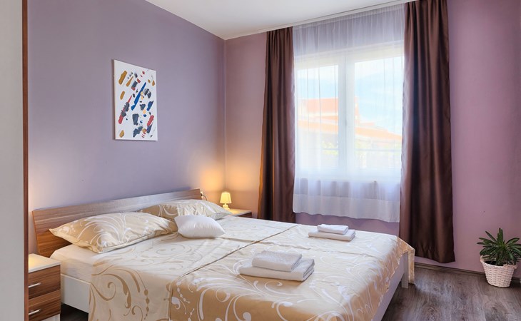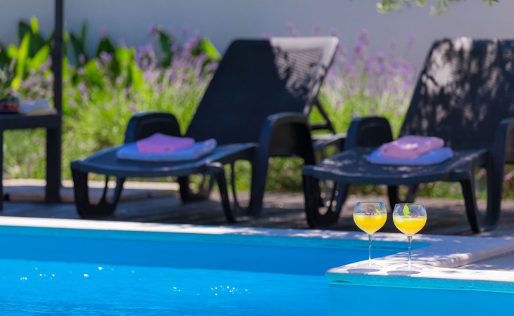 Single-family house "Neja", 2 storeys. In the hamlet Loborika 6 km from the centre of Marčana, 6 km from the centre of Pula, in a quiet, sunny position, 8 km from the sea. Private: property 500 m2 (fenced), garden with wildlife garden and trees, swimming pool angular (8 x 4 m, depth 140 cm, seasonal availability: 29.Apr. - 07.Oct.) with internal staircase. Shower/WC in the pool area, outdoor shower, terrace (30 m2), garden furniture, barbecue (swing). In the house: internet access, washing machine. Parking at the house. Shop 1.5 km, supermarket 4 km, restaurant 2 km, café 1.5 km, bus stop 1.4 km, sandy beach 17 km pebble beach 10 km. Tennis 15 km, riding stable 5 km, walking paths from the house 100 m, cycle lane 150 m. Nearby attractions: Amphitheater 8 km, National park Brijuni 13 km, Nature park Rt. Kamenjak 18 km. Groups of teenagers on request only. By groups of young people double deposit is requested on arrival. The house consists of 3 apartments rented as one unit: one apartment on the ground floor and two apartments on the first floor.