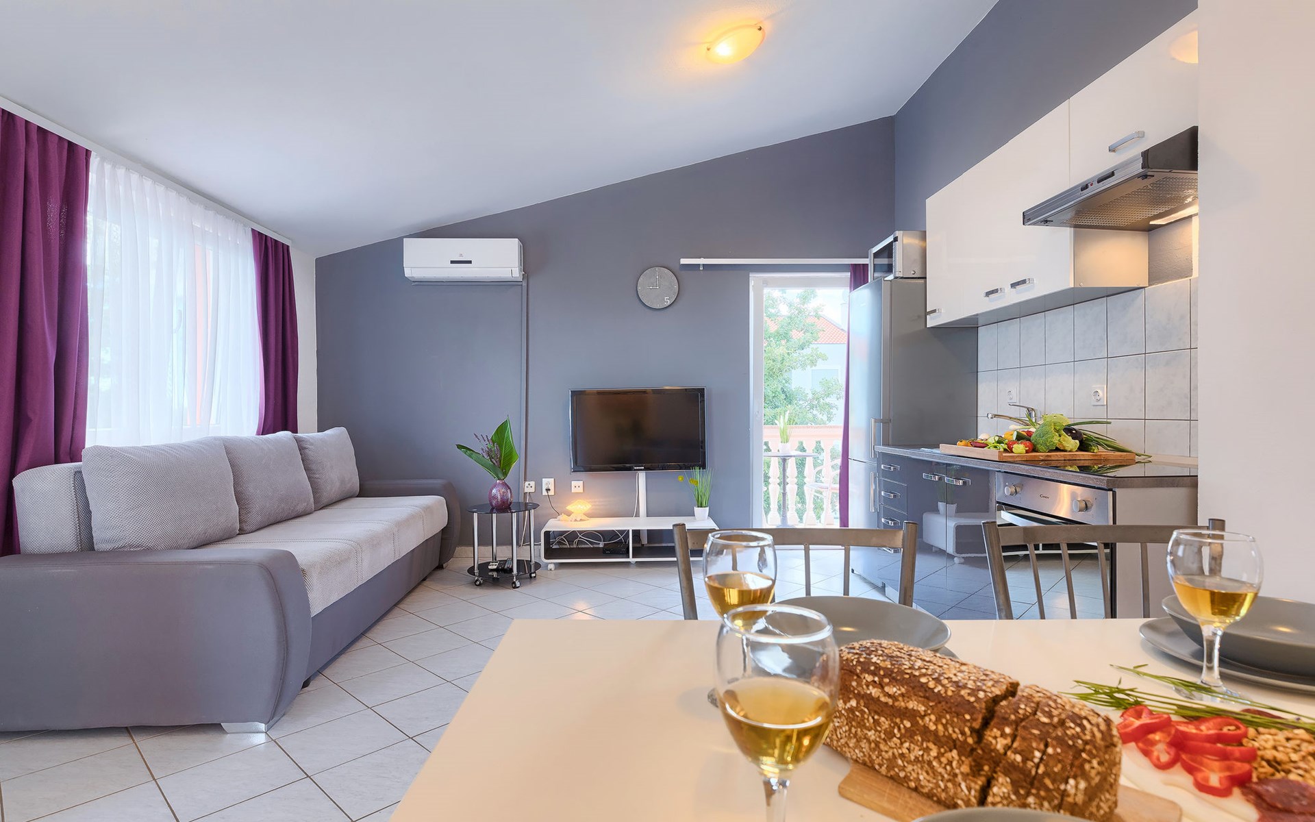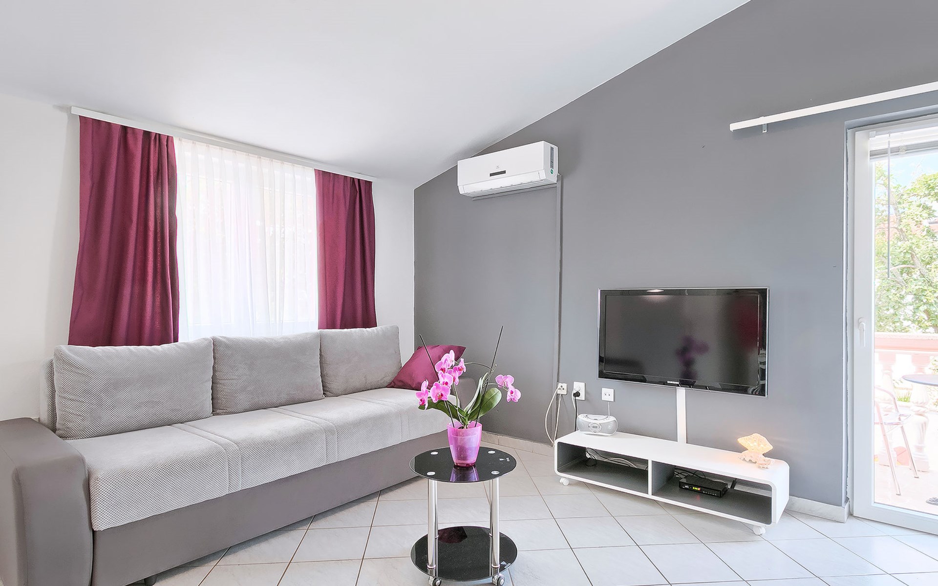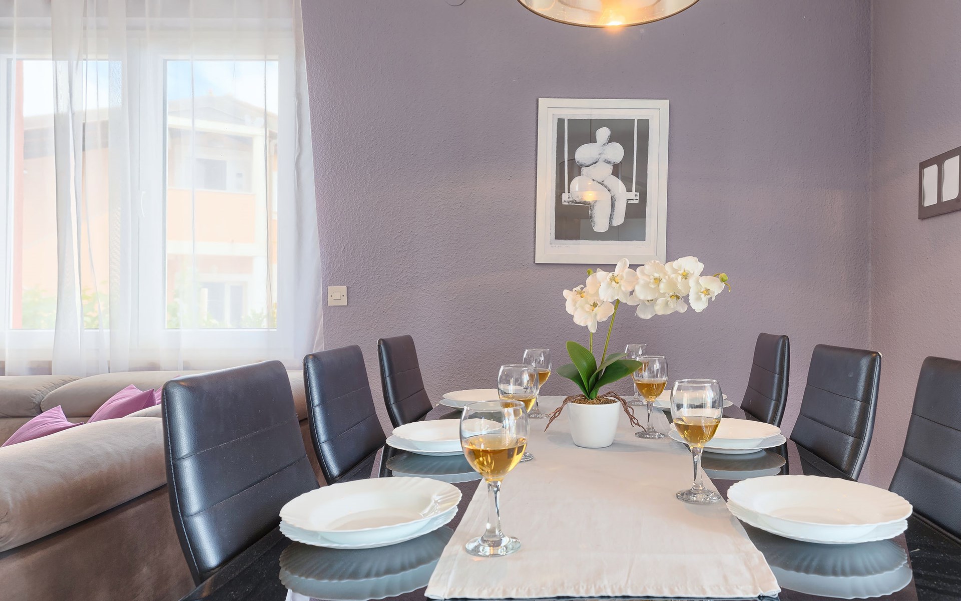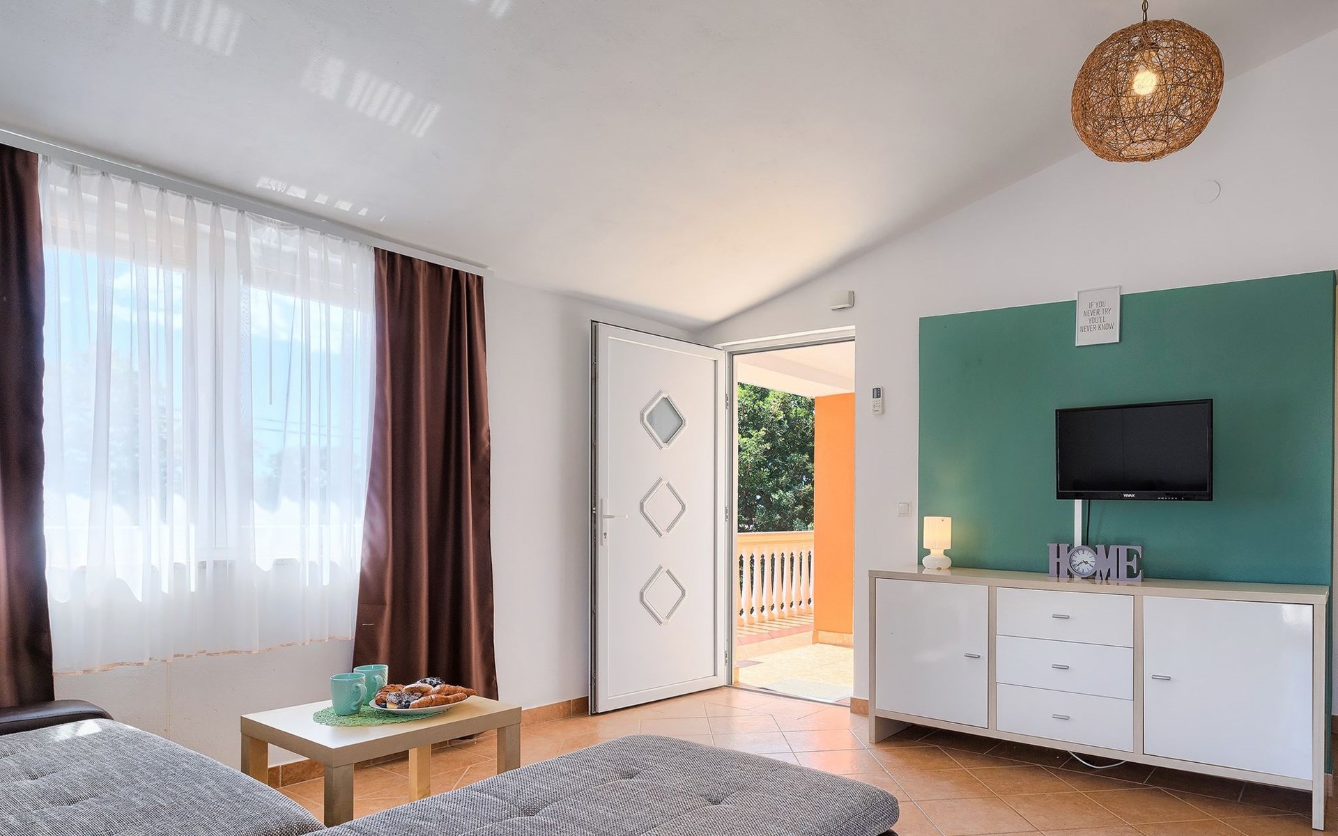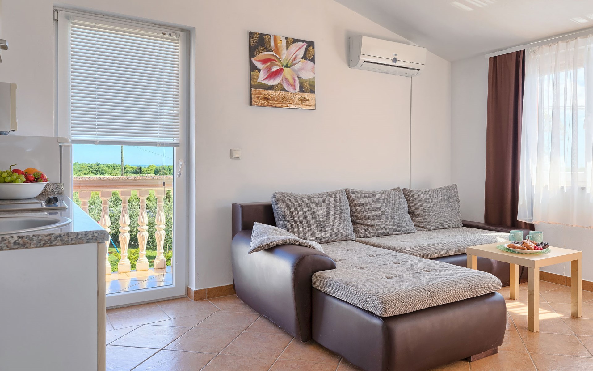 Single-family house "Neja", 2 storeys. In the hamlet Loborika 6 km from the centre of Marčana, 6 km from the centre of Pula, in a quiet, sunny position, 8 km from the sea. Private: property 500 m2 (fenced), garden with wildlife garden and trees, swimming pool angular (8 x 4 m, depth 140 cm, seasonal availability: 29.Apr. - 07.Oct.) with internal staircase. Shower/WC in the pool area, outdoor shower, terrace (30 m2), garden furniture, barbecue (swing). In the house: internet access, washing machine. Parking at the house. Shop 1.5 km, supermarket 4 km, restaurant 2 km, café 1.5 km, bus stop 1.4 km, sandy beach 17 km pebble beach 10 km. Tennis 15 km, riding stable 5 km, walking paths from the house 100 m, cycle lane 150 m. Nearby attractions: Amphitheater 8 km, National park Brijuni 13 km, Nature park Rt. Kamenjak 18 km. Groups of teenagers on request only. By groups of young people double deposit is requested on arrival. The house consists of 3 apartments rented as one unit: one apartment on the ground floor and two apartments on the first floor.