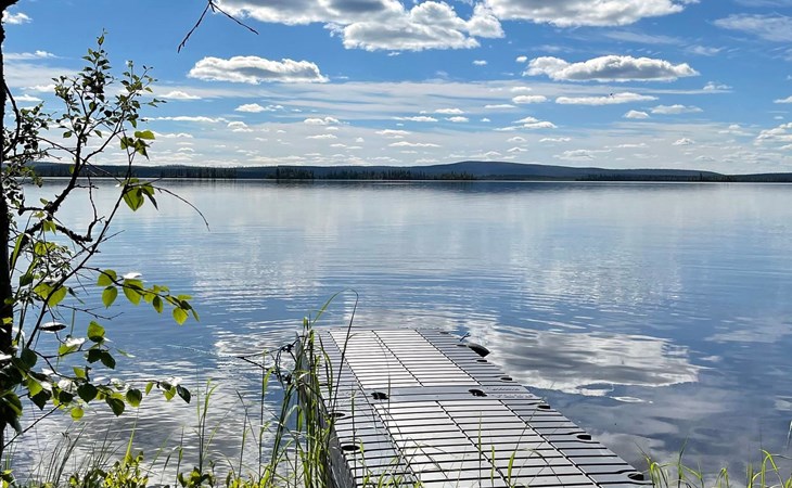 200 km to the north from Rovaniemi, 50 km to the northwest from Kittilä municipality center, lake Jerisjärvi 35 m (length 12 km, width 5 km) shallow beach, sand bottom, a pier and rowing boat.