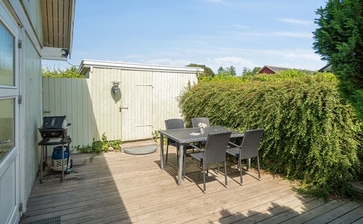 Single-family house, built in 1978. 400 m from the sea. For shared use: swimming pool (6 x 13 m, 78 m2, depth 180 - 180 cm, seasonal availability: 15.Jun. - 15.Sep.). Private: natural state property 1'200 m2. Barbecue, children's playground (swing), parking at the house. Grocery 6 km. Golf course 10 km. The owner does not accept any youth groups.