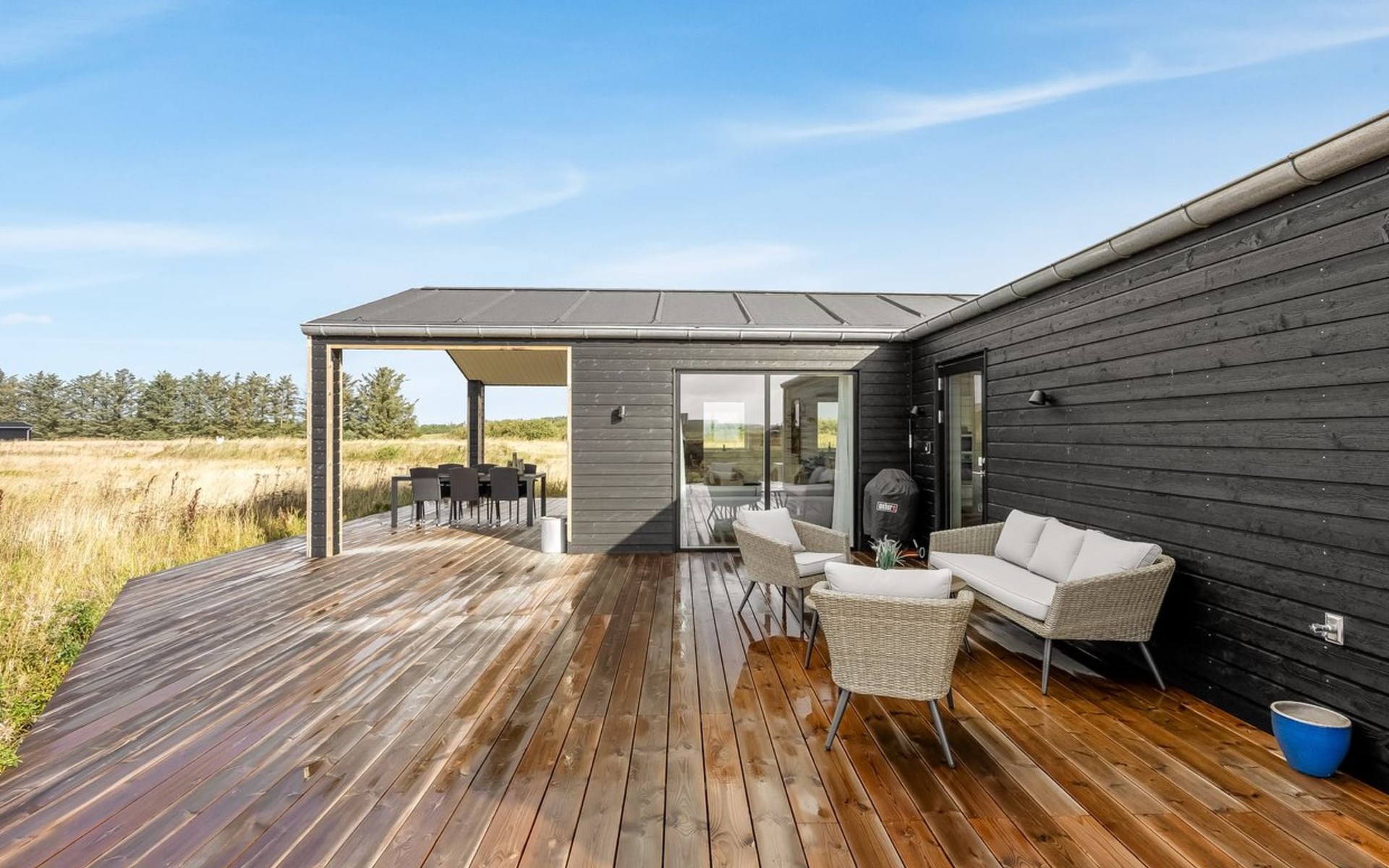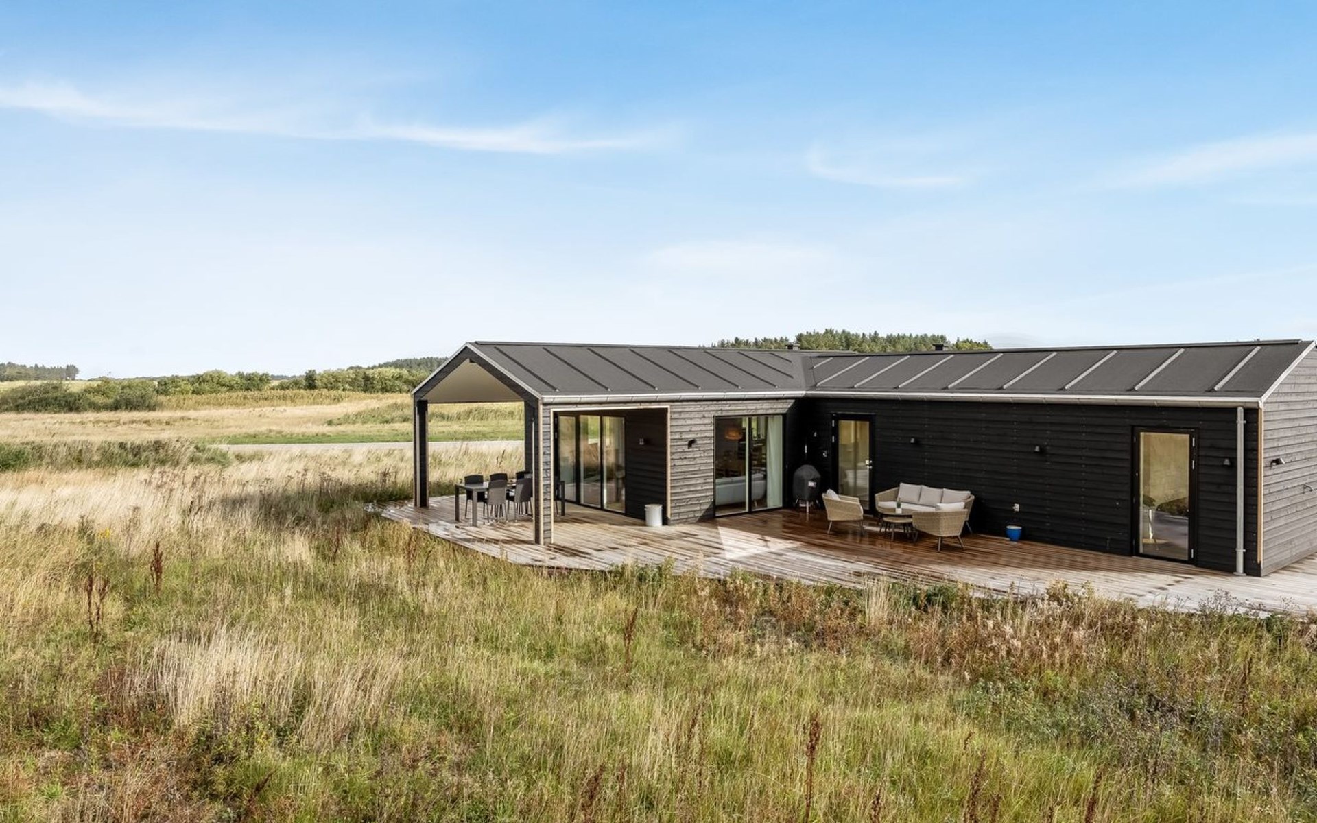 Single-family house, built in 2024. 1 km from the sea. Private: natural state property 2'317 m2. Barbecue. In the house: washing machine. Parking at the house. Grocery 500 m. The owner does not accept any youth groups.