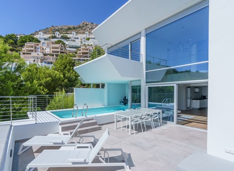 Very large, cosy villa "La Esquina", 2 storeys. In the district of La Lluca, in the resort 7 km from the centre of Javea - El Arenal, in a quiet, sunny position, 7 km from the sea, 7 km from the beach. Private: terraced garden with lawn and trees, swimming pool angular (10 x 5 m, depth 80 - 210 cm, seasonal availability: 01.Jan. - 31.Dec.) with internal staircase. Outdoor shower, garden furniture, barbecue, parking (for 2 cars). Supermarket 3.5 km, restaurant 1 km, bus stop "Estacion de autobuses Javea" 6 km, sandy beach "El Arenal" 7 km. Sports harbour 7 km, marina 7 km, golf course (9 hole) 1 km, surf school 7 km. The owner does not accept any youth groups.