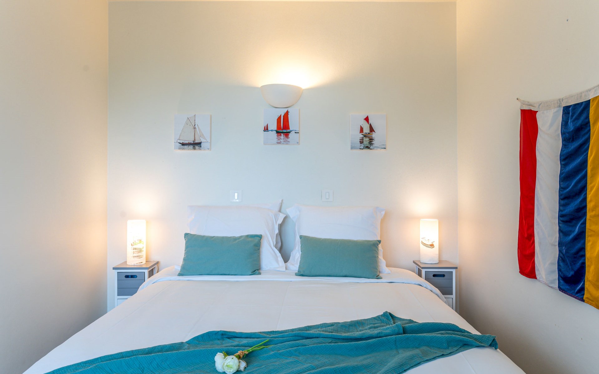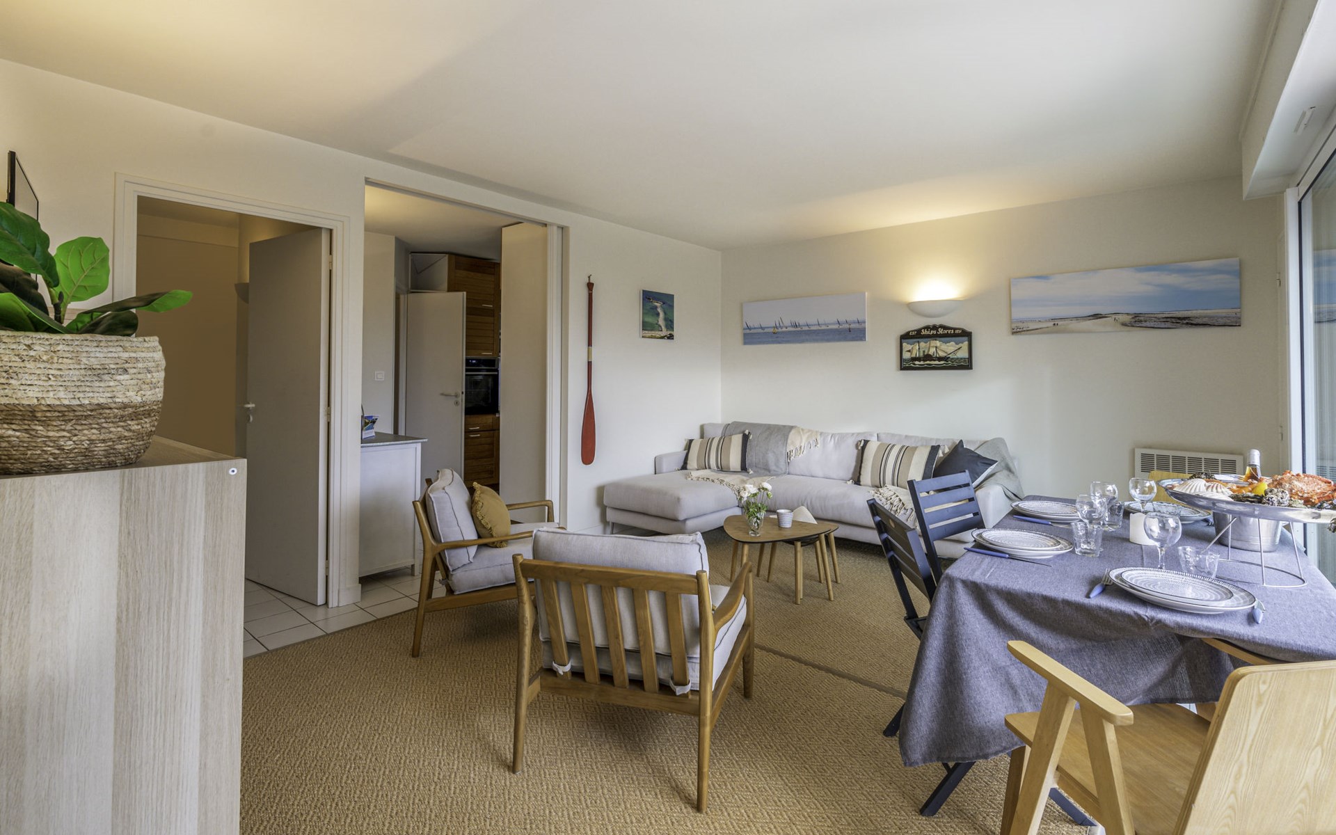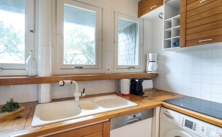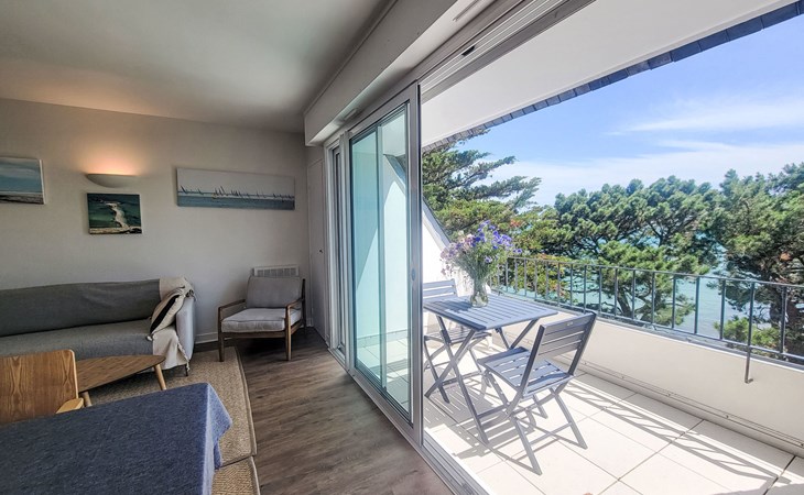 Residence "Baie de Beaumer". In the residential district, 50 m from the sea, from the beach, direct access to the beach. In the house: lift. Parking. Shop, supermarket, restaurant, café 850 m, sandy beach "Beaumer" 20 m. Sports harbour 3.5 km, golf course (18 hole) 15 km, sailing school 1 km. Nearby attractions: Alignements dolmens et menhirs, Presqu'île de Quiberon 15 km, Vannes 30 km, Lorient 50 km.