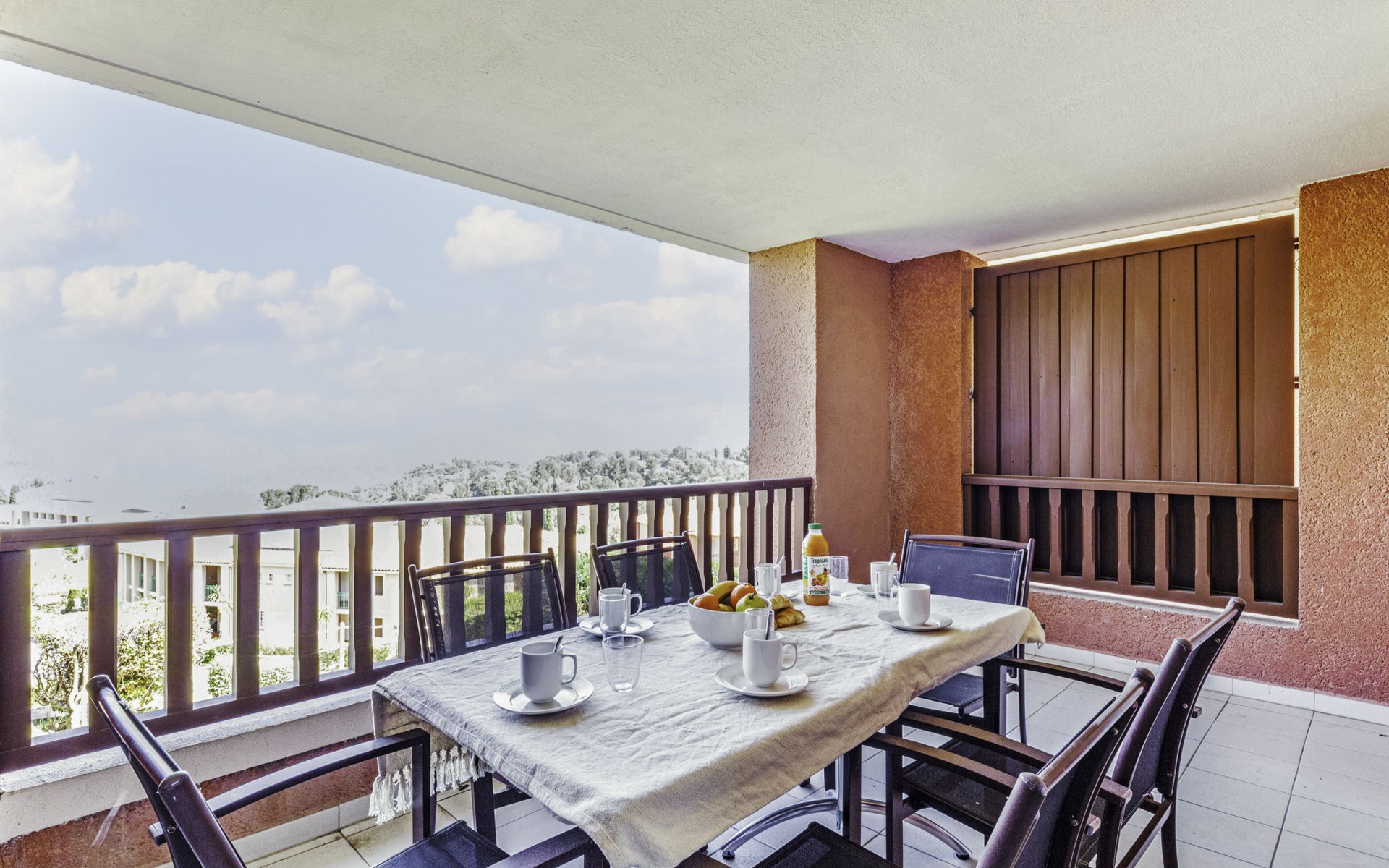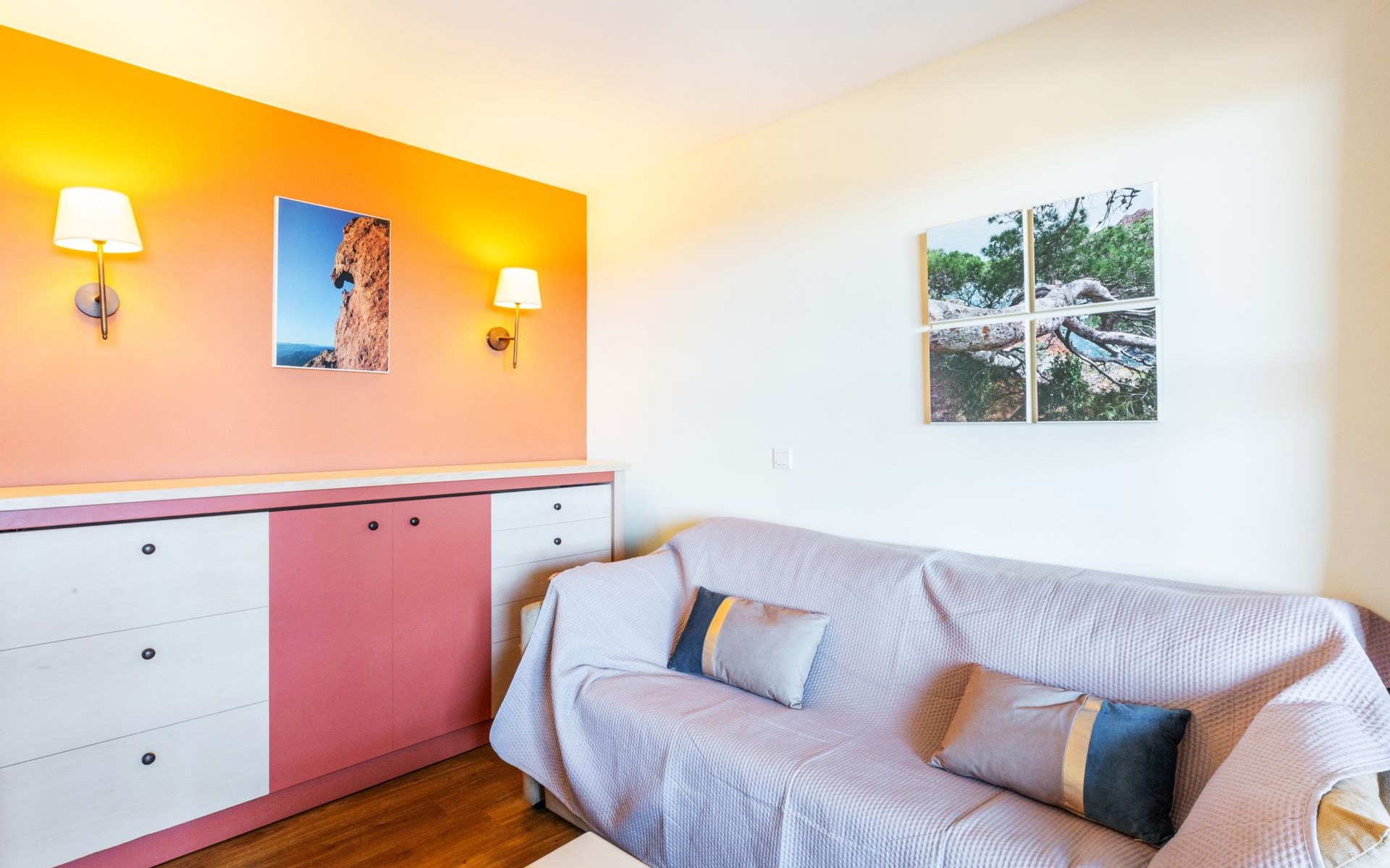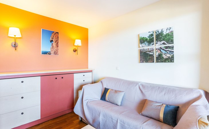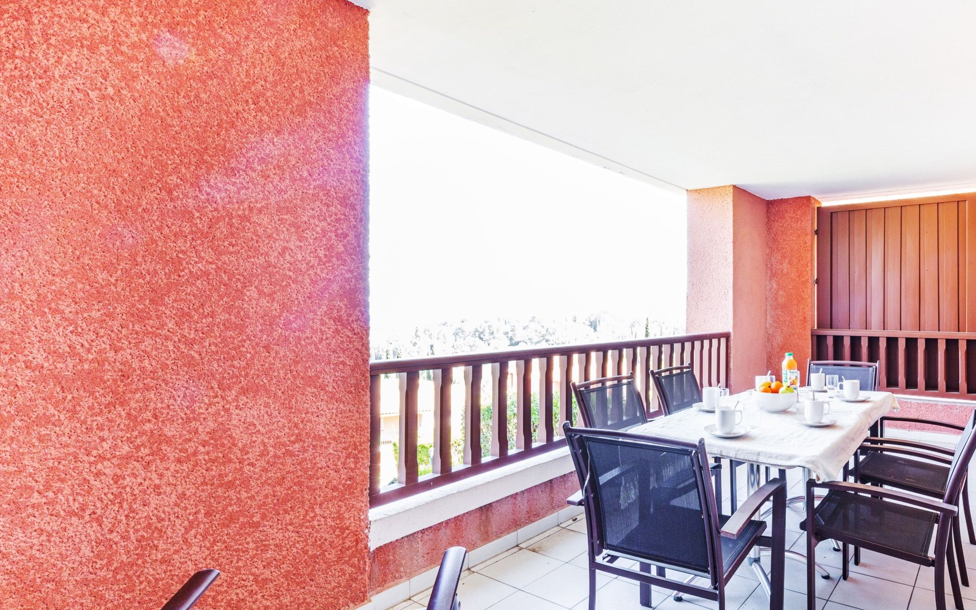 Large resort "Village Cap Estérel - L'Esquinade", built in 1990. On the outskirts, 2 km from the centre of Agay, on a slope, in the residential district, 900 m from the sea, 900 m from the beach, road to cross, on the golf course, in a pedestrian area. For shared use: park 210 ha, 5 swimming pools (seasonal availability: 06.Apr. - 03.Nov.). Children's pool, boccia, children's playground (slide, swing). In the complex: spa area (extra), shopping facilities, laundry (extra). E-charging station. Shop, grocery 500 m, supermarket 6 km, restaurant, bakery, café, bicycle rental 500 m, bus stop "Ligne 21" 300 m, railway station "Saint-Raphaël-Valescure - Agay" 9 km, sandy beach "Le Pourrousset" 800 m. Marina 1 km, golf course (9 hole) 300 m, tennis 500 m. Nearby attractions: Anthéor 8 km, Saint-Raphaël 9 km, Fréjus 13 km, Cannes 33 km, Saint-Tropez 50 km, Nice 76 km. Well-known lakes can easily be reached: Lac Saint-Cassien. Hiking paths: Massif de l'Estérel. Please note: car-free holiday complex, no lift. Entertainment in the season. Suitable for families, childminding in the season (extra). Guarded residence. The keys‘ handover takes place by the agency Interhome in Cap Estérel. The apartment is located in a zone with limited traffic. Additional accommodations can be booked. Access to the apartments is via steps, even on the ground floor.