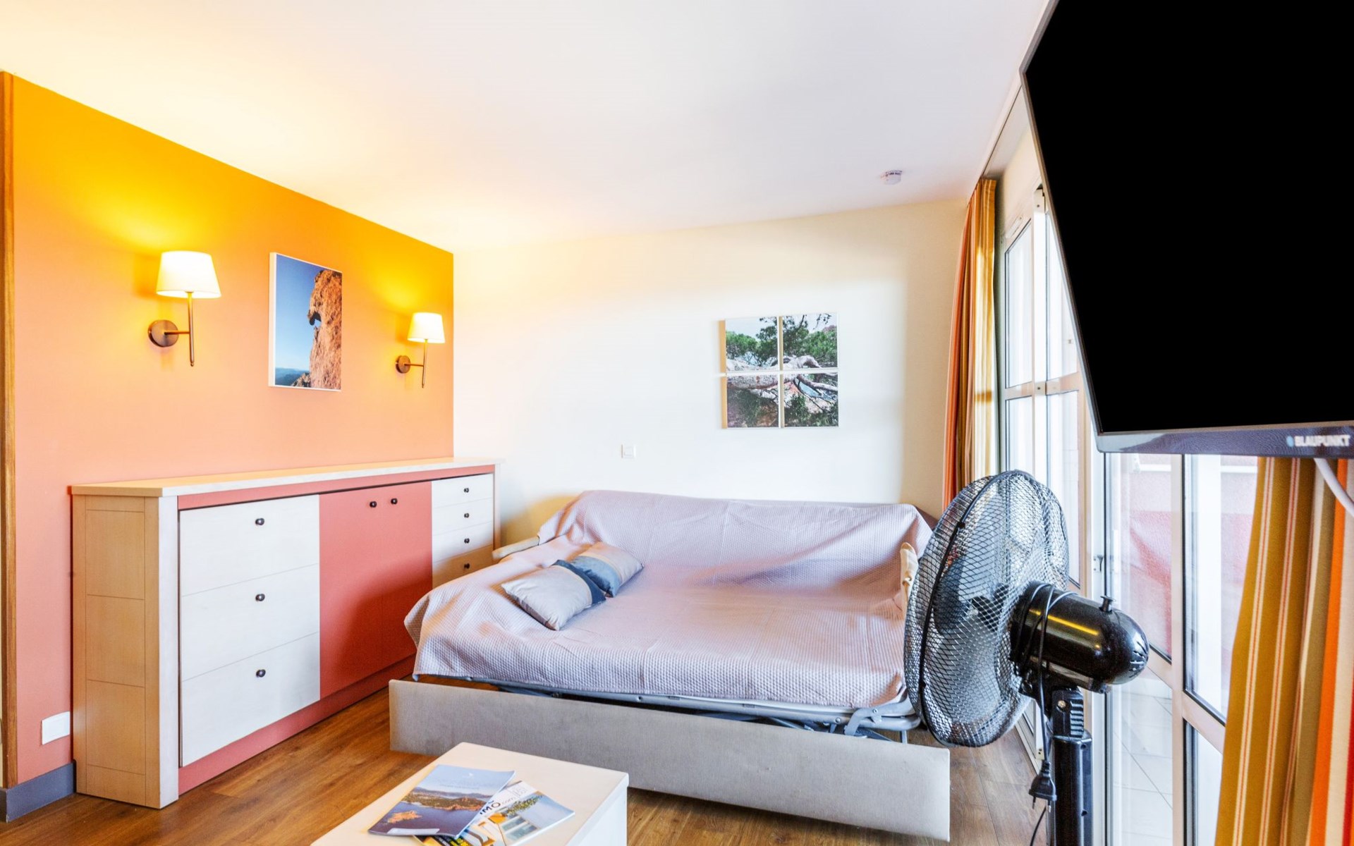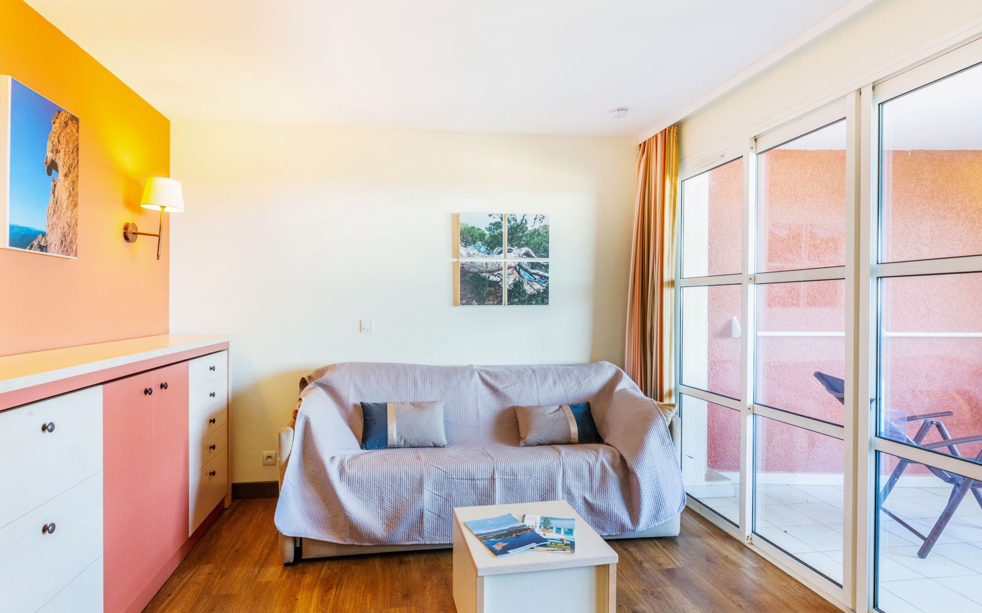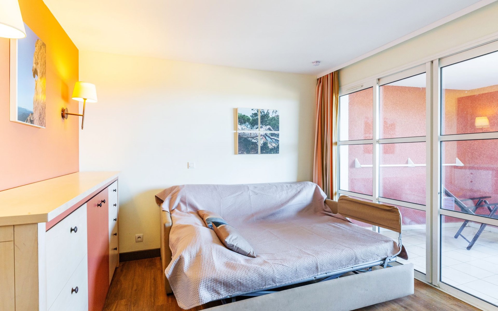 Large resort "Village Cap Estérel - L'Esquinade", built in 1990. On the outskirts, 2 km from the centre of Agay, on a slope, in the residential district, 900 m from the sea, 900 m from the beach, road to cross, on the golf course, in a pedestrian area. For shared use: park 210 ha, 5 swimming pools (seasonal availability: 06.Apr. - 03.Nov.). Children's pool, boccia, children's playground (slide, swing). In the complex: spa area (extra), shopping facilities, laundry (extra). E-charging station. Shop, grocery 500 m, supermarket 6 km, restaurant, bakery, café, bicycle rental 500 m, bus stop "Ligne 21" 300 m, railway station "Saint-Raphaël-Valescure - Agay" 9 km, sandy beach "Le Pourrousset" 800 m. Marina 1 km, golf course (9 hole) 300 m, tennis 500 m. Nearby attractions: Anthéor 8 km, Saint-Raphaël 9 km, Fréjus 13 km, Cannes 33 km, Saint-Tropez 50 km, Nice 76 km. Well-known lakes can easily be reached: Lac Saint-Cassien. Hiking paths: Massif de l'Estérel. Please note: car-free holiday complex, no lift. Entertainment in the season. Suitable for families, childminding in the season (extra). Guarded residence. The keys‘ handover takes place by the agency Interhome in Cap Estérel. The apartment is located in a zone with limited traffic. Additional accommodations can be booked. Access to the apartments is via steps, even on the ground floor.