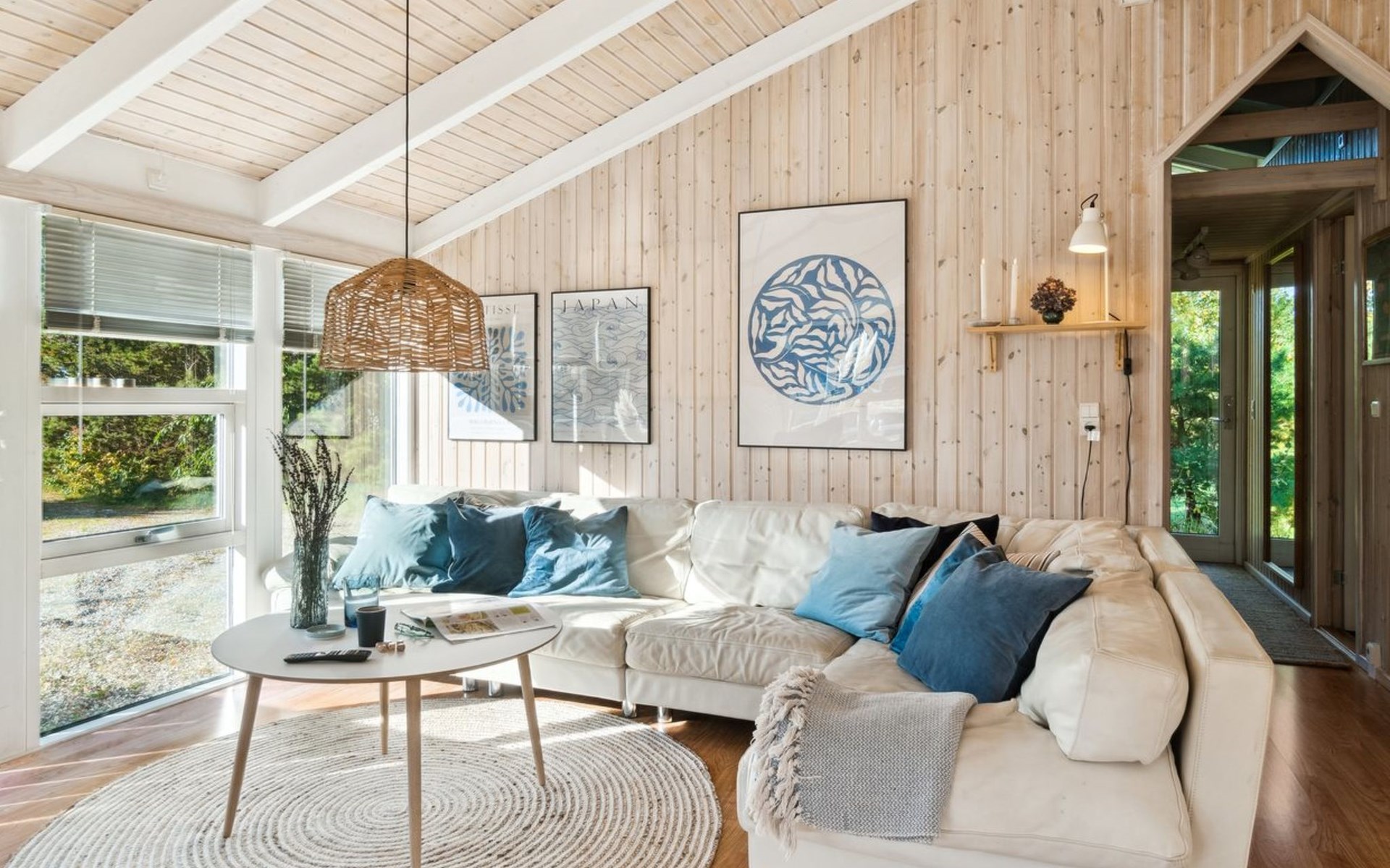 Single-family house, built in 2001. 200 m from the sea. Private: natural state property 1'300 m2. Terrace (40 m2), barbecue, children's playground (swing). In the house: sauna, washing machine, tumble dryer. Parking at the house. Grocery 1.3 km. Golf course 9.2 km. The owner does not accept any youth groups.