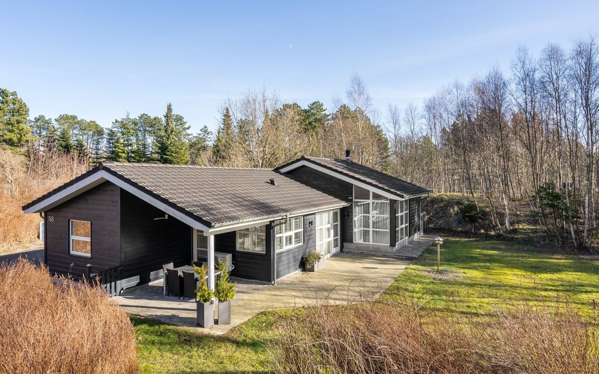 Single-family house, built in 2006. 1.6 km from the sea. For shared use: garden. Private: property 1'100 m2, well-kept garden (fenced). Terrace (30 m2), barbecue, children's playground (swing). In the house: sauna, washing machine, tumble dryer. Parking at the house. Grocery 2 km. The owner does not accept any youth groups.