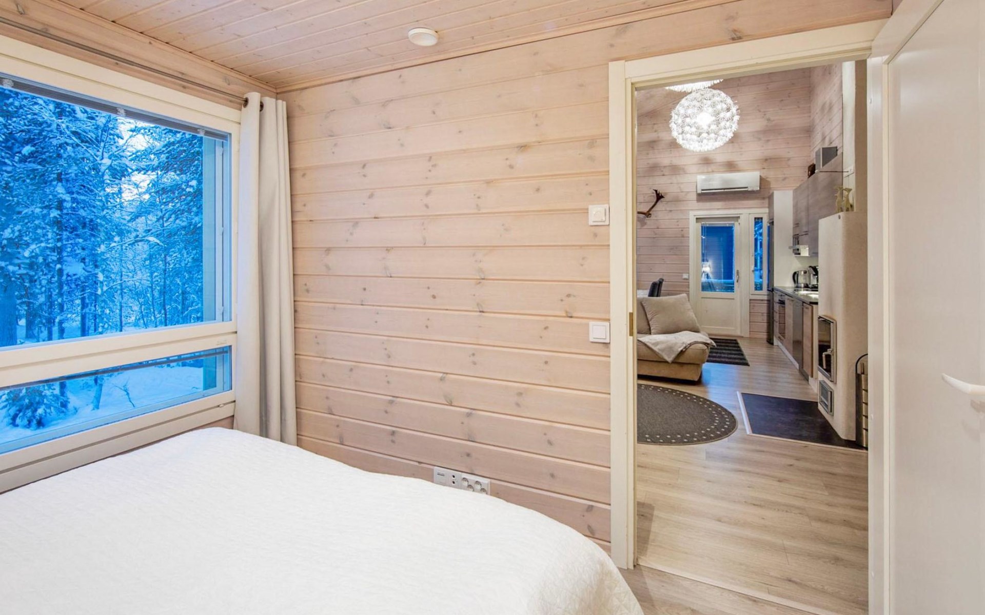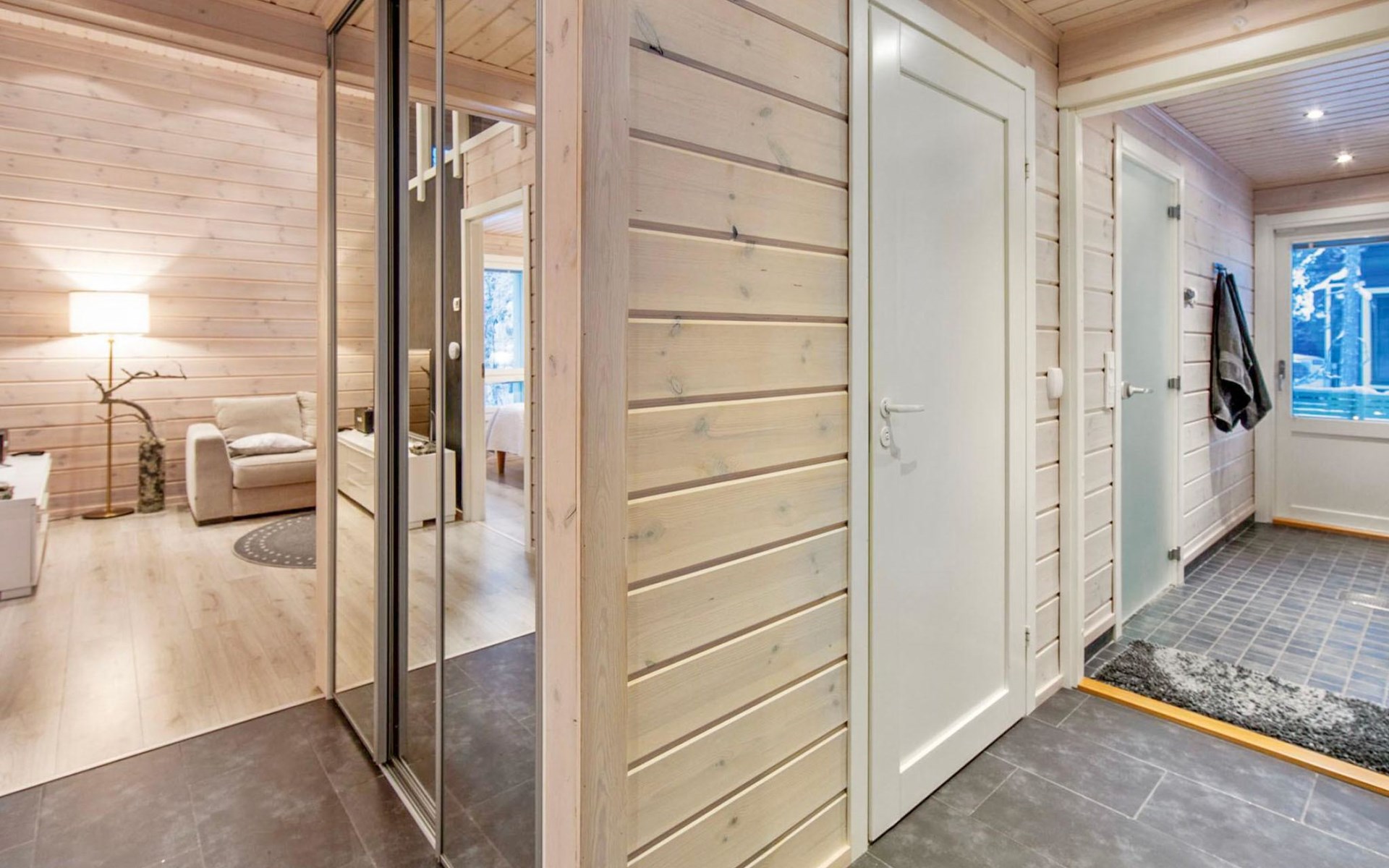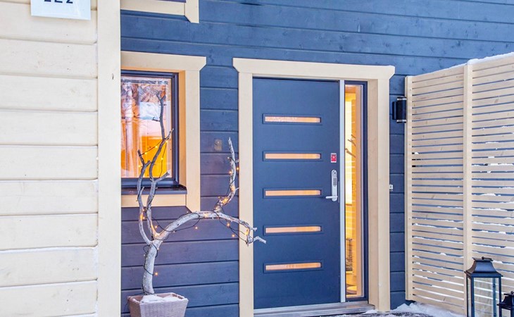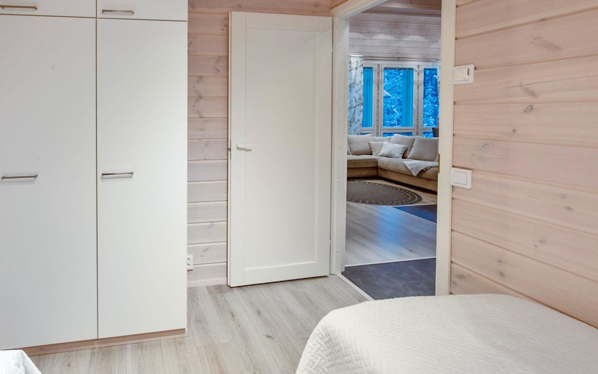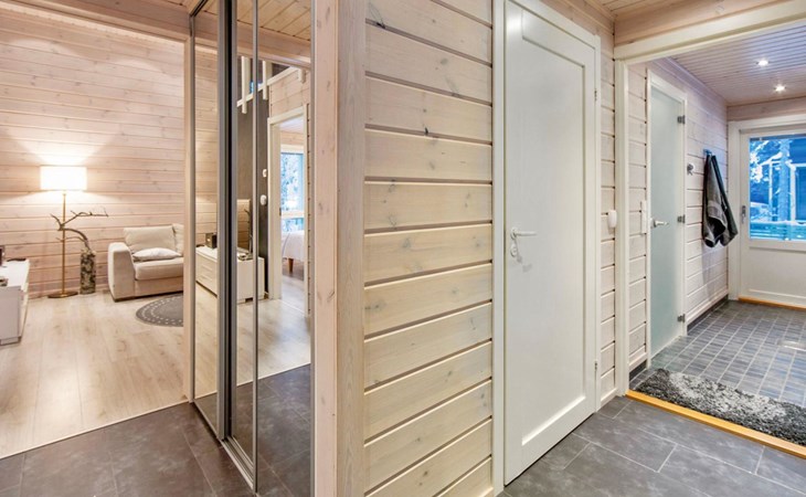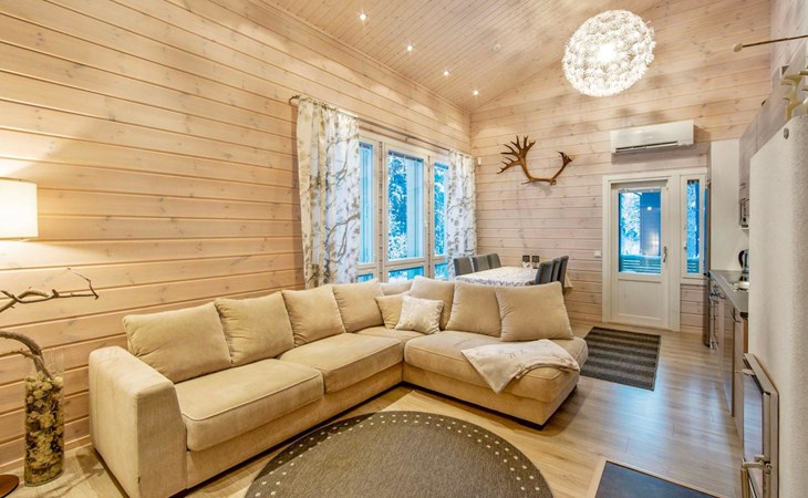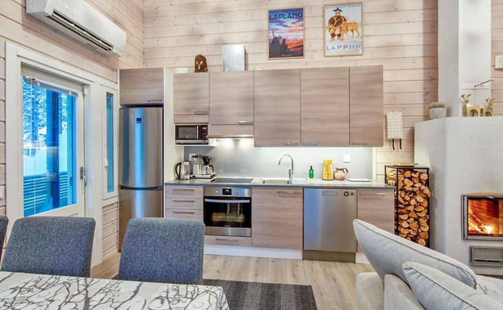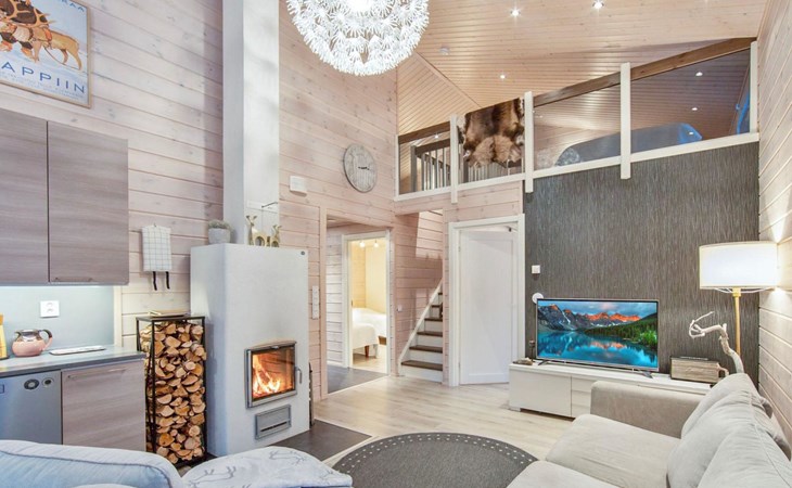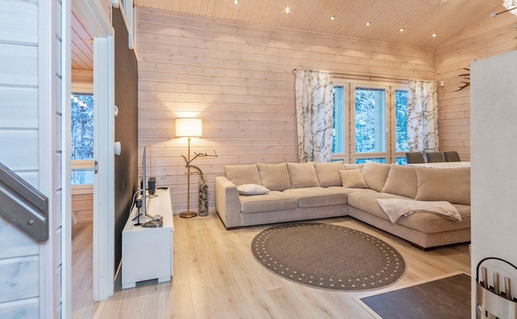 170 km to the north from Rovaniemi, in the Levi tourist center, in Levijärvi area. Apartment made from log panel in a semi-detached house, built in 2016.
