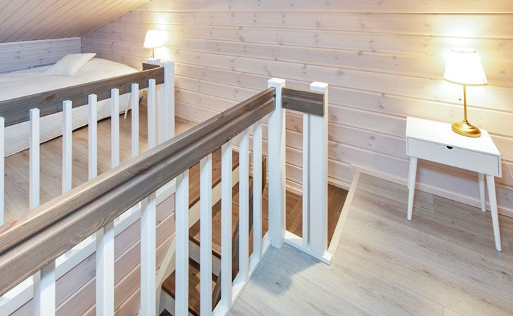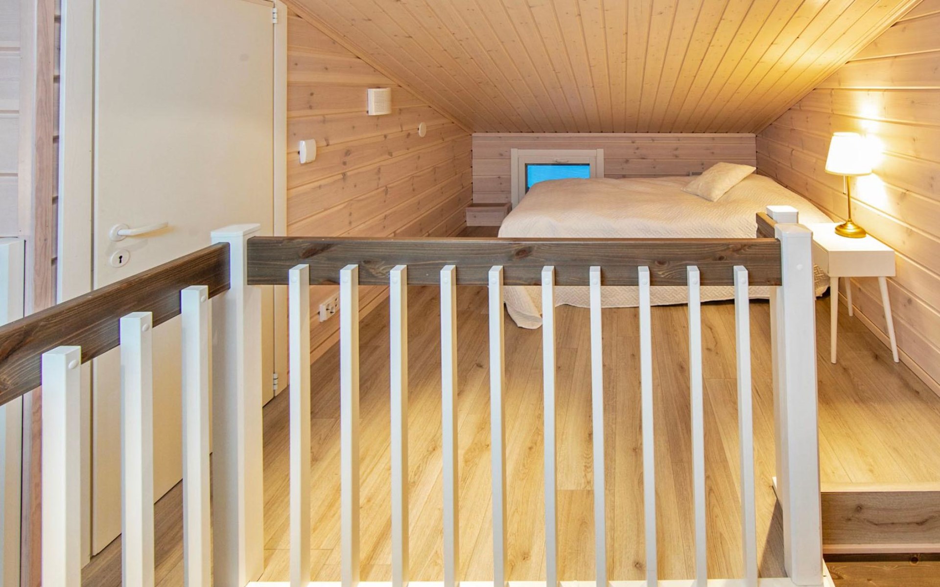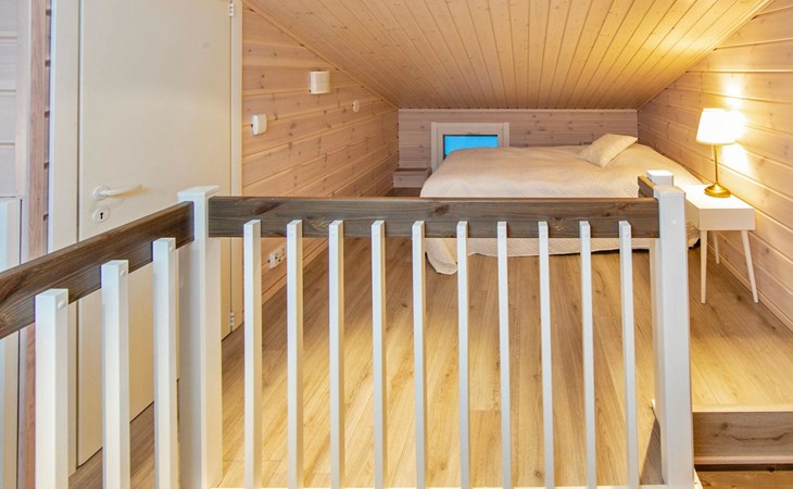 Living room / kitchen, two bedrooms, each with two single beds (placed side by side), two compartments in the loft, each with 1 bed (bed widths are 120 cm).