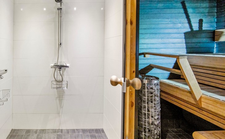 Sauna, washroom, utility room, separate WC and covered terrace.