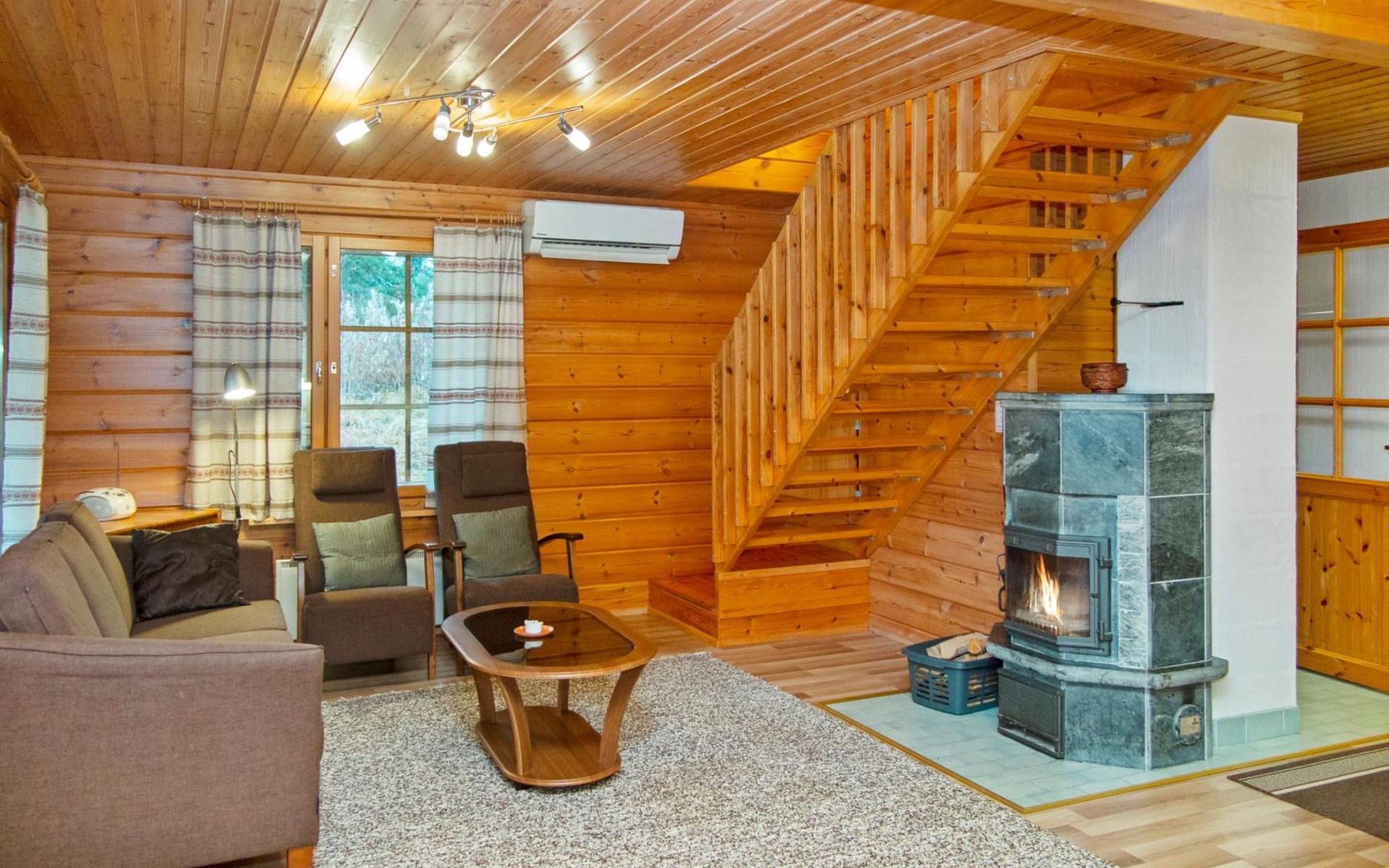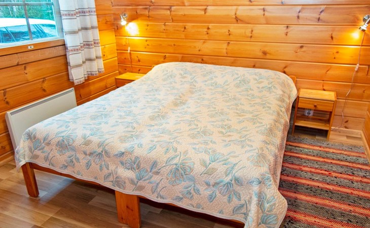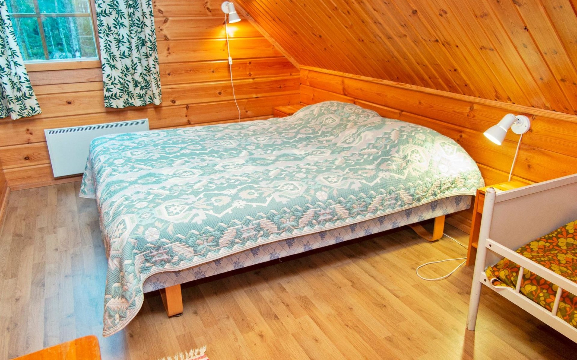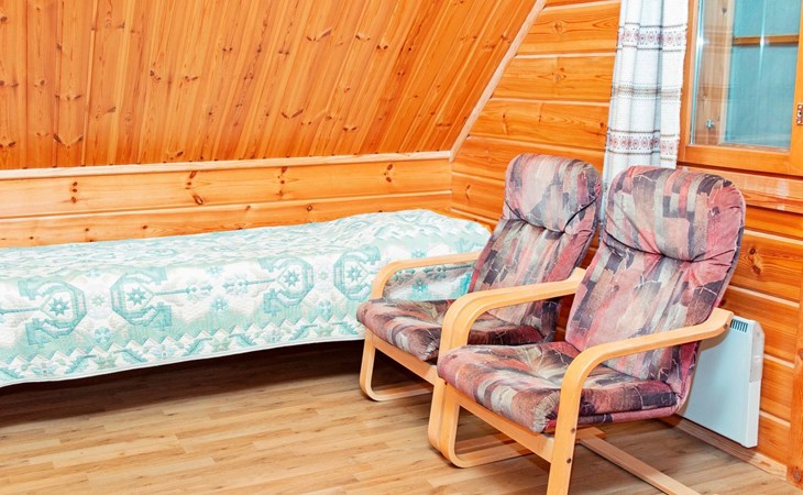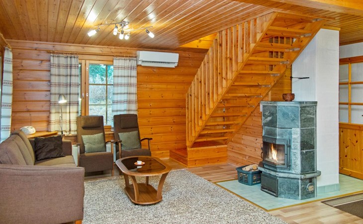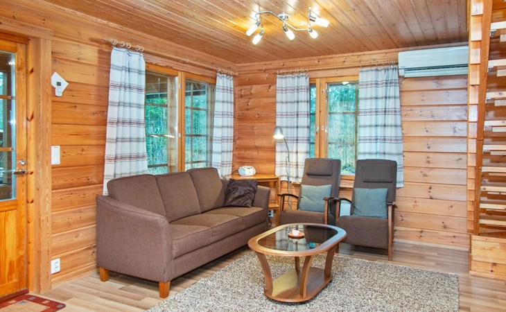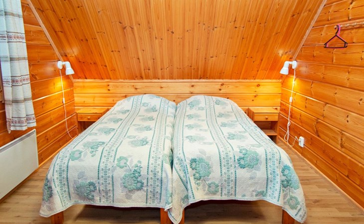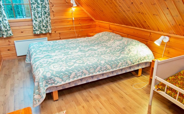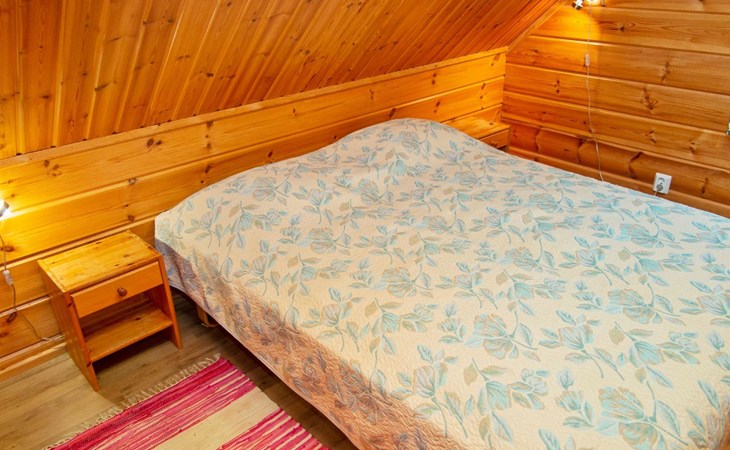 Log cabin 1999, living room/kitchen (downstairs floors and living room /kitchen are completely renovated 2014), 1 bedroom with 2 beds.