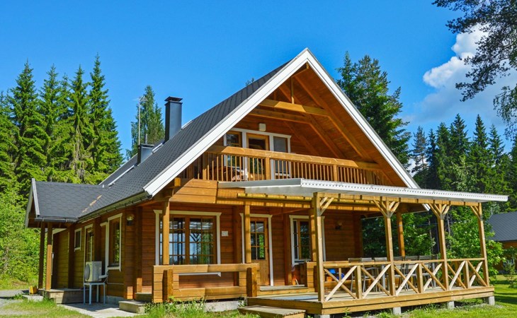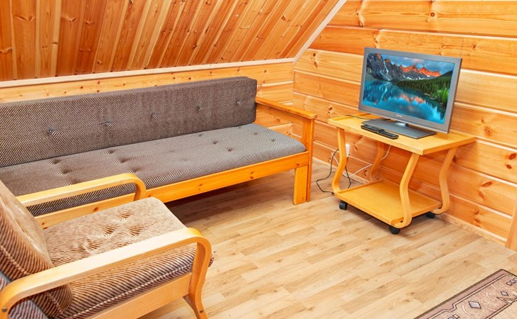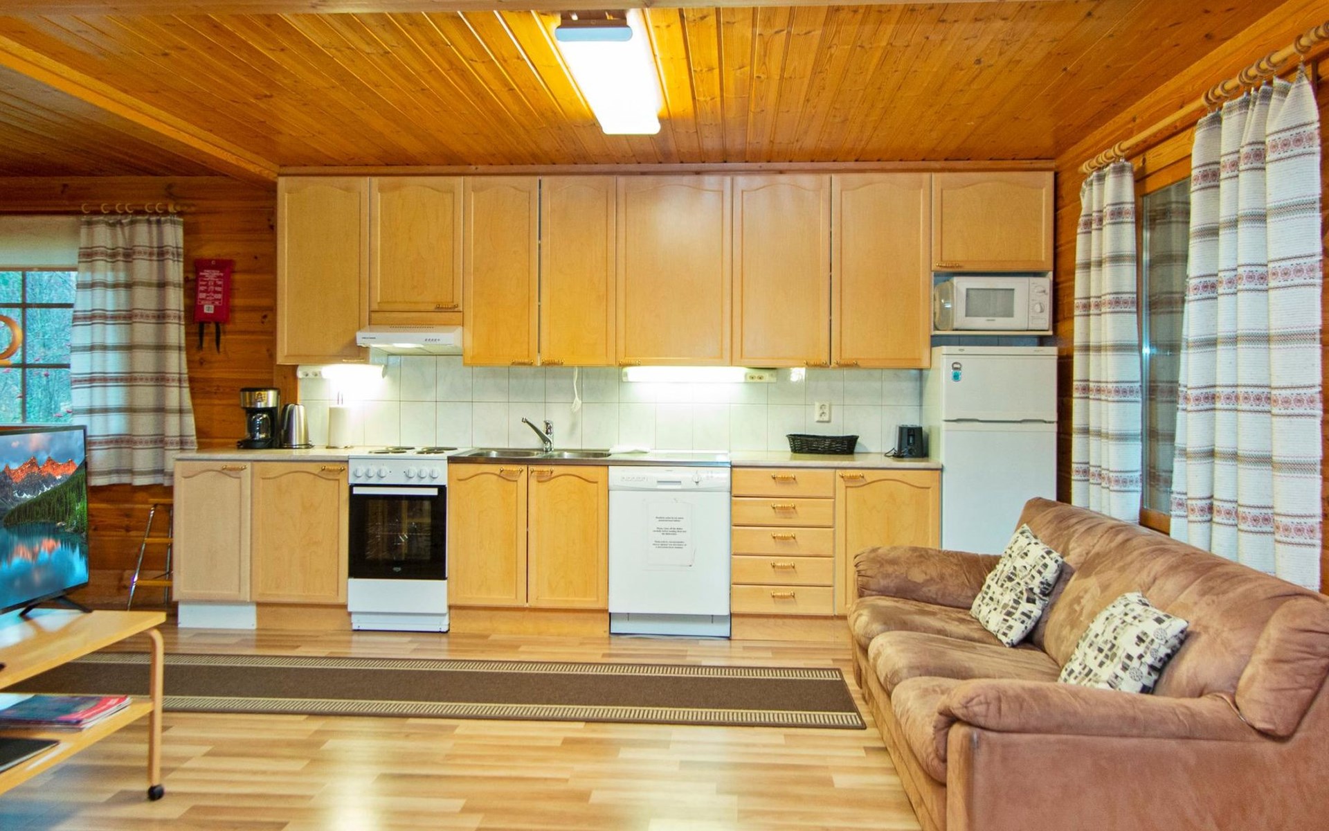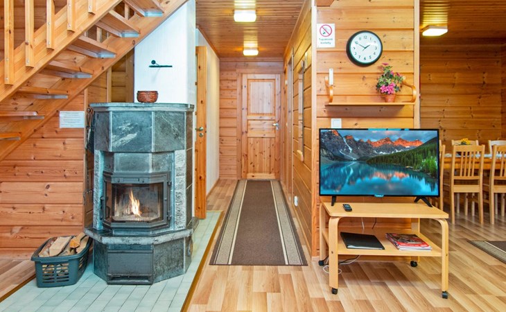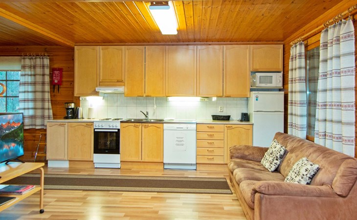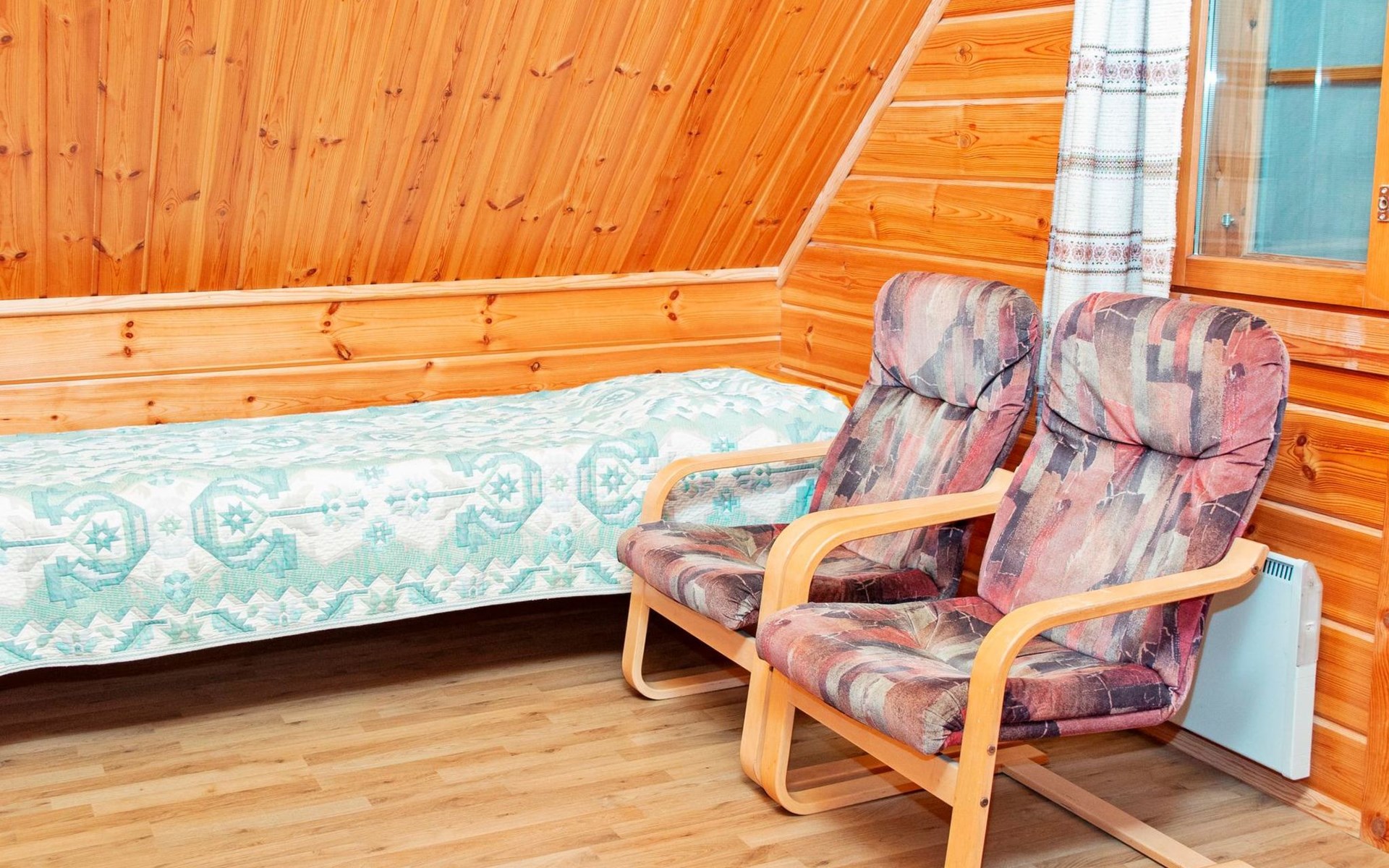 Log cabin 1999, living room/kitchen (downstairs floors and living room /kitchen are completely renovated 2014), 1 bedroom with 2 beds.