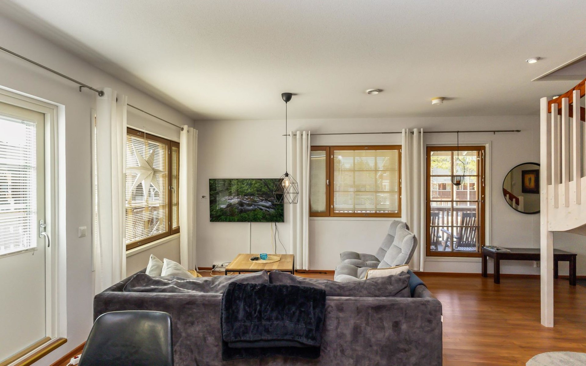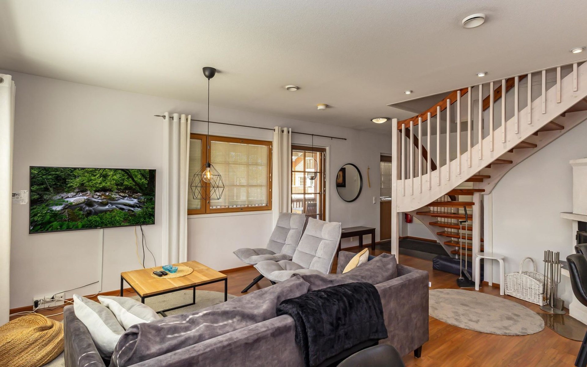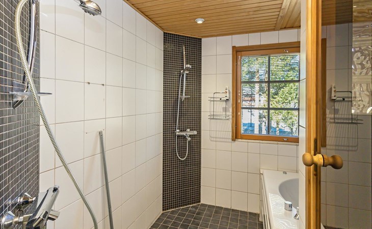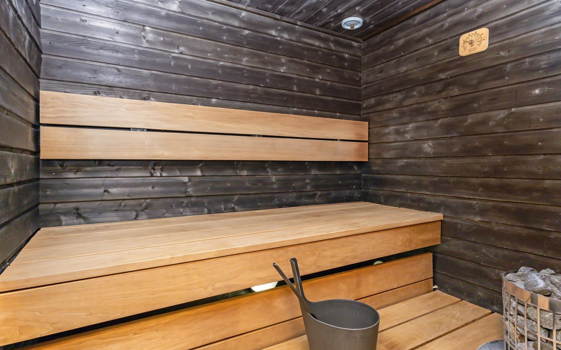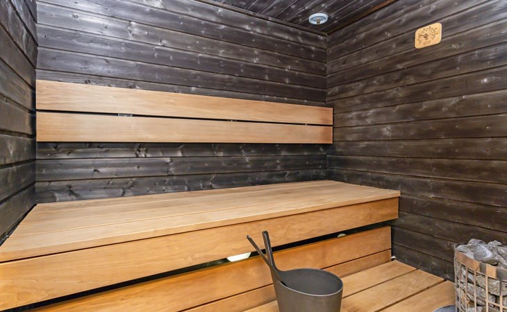 For moments of relaxation, the house includes a private sauna and a washroom with a hydro massage bath. There’s also a separate laundry room with a washing machine and drying cabinet.