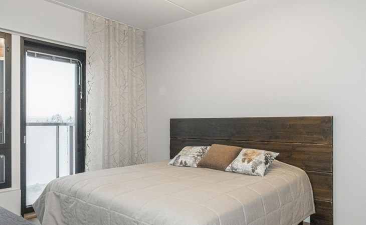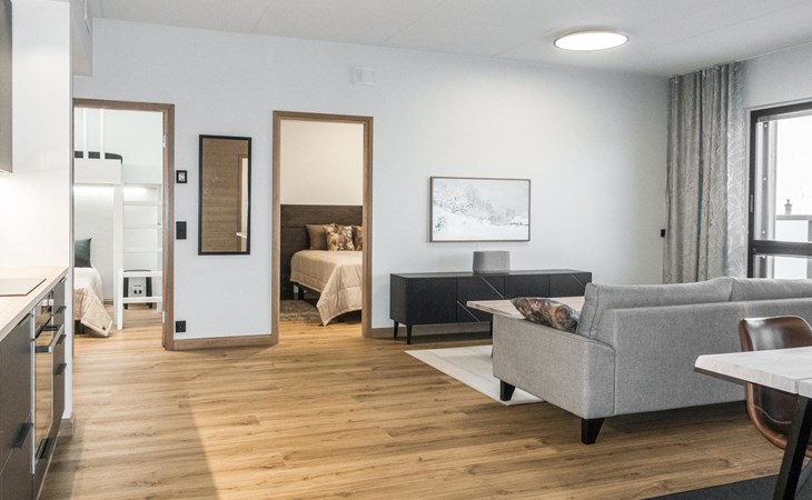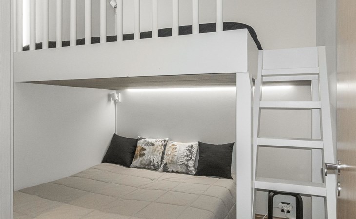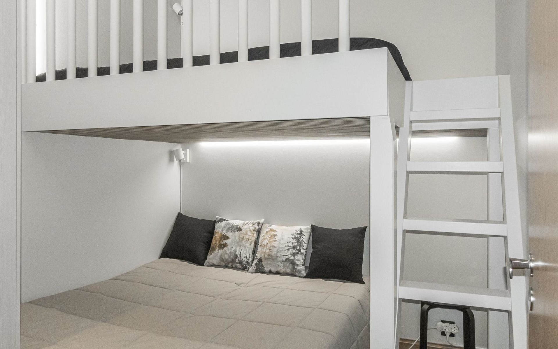 The apartment features a spacious, open kitchen and living room. Three bedrooms offer flexibility and comfort for groups of various sizes: each bedroom has separable double beds, and one bedroom also includes a loft bed for two, while another has an extendable sofa bed. In addition to a balcony, the main bedroom offers its own WC and shower.