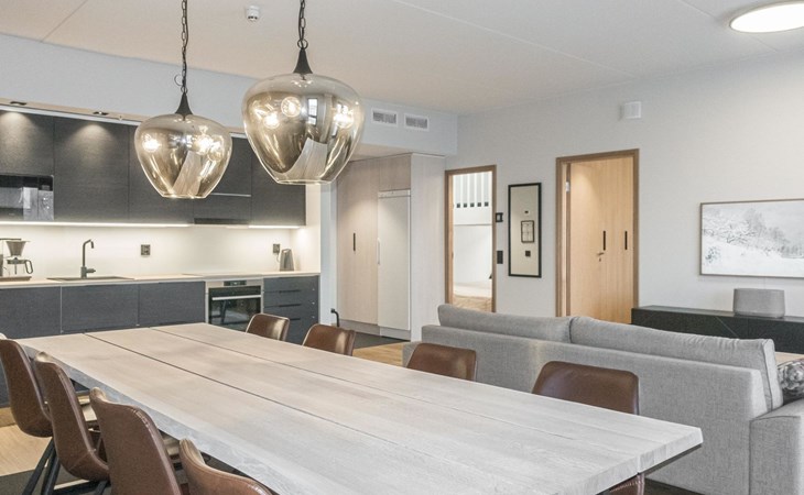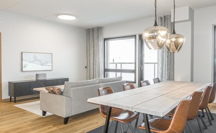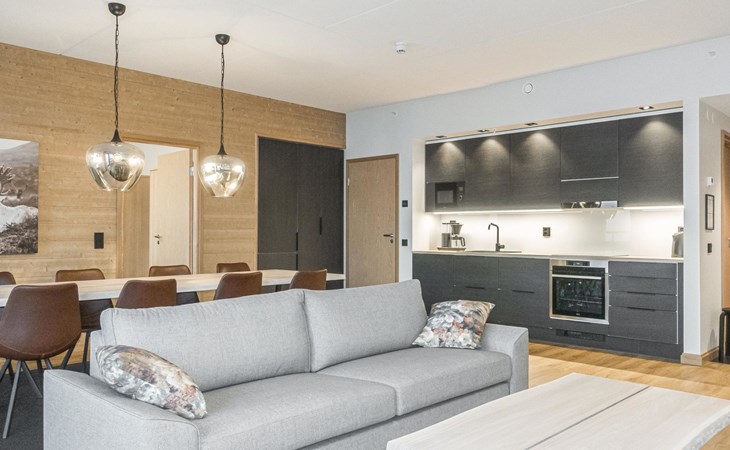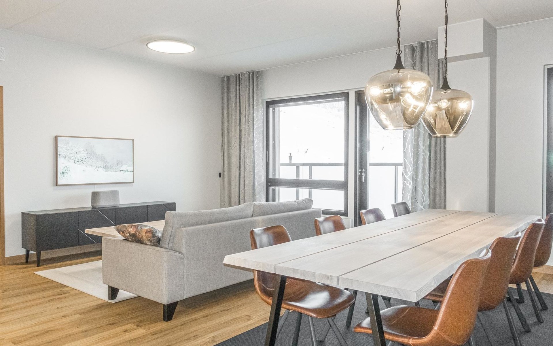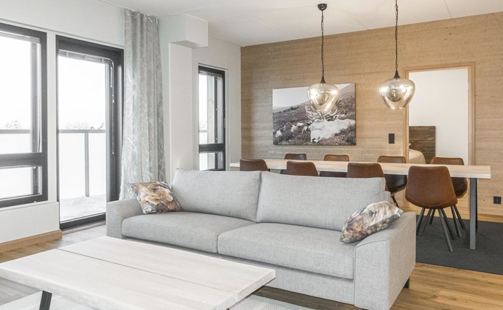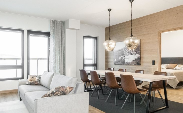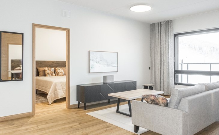 This apartment exudes elegance and spaciousness thanks to its expansive layout. Its location on the third floor offers stunning views of the ski slope from large windows and balcony. A parking space is reserved for your car in the heated underground parking hall on the lower floor, adding convenience to the smooth flow of your vacation.