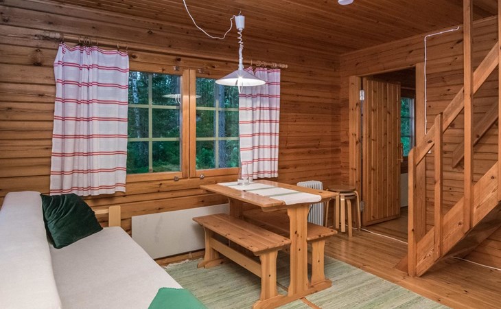 Planed log cottage 1989, renovated 2004, living room, kitchen, bedroom 2 beds, sleeping loft 2 beds and one extra bed, open porch, balcony, sauna, washroom, dressing room.