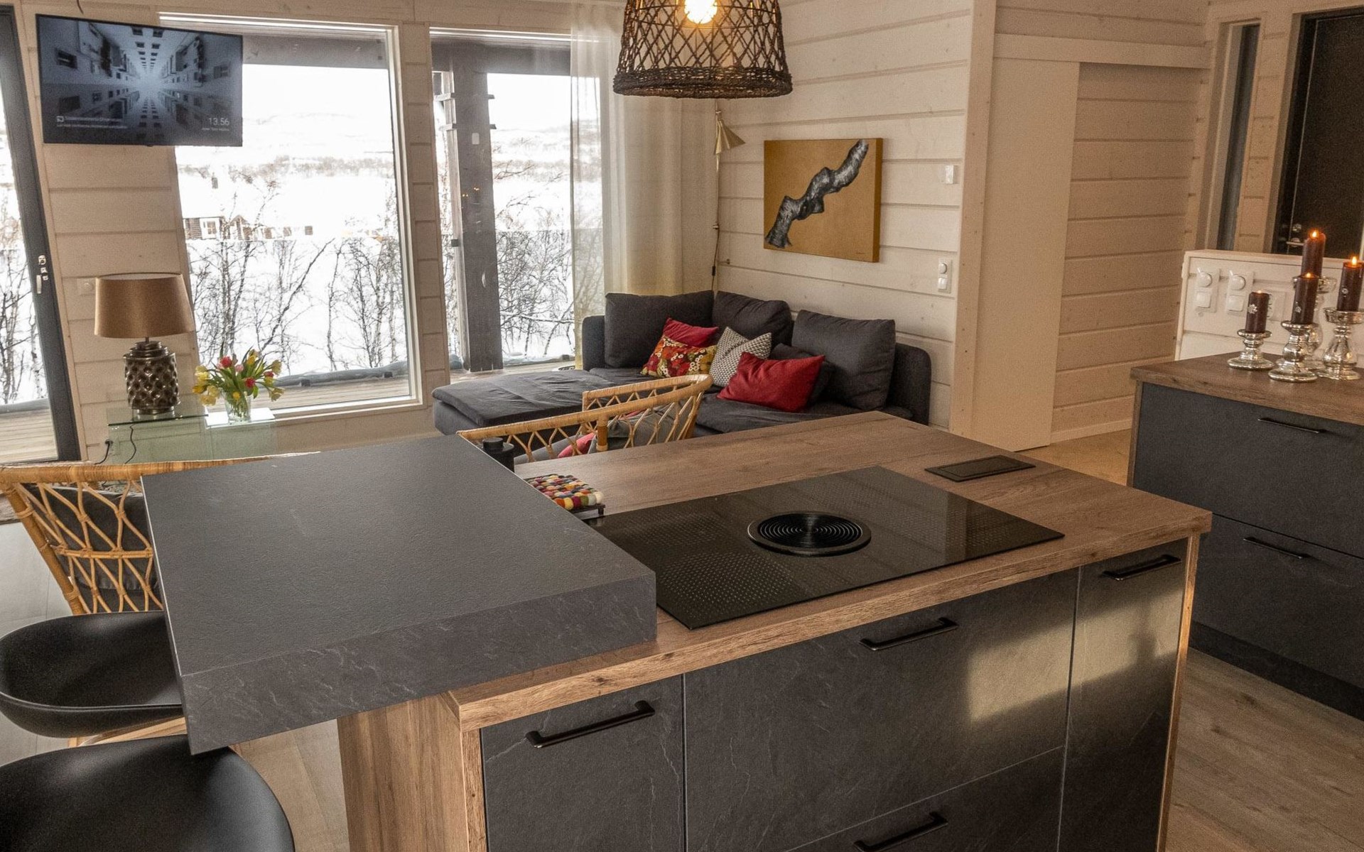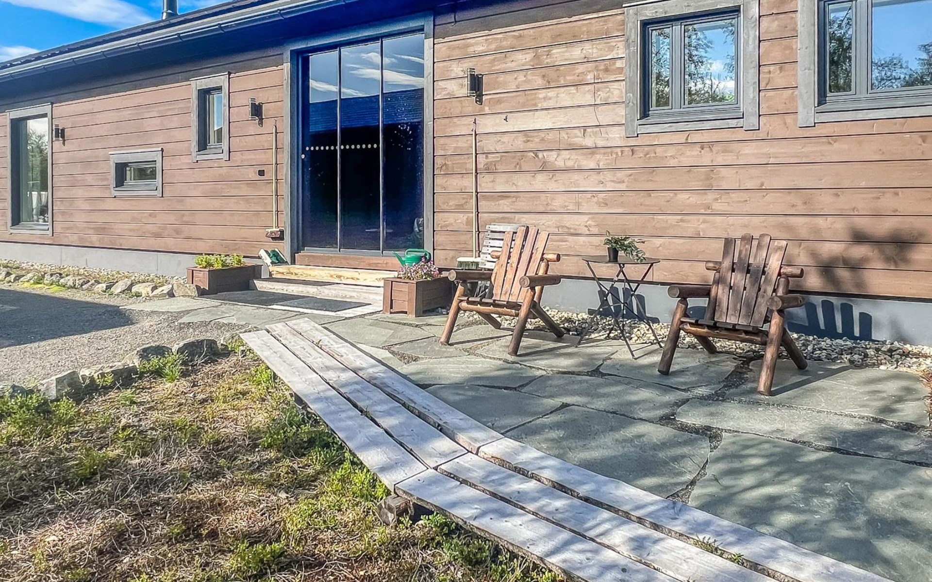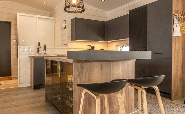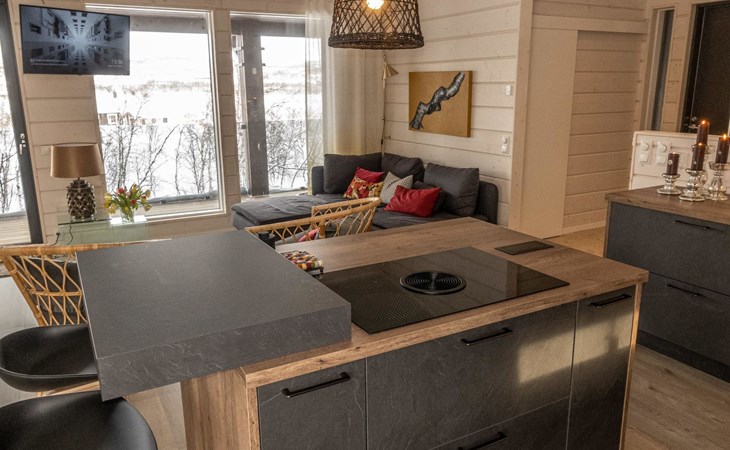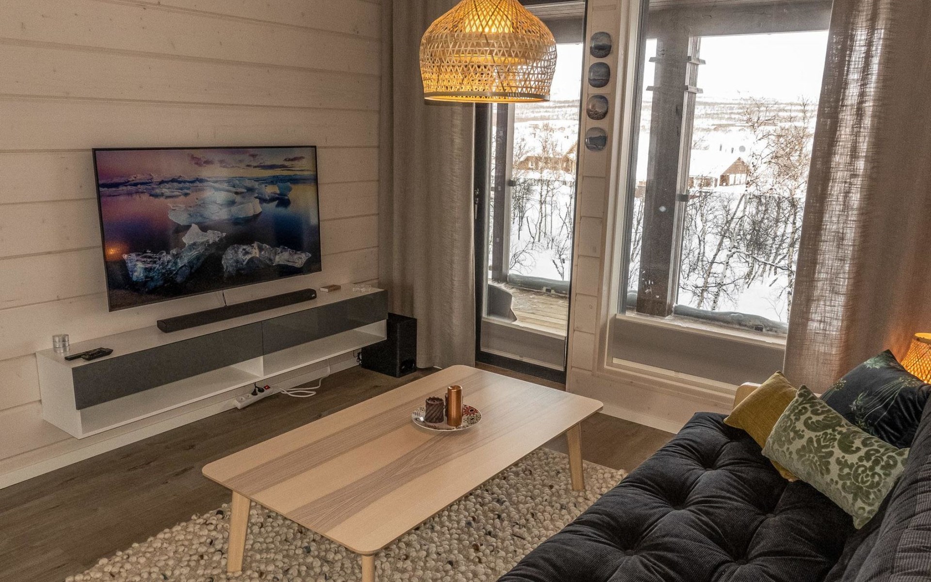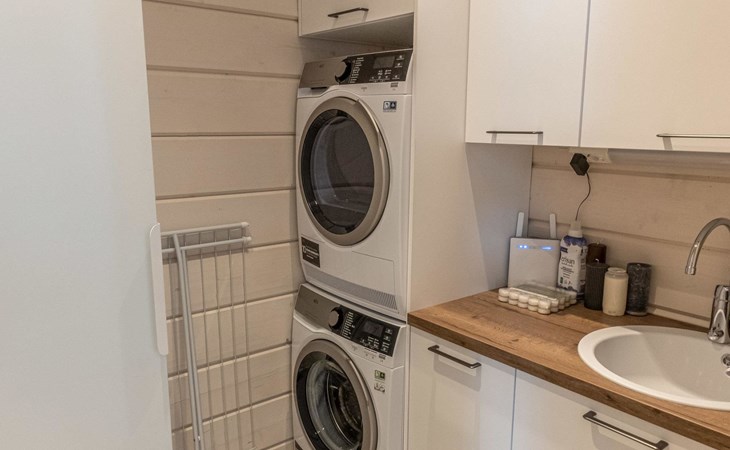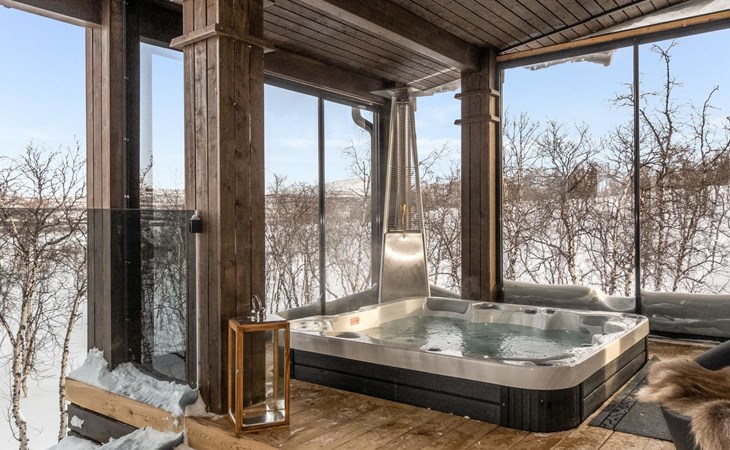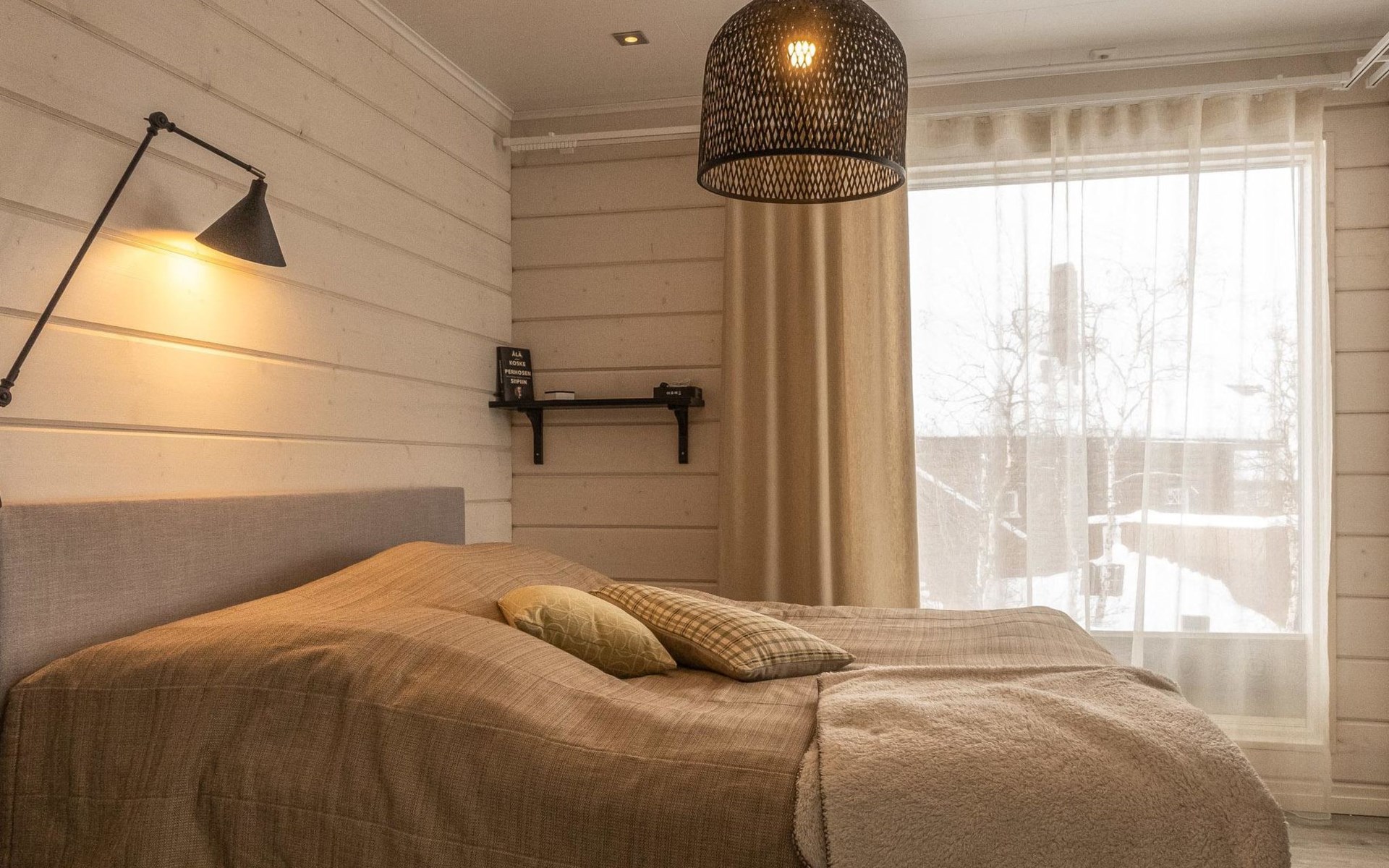 Thermal log villa, built in 2022. Large and bright living room / kitchen, 200 cm wide motorized double bed in the bedroom, view of the fell Saanatunturi from the bedroom, 160 cm wide double bed in the another bedroom. Separate WC with shower, utility room.