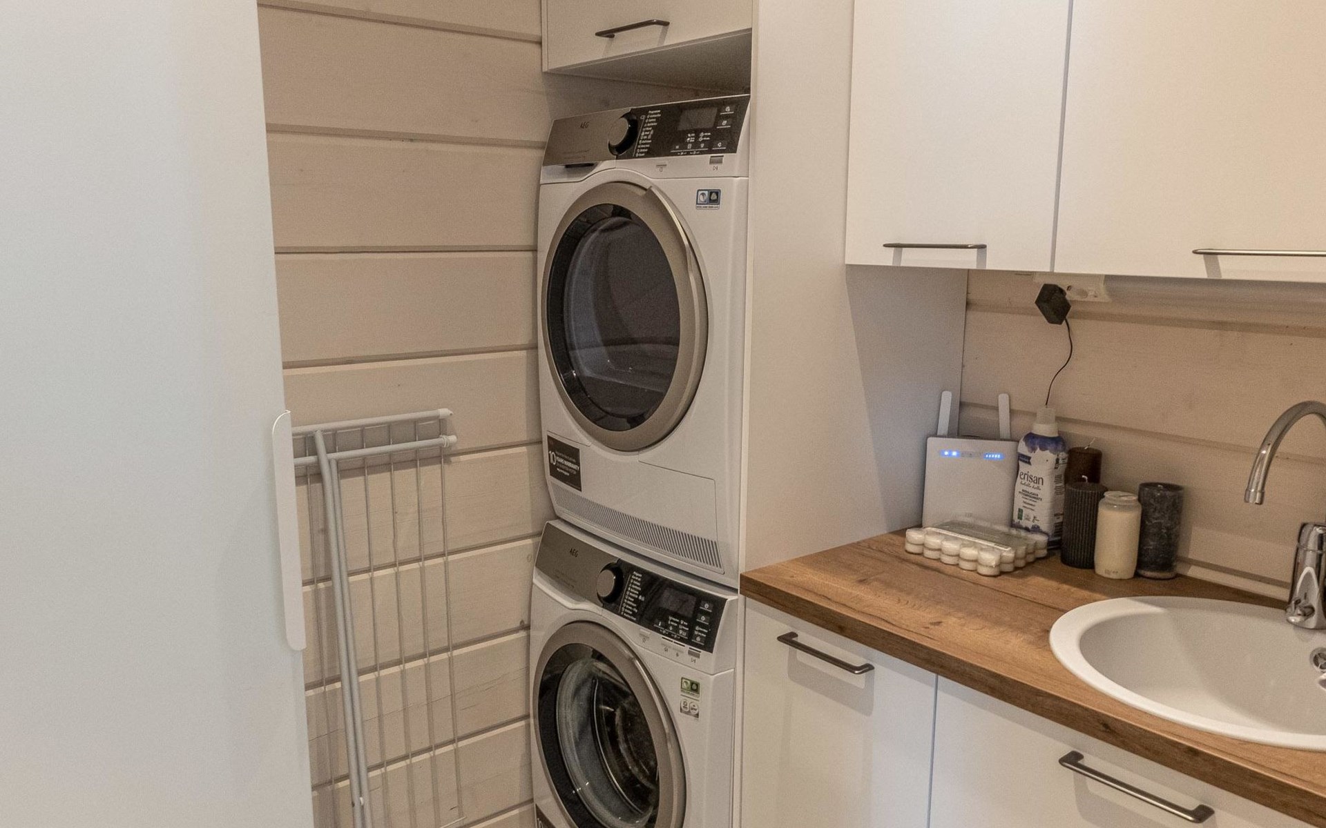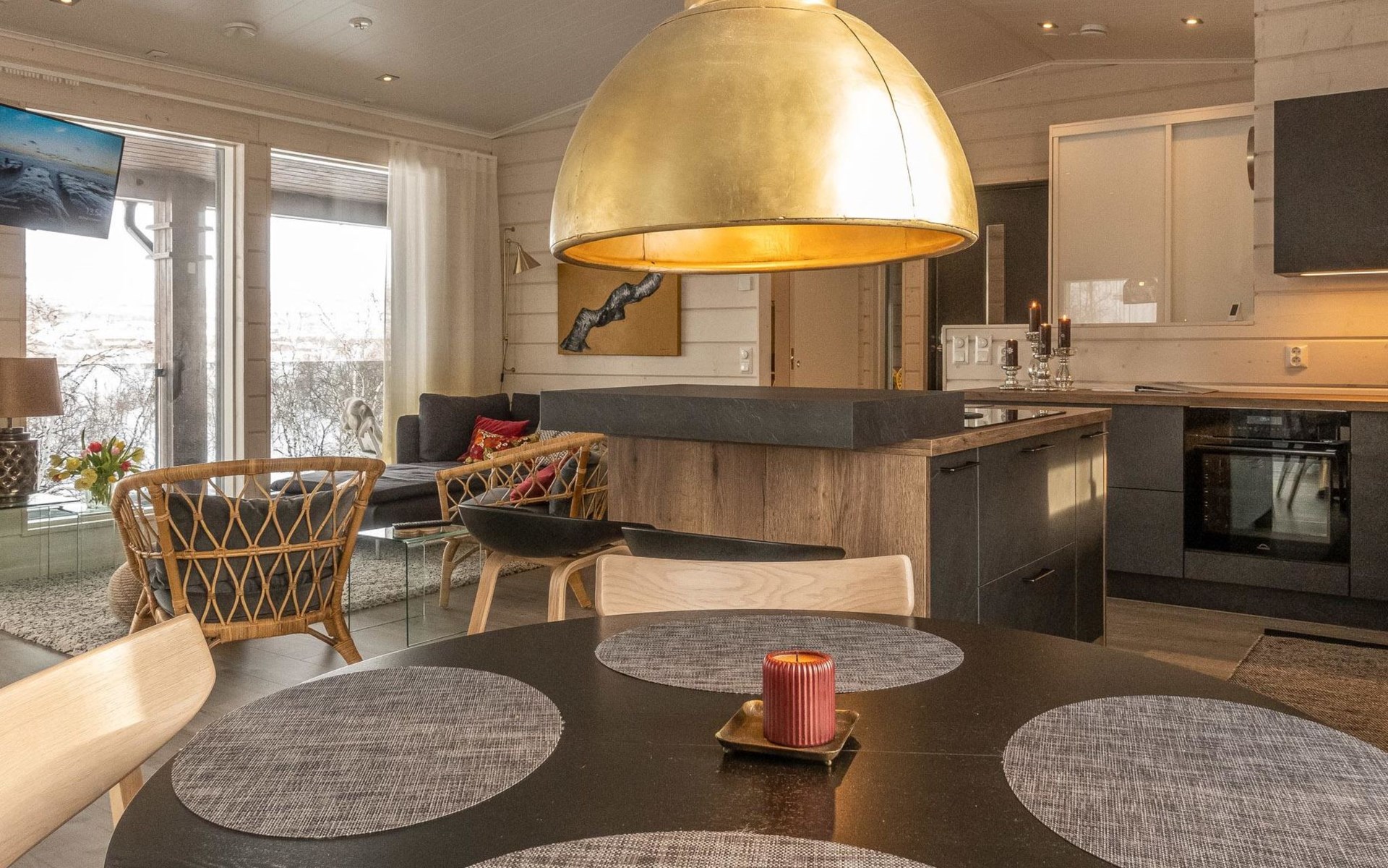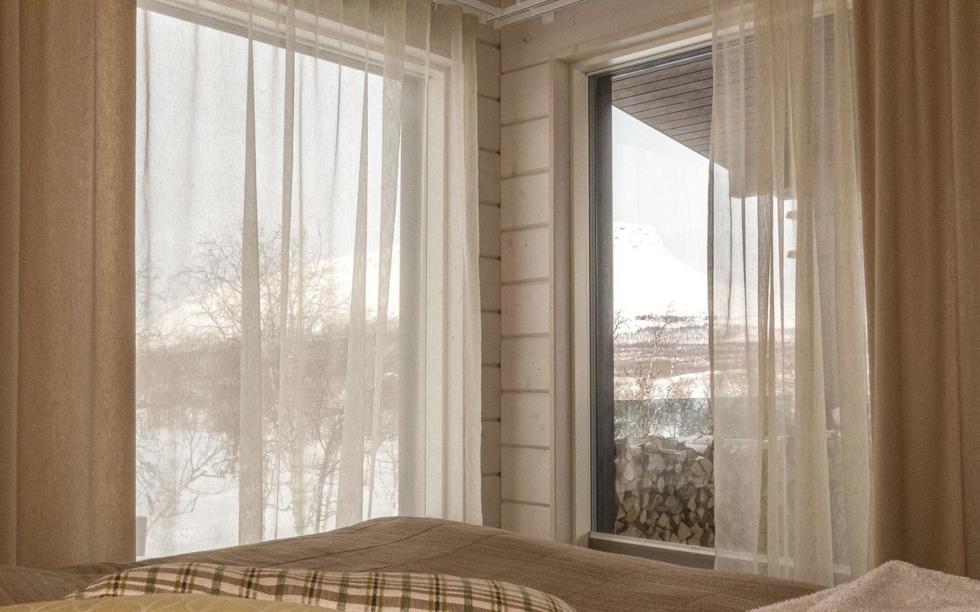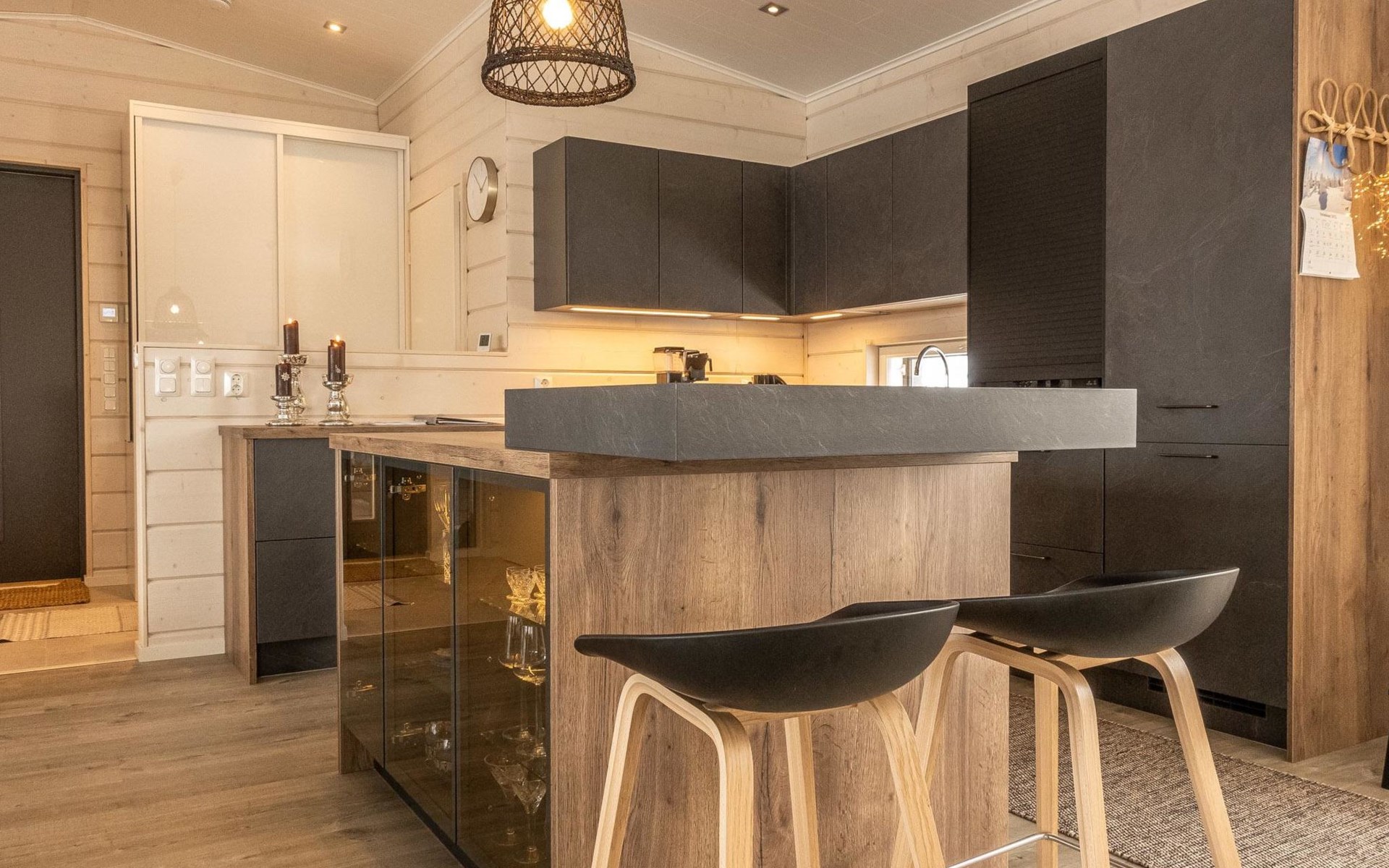 Thermal log villa, built in 2022. Large and bright living room / kitchen, 200 cm wide motorized double bed in the bedroom, view of the fell Saanatunturi from the bedroom, 160 cm wide double bed in the another bedroom. Separate WC with shower, utility room.