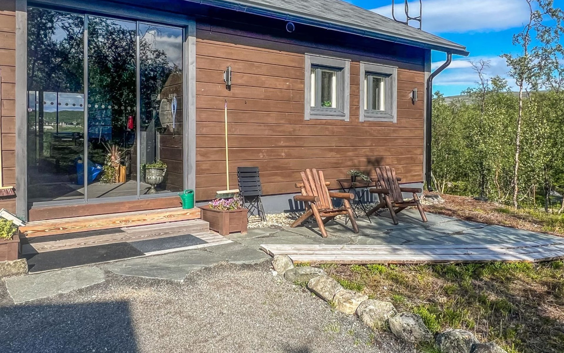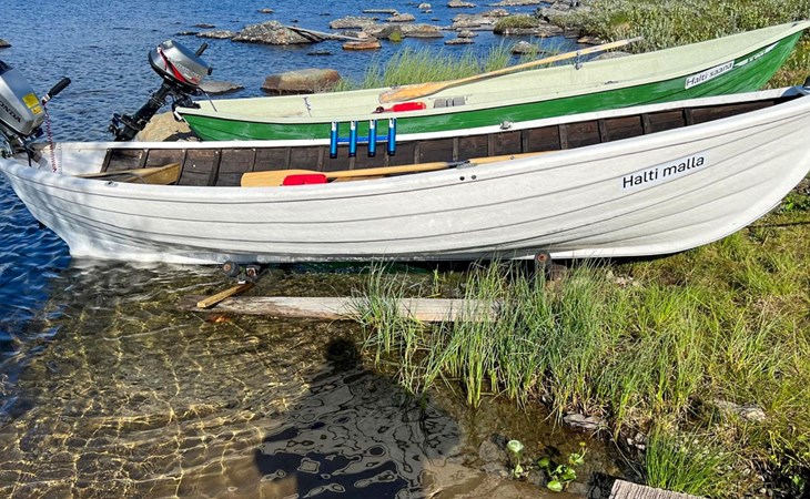 430 km to the northwest from Rovaniemi, located in Kilpisjärvi in the Salmivaara area, about 500 m distance to the lake Kilpisjärvi, shared beach, road between the cabin and the beach. Marina and boat ramp 500 m, there is also a shared lean-to shelter in the area. Rowing boat. Outboard motor Honda 5 hp (four-stroke) for rent, the customer brings fuel, more information and rental directly from the owner.