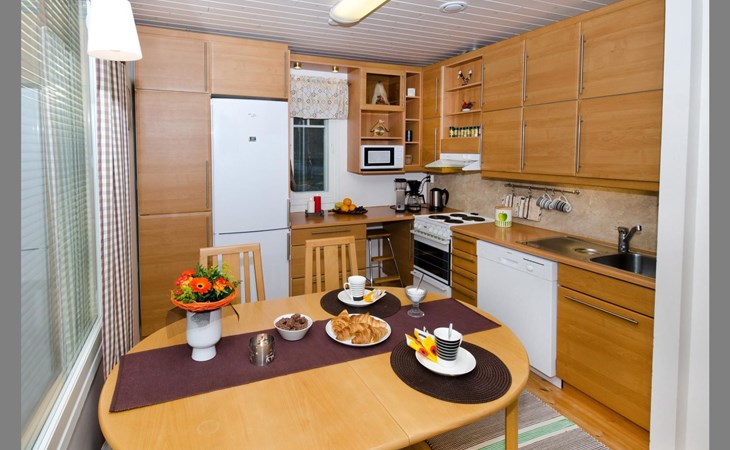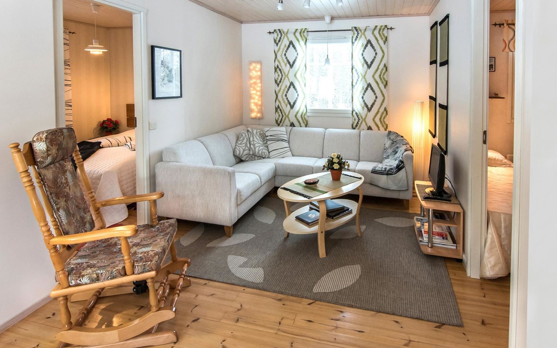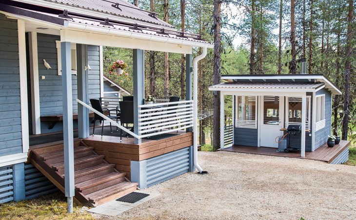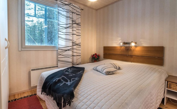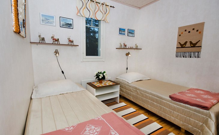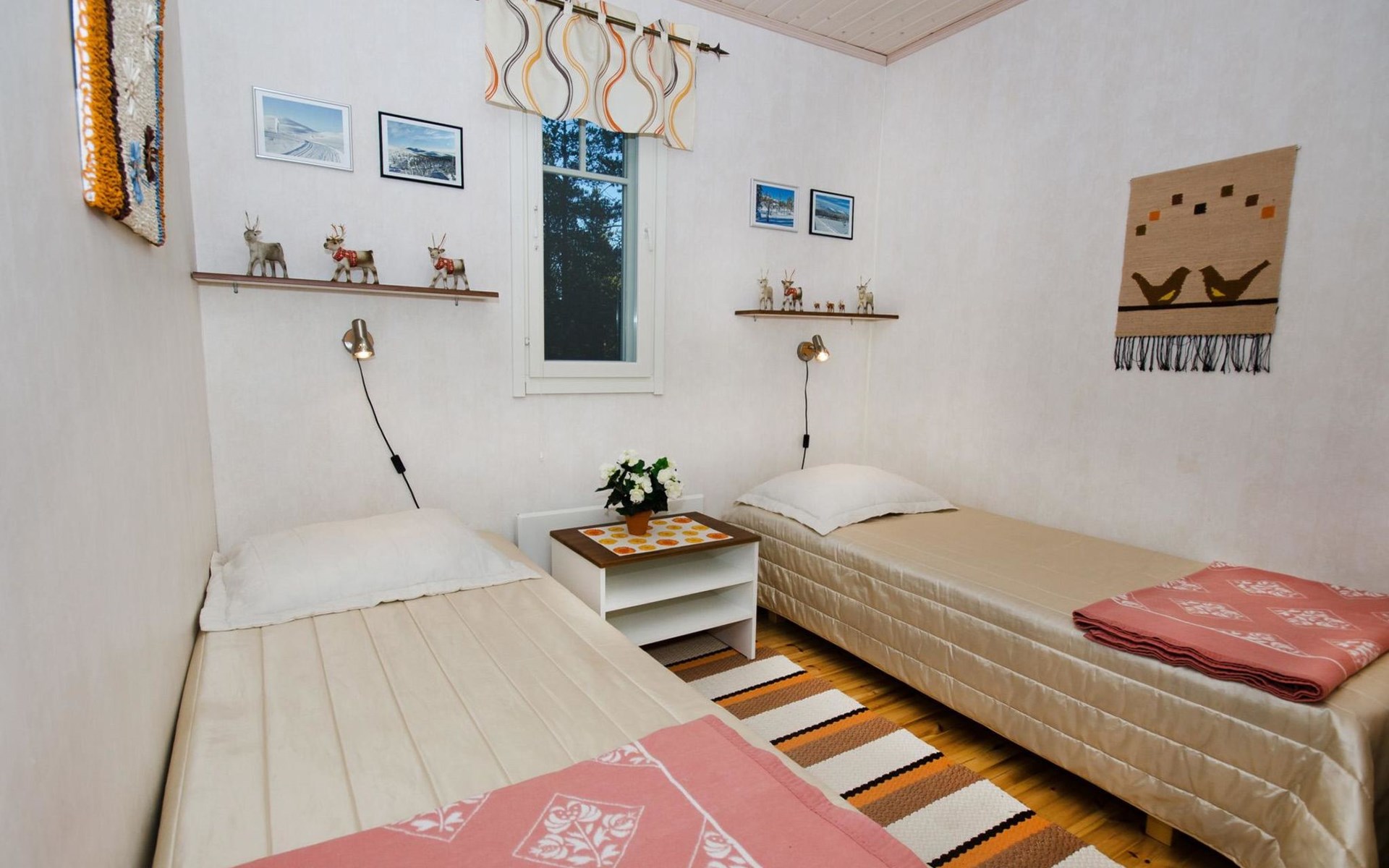 Blank-built cottage built in 2007, combined kitchen-living room, livingroom, bedroom double bed, bedroom 2 beds, toilet, wood-heated sauna (access to sauna from porch), dressing room, open porch, storage. Gas grill. No fireplace.