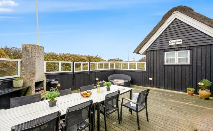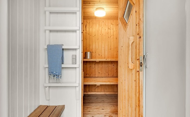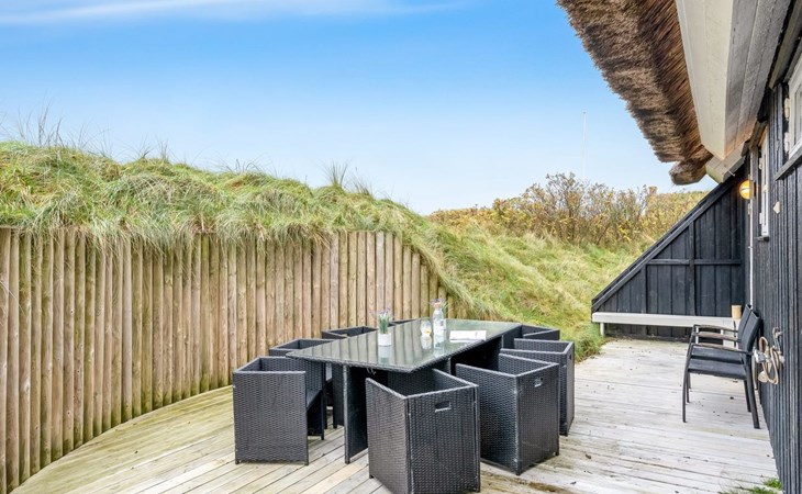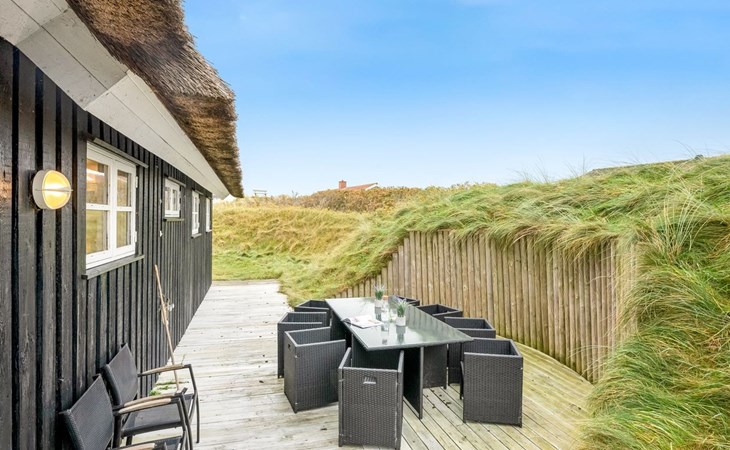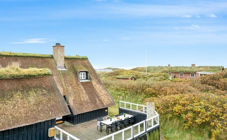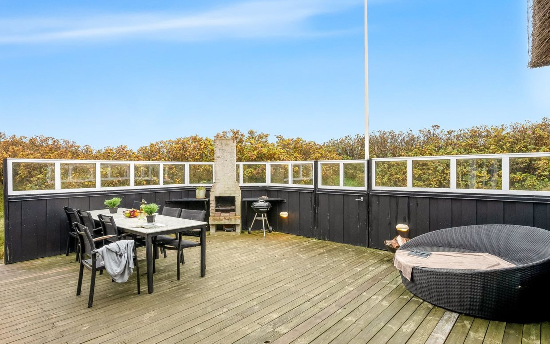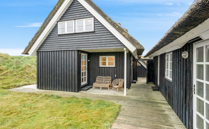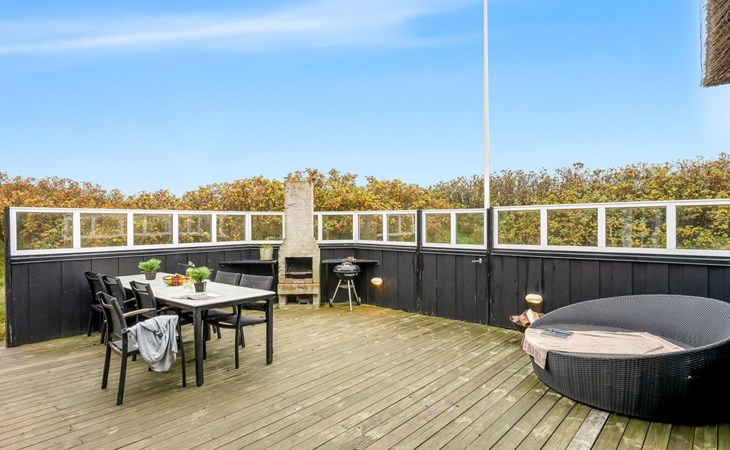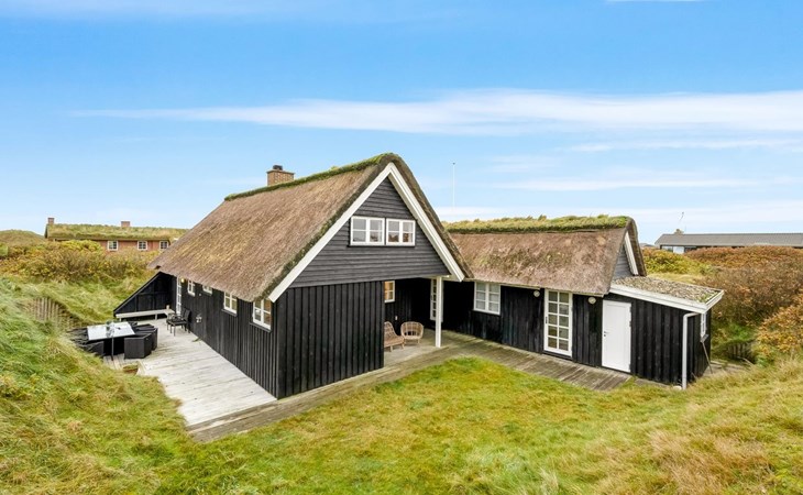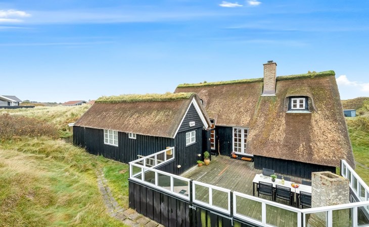 Single-family house, built in 1982. 100 m from the sea. Private: property 1'432 m2. Outdoor shower, terrace (100 m2), fireplace. In the house: sauna, washing machine. Parking at the house. Grocery 1 km. Golf course 6.3 km. The owner does not accept any youth groups.