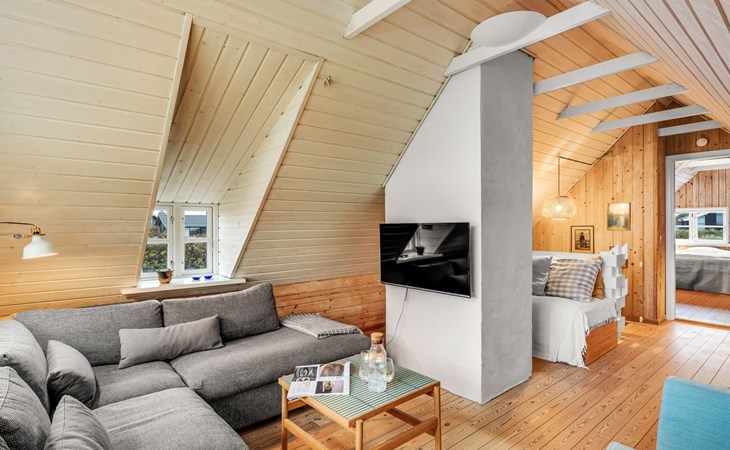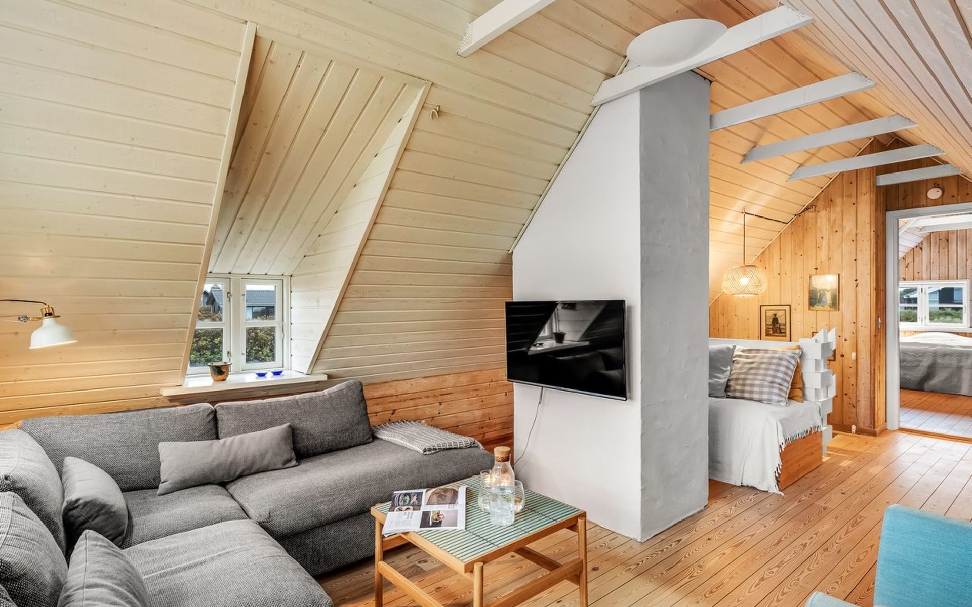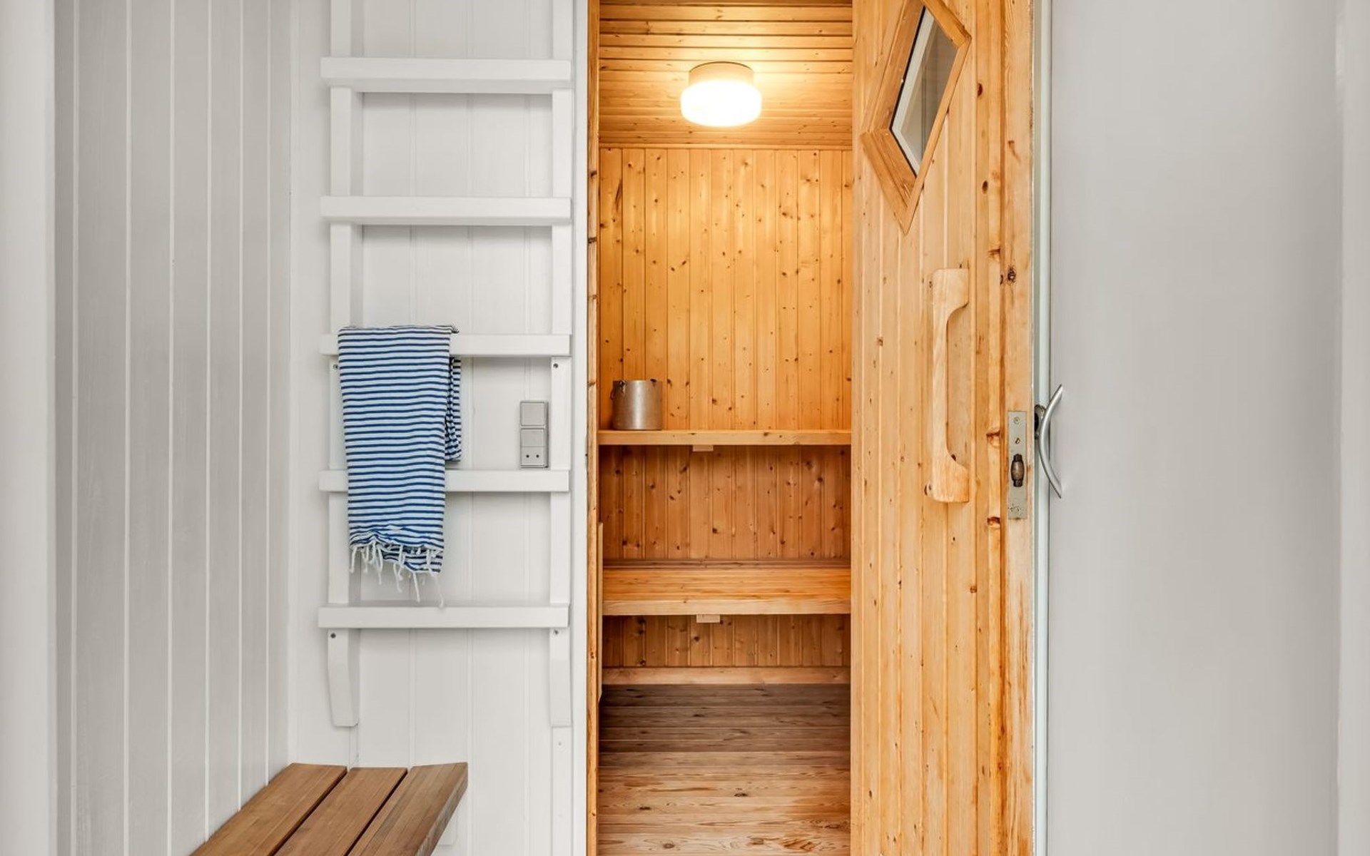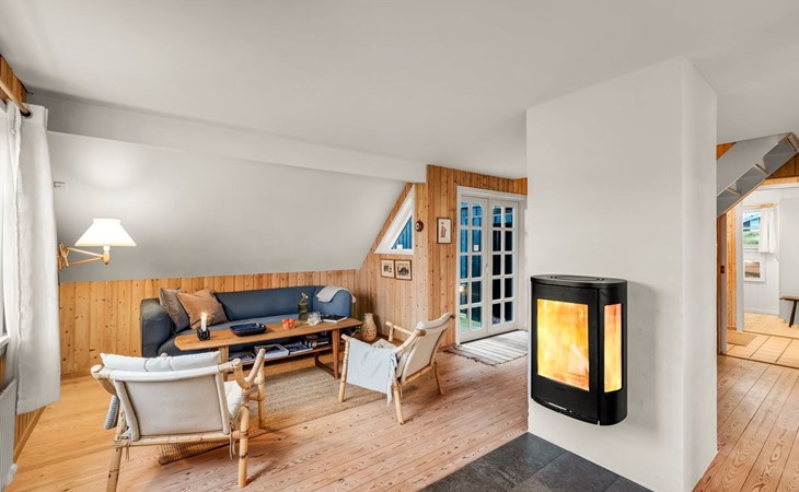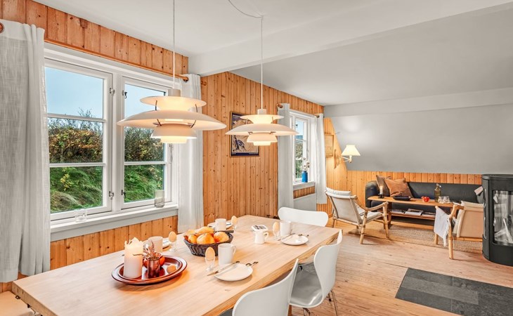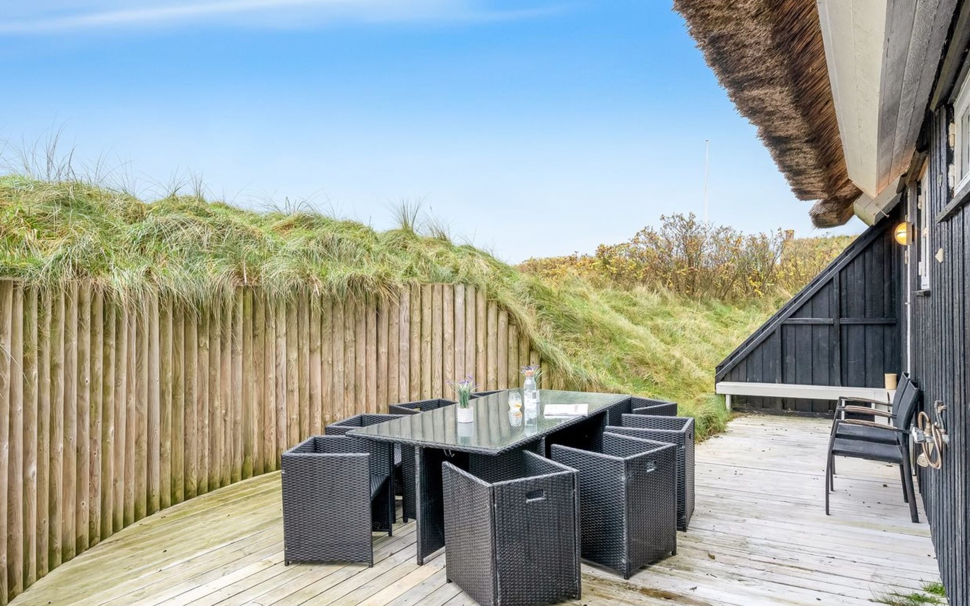 Single-family house, built in 1982. 100 m from the sea. Private: property 1'432 m2. Outdoor shower, terrace (100 m2), fireplace. In the house: sauna, washing machine. Parking at the house. Grocery 1 km. Golf course 6.3 km. The owner does not accept any youth groups.
