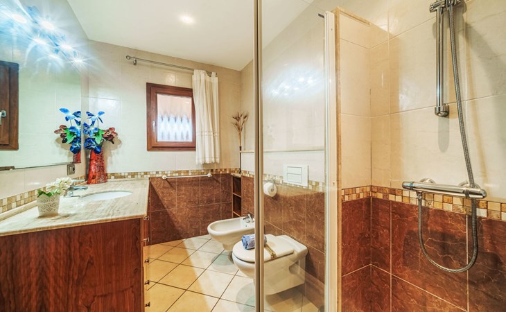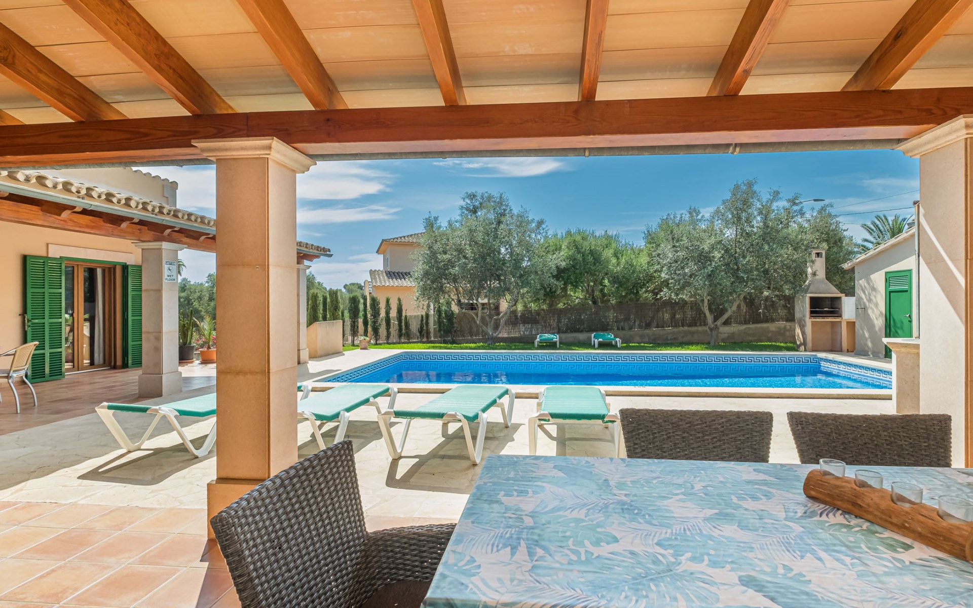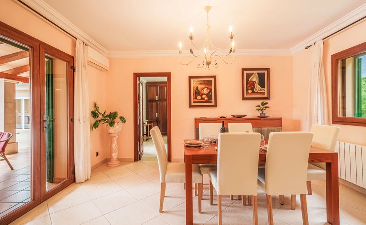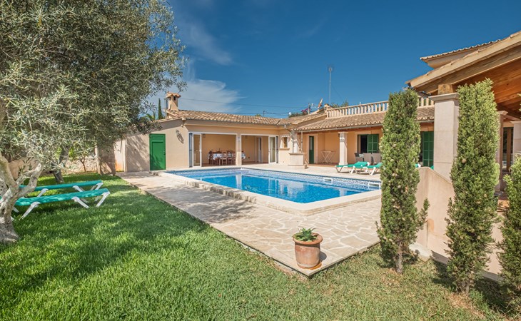 Single-family house "Peña Rubia", detached. 1 km from the centre of Cala Murada, on the outskirts, 14 km from the centre of Felanitx, 65 km from the centre of Palma, in the residential district, 1.5 km from the sea. Private: property 1'500 m2 (fenced) with lawn and wildlife garden, swimming pool (10 x 5 m, seasonal availability: 01.Jan. - 31.Dec.). Shower/WC in the pool area, public parking on the road. Shop 1 km, bus stop "Cala Murada" 1 km, railway station "Manacor" 21 km, sandy beach "Cala Murada" 1.5 km. Please note: car recommended.