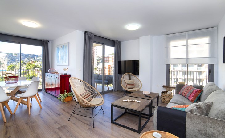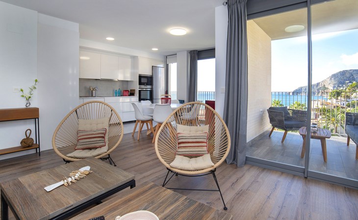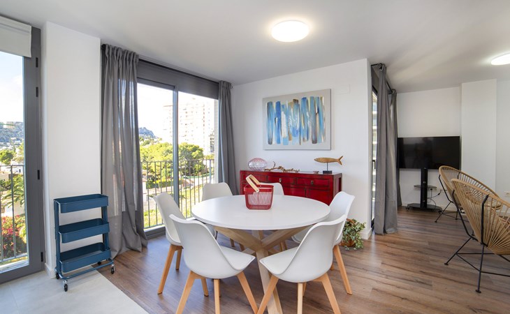 Very modern, beautiful apartment block "Isea Calpe", 8 storeys, built in 2019. In the centre of Calpe, in a sunny position, in the heart of the city, 100 m from the sea, 100 m from the beach. For shared use: property (fenced), terraced garden with plants and flowers, swimming pool fenced (12 x 8 m, depth 40 - 165 cm, seasonal availability: 01.Jan. - 31.Dec.). Unconventional pool shape. WC in the pool area, children's pool, outdoor shower, table tennis, children's playground. In the house: lift. Shop 100 m, supermarket 180 m, restaurant 30 m, bar, café 100 m, bus stop "Parada Bus" 150 m, sandy beach "Playa Arenal" 130 m. Sports harbour 2.2 km, marina 2.2 km, golf course (9 hole) 10 km. Nearby attractions: Aqualandia, Mundomar, Terra Mítica, Terra Natura, Benidorm Palace (Benidorm), Fonts de l'Algar, Castillo de Guadalest. The owner does not accept any youth groups.