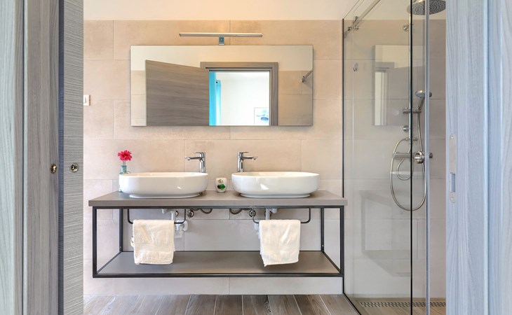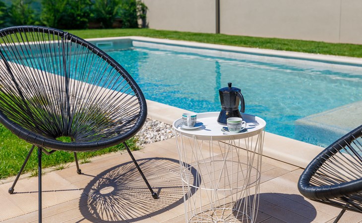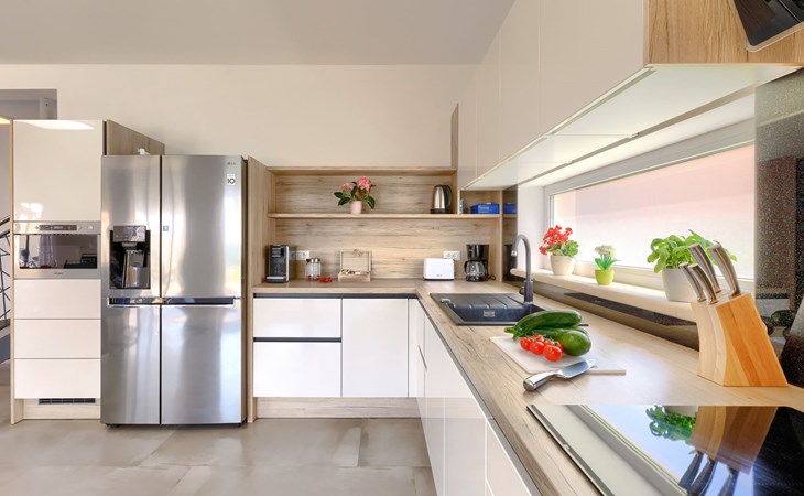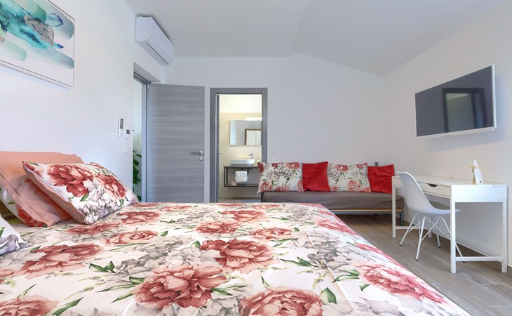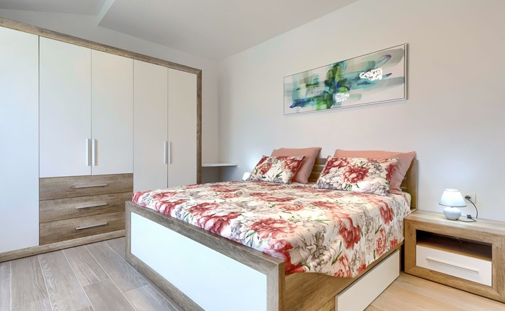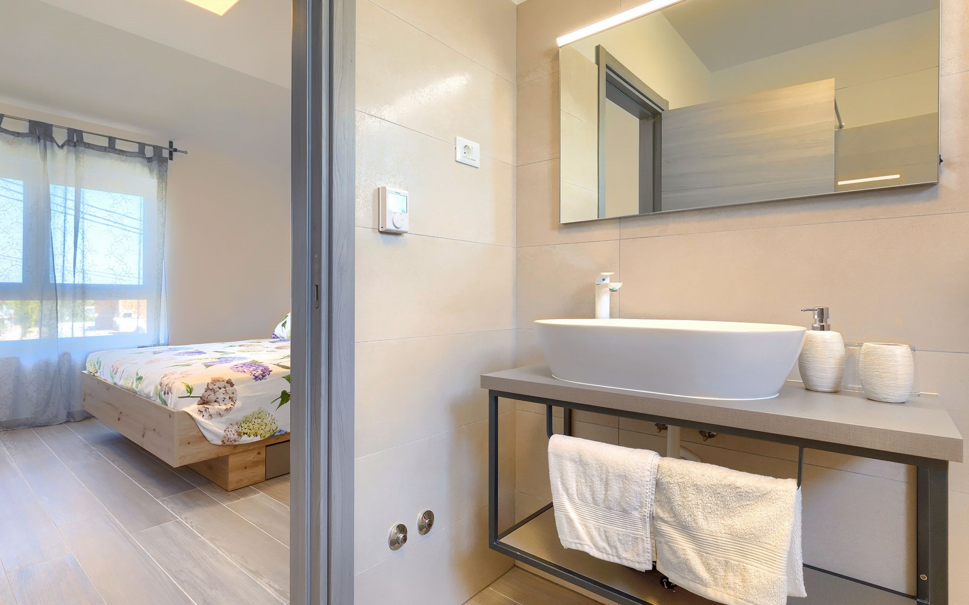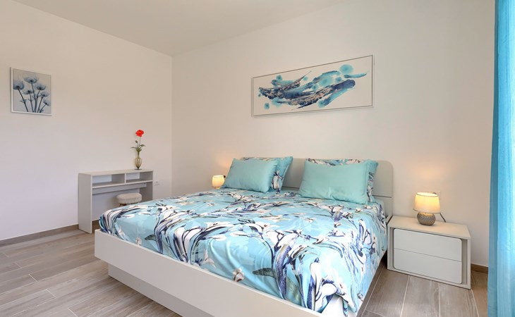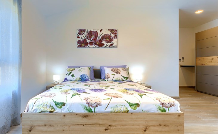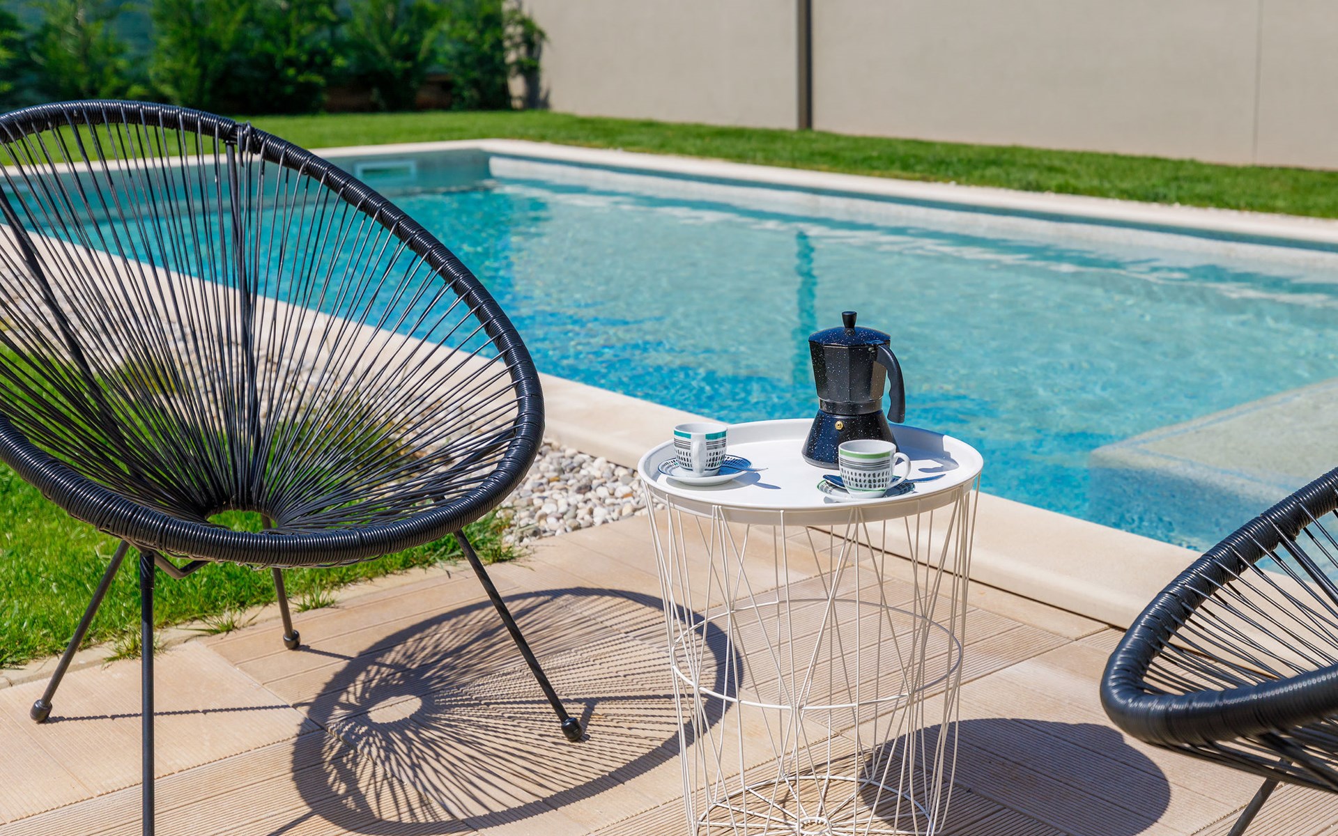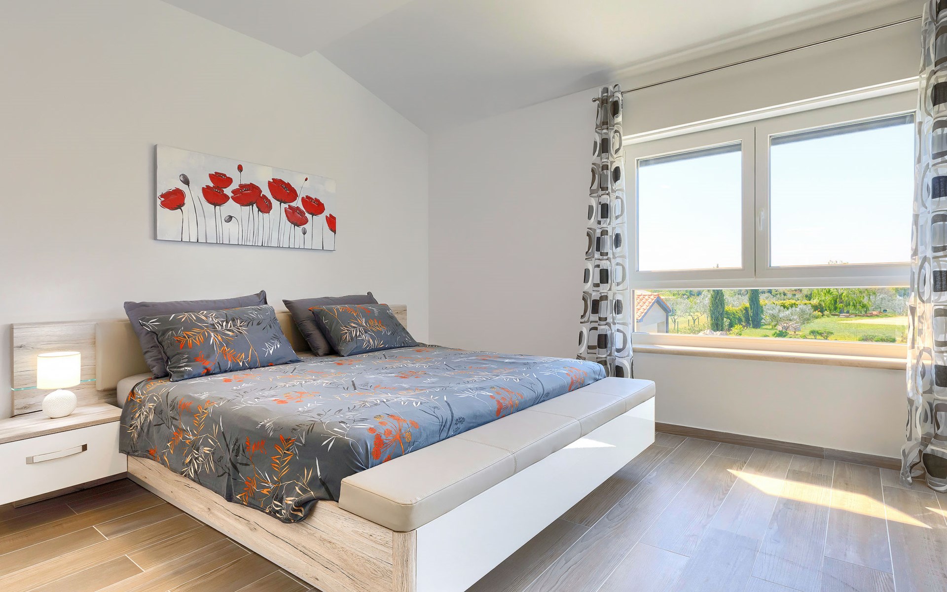 Šišan 4 km from Medulin: Modern, beautiful semi-detached house "Villa Edi", 2 storeys, built in 2021. 300 m from the centre of Šišan, 2 km from the centre of Ližnjan, 7 km from the centre of Pula, 3 km from the sea, 3 km from the beach. Private: property 700 m2 (fenced) with lawn 200 m2, swimming pool angular (45 m2, depth 135 cm, seasonal availability: 03.Apr. - 06.Nov.) with internal staircase and salt-electrolysis pool-cleaning system. Outdoor shower, table tennis, badminton, barbecue, barbecue house, pool maintenance by the owner/gardener. In the house: internet access, central heating system, air conditioning, burglar alarm system, washing machine, tumble dryer. Parking (for 2 cars) at the house on the premises. Shop 300 m, supermarket 4 km, restaurant 50 m, café 300 m, bus stop 20 m, pebble beach 3 km, shingle beach 3 km, rocky beach 3 km. Marina 4 km, surf school 4 km, sailing school 4 km, tennis 2 km, children's playground 800 m. Groups of teenagers on request only. Please note: airfield 10 km from the property. Swimming pool with hydromassage.