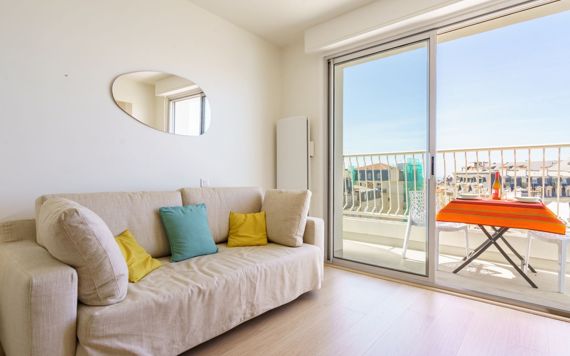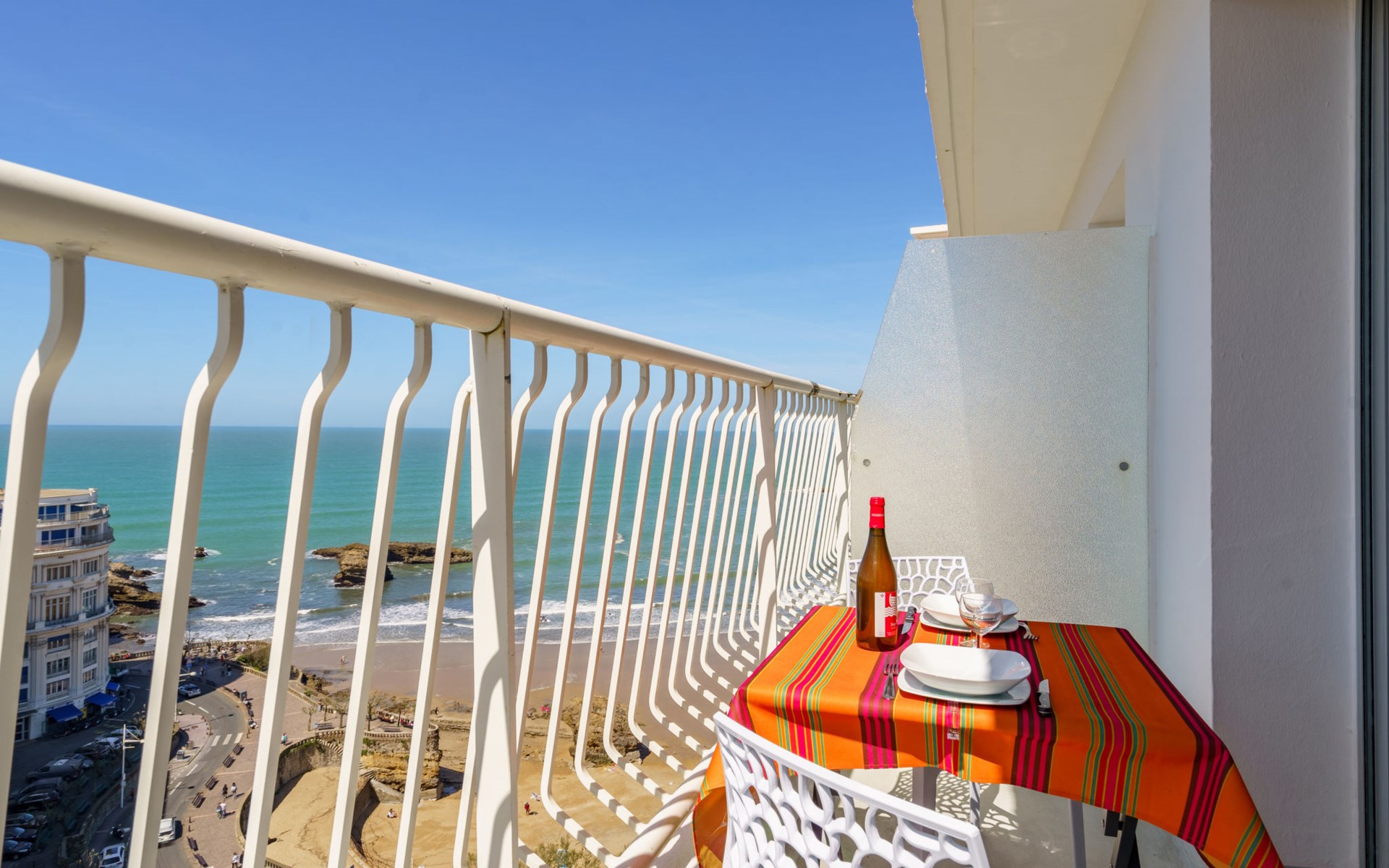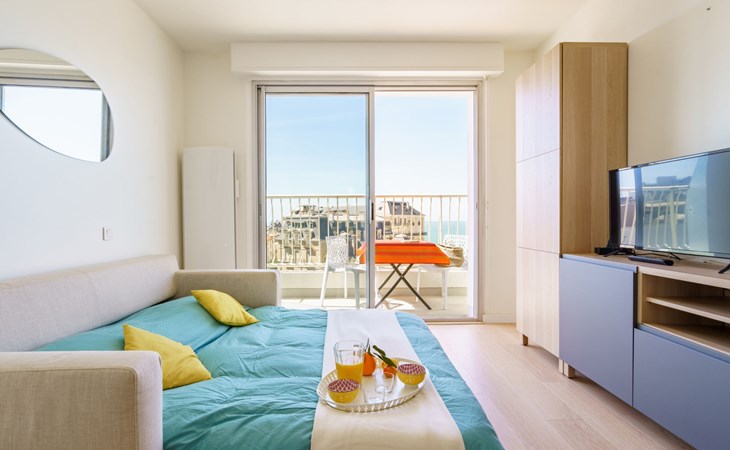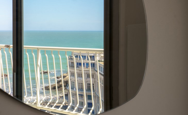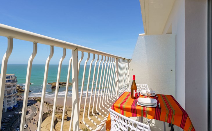 Biarritz: Residence "Bellevue Clemenceau", 7 storeys. In the centre of Biarritz, 150 m from the sea, 150 m from the beach. In the house: lift. Shop 50 m, grocery 100 m, supermarket, restaurant, café 50 m, bus stop 50 m, railway station 2.5 km, sandy beach "La grande Plage" 150 m, indoor swimming pool 200 m. Golf course (18 hole) 2.8 km, surf school 150 m. Nearby attractions: Marché des Halles 280 m, Port des Pêcheurs 400 m, Aquarium 750 m, Phare de Biarritz 1.7 km, Bayonne 8 km, St-Jean-de-Luz 17 km. Hiking paths: Le Chemin du Littoral 400 m, La Rhune 28 km. The keys‘ handover takes place by the agency Interhome.