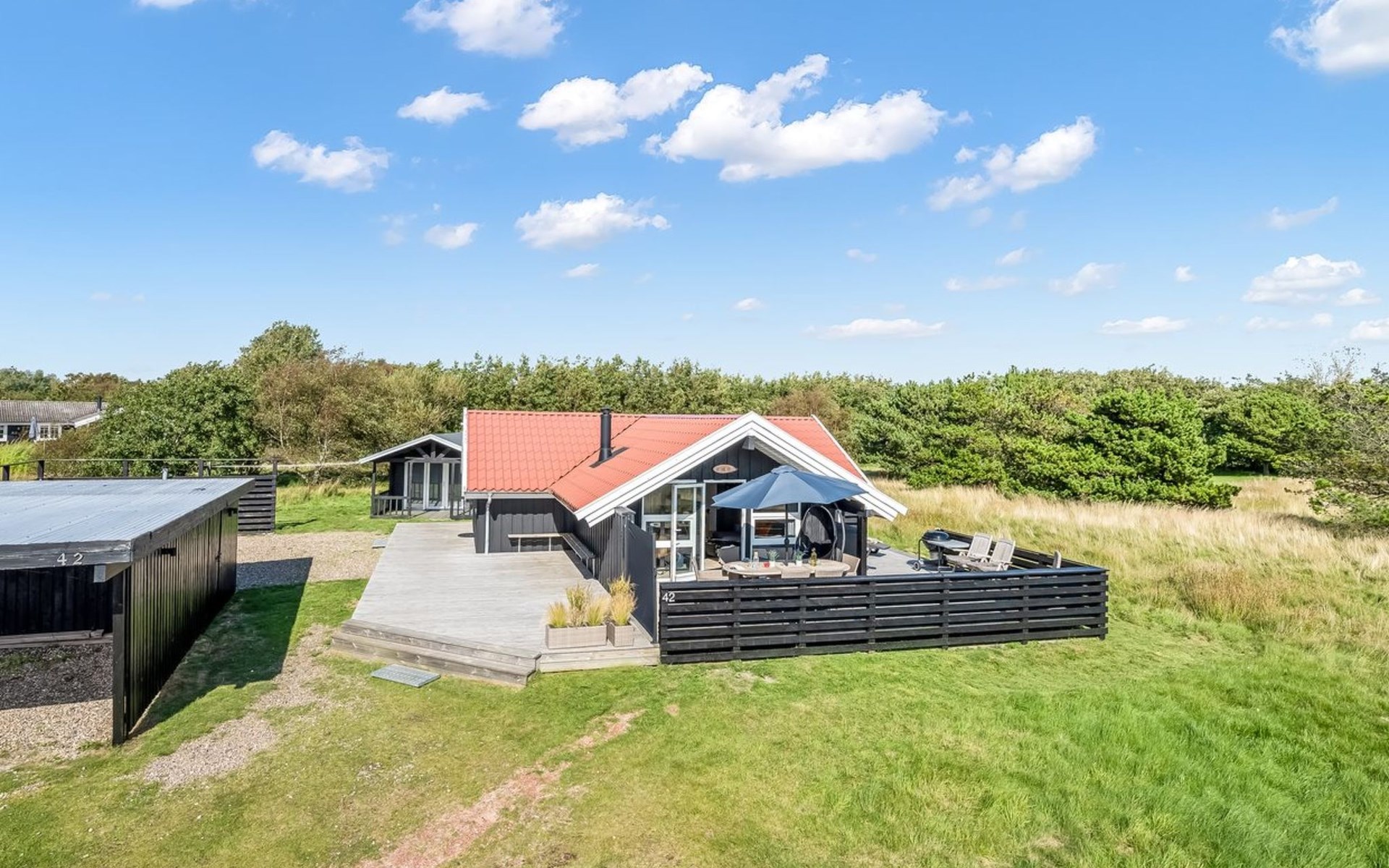 Single-family house, built in 1986. 1 km from the sea. Private: natural state property 2'087 m2. Terrace (90 m2), barbecue. In the house: washing machine. Parking at the house. Carport. Grocery 800 m. Golf course 2 km. The owner does not accept any youth groups.