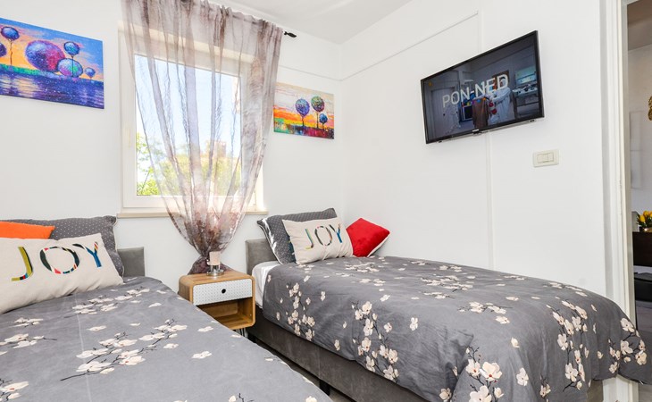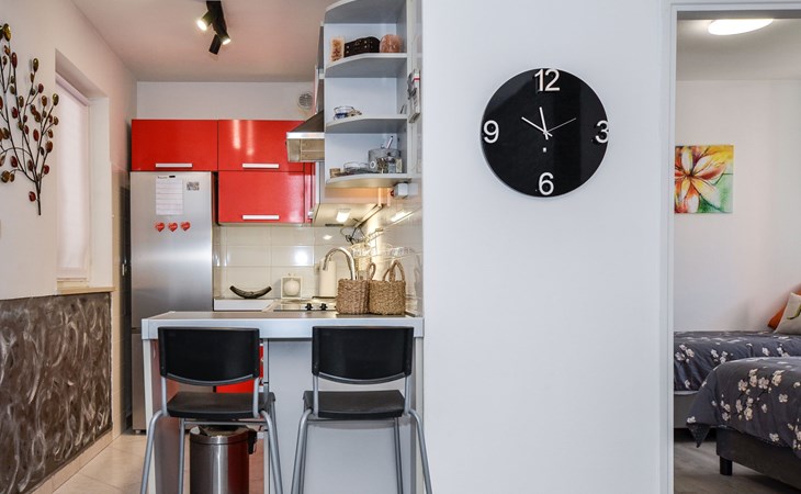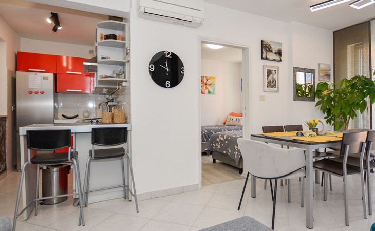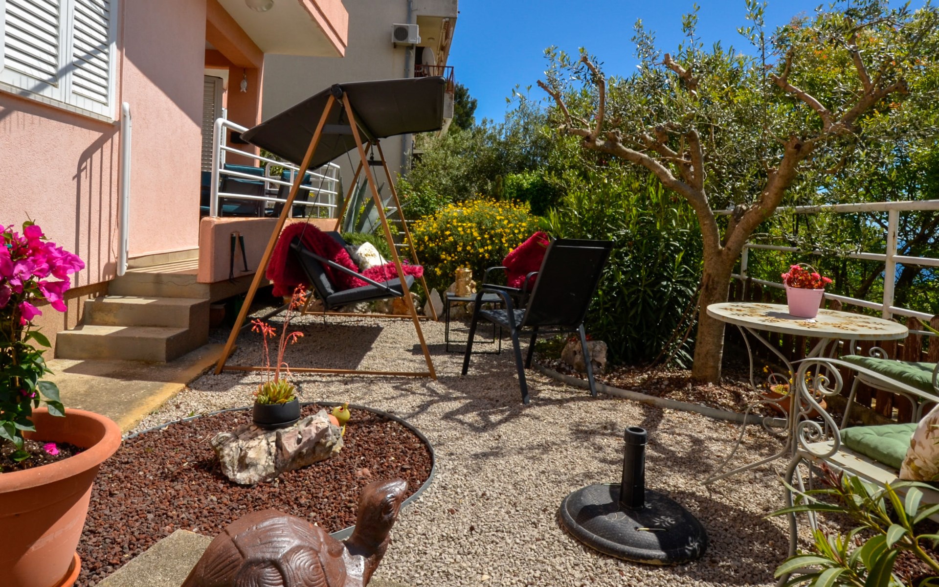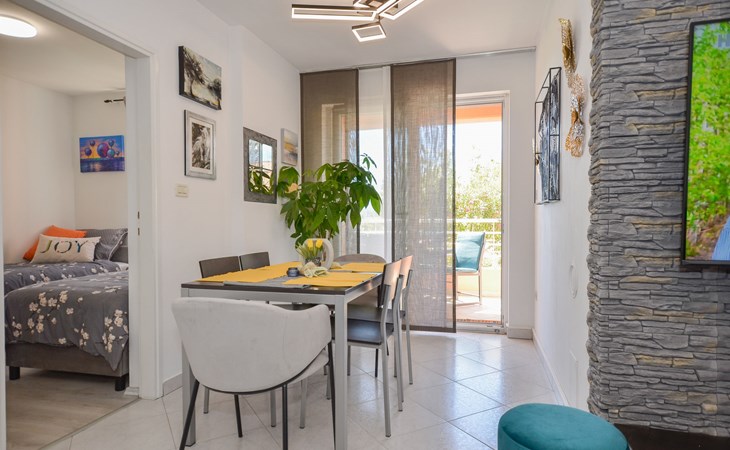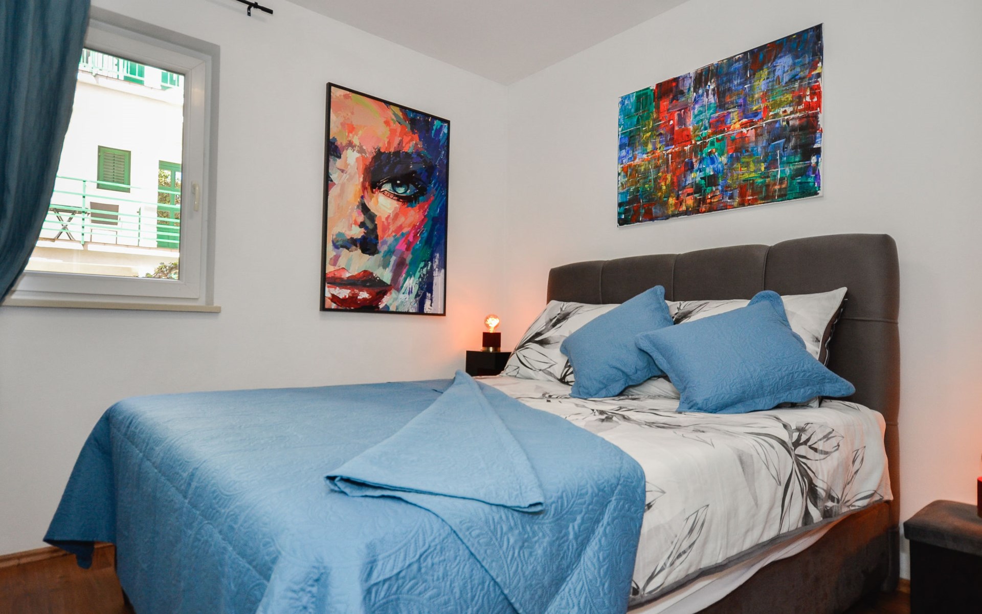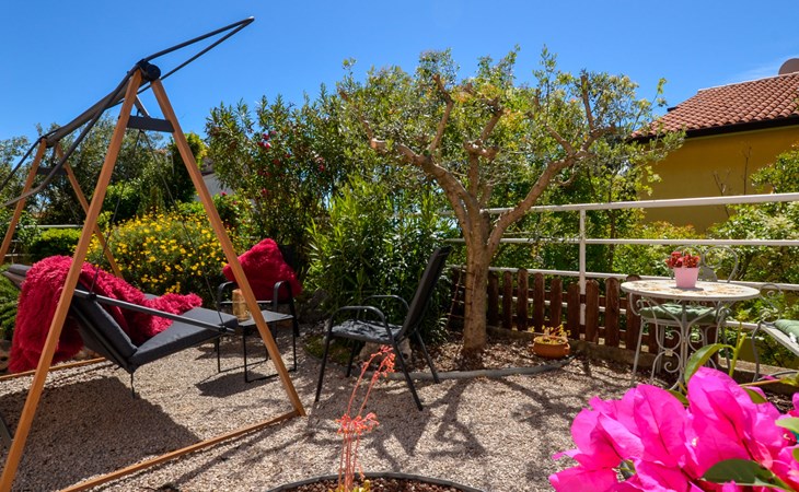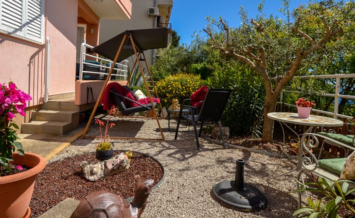 Apartment house "Kiki", 3 storeys. 1.5 km from the centre of Rabac, 5 km from the centre of Labin, 1.2 km from the sea, 1.2 km from the beach. Private: small garden 40 m2 with wildlife garden and trees. In the house: internet access. Parking at the house on the premises. Shop 500 m, supermarket 5 km, restaurant 1.2 km, bus stop 1.7 km, pebble beach 1.2 km. Please note: airfield 50 km from the property.