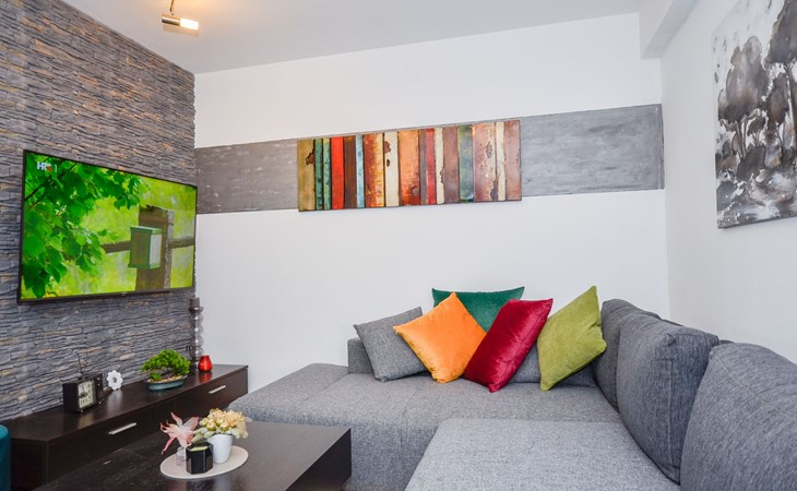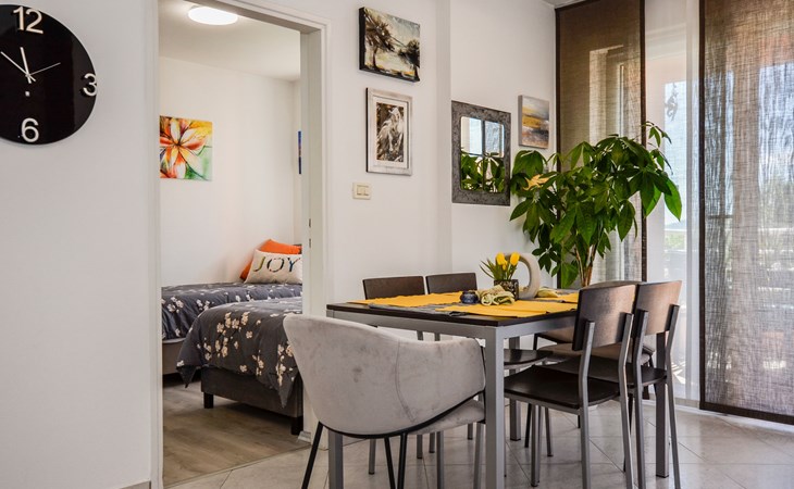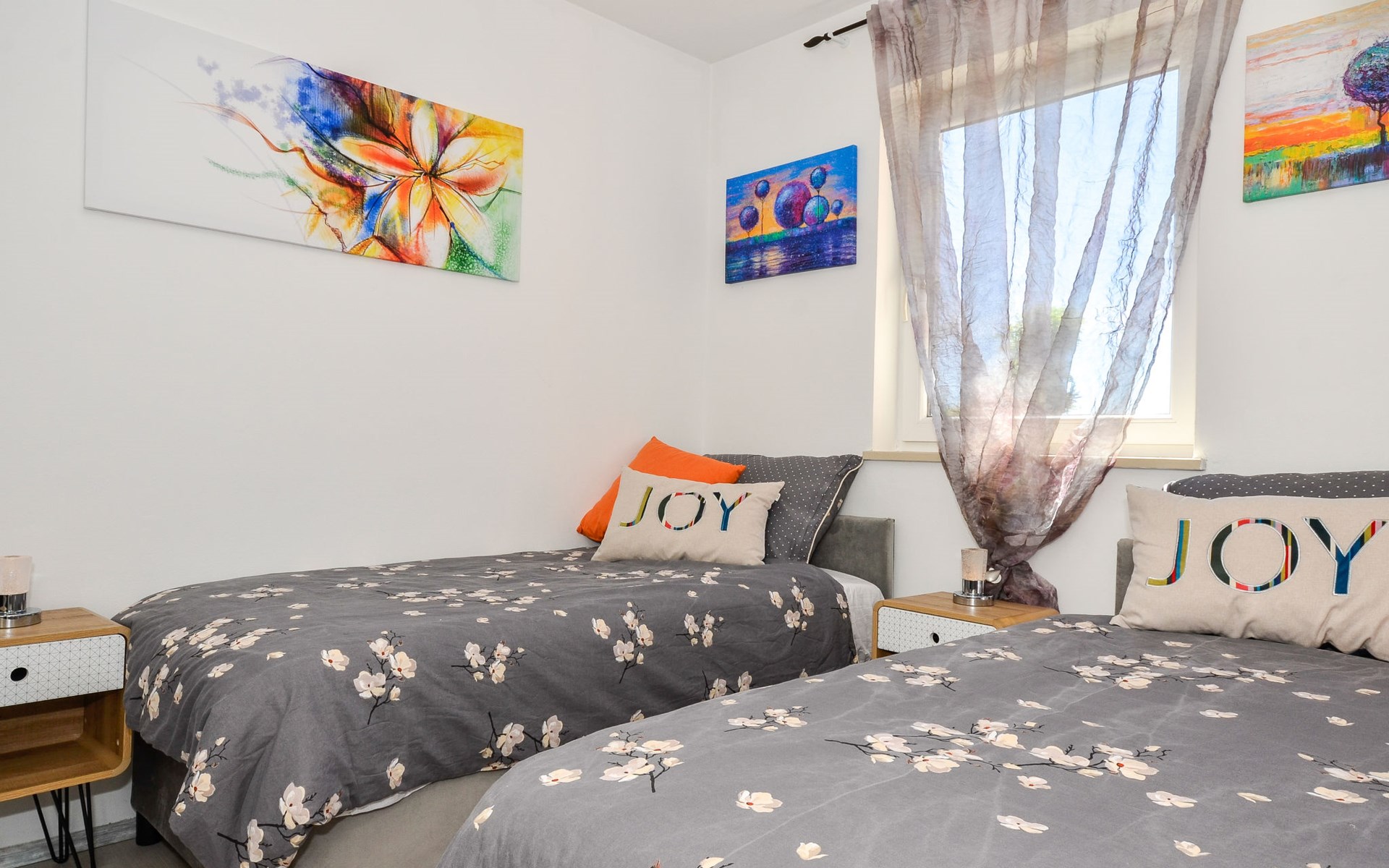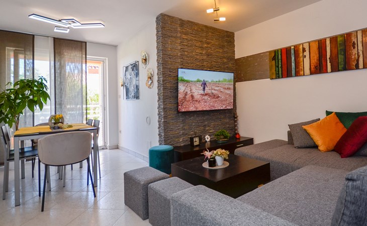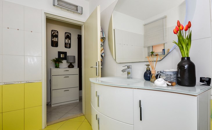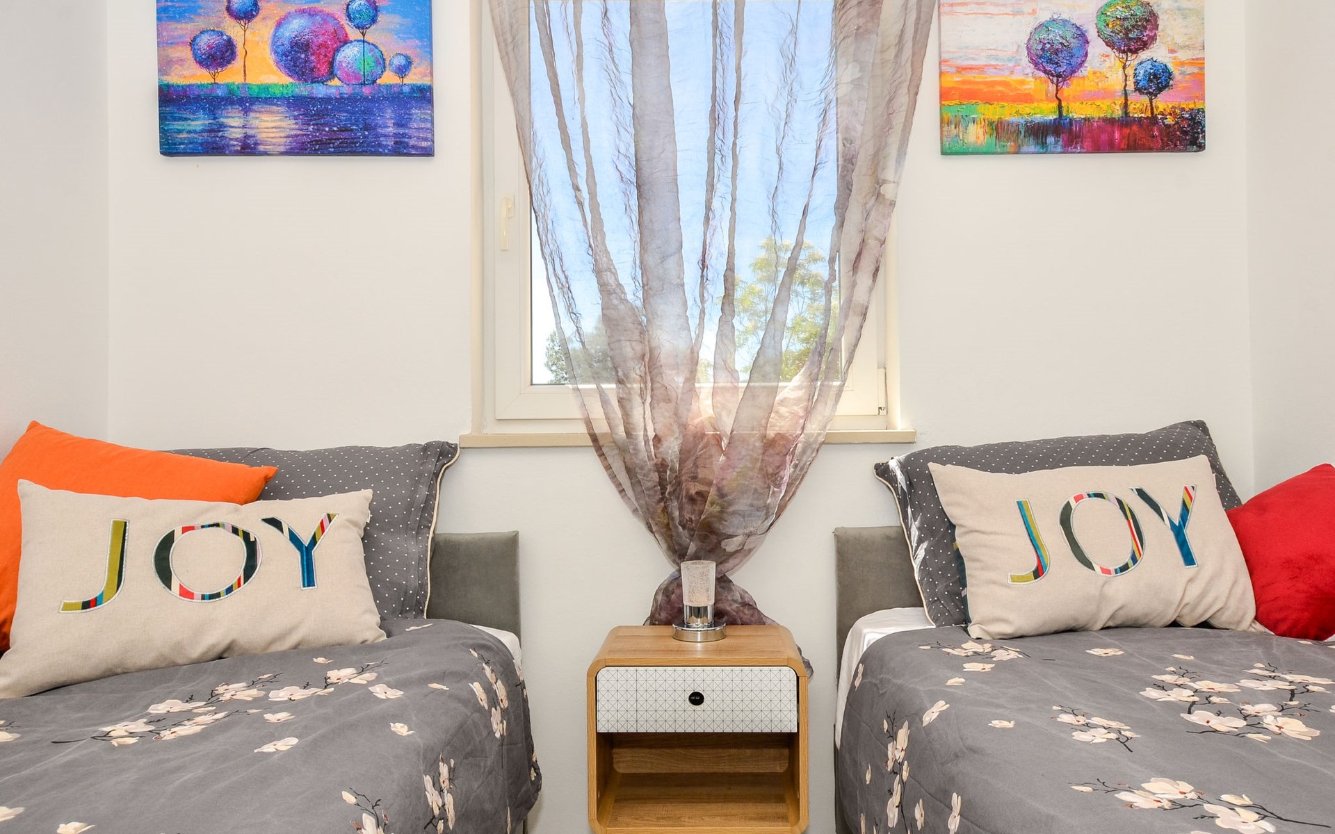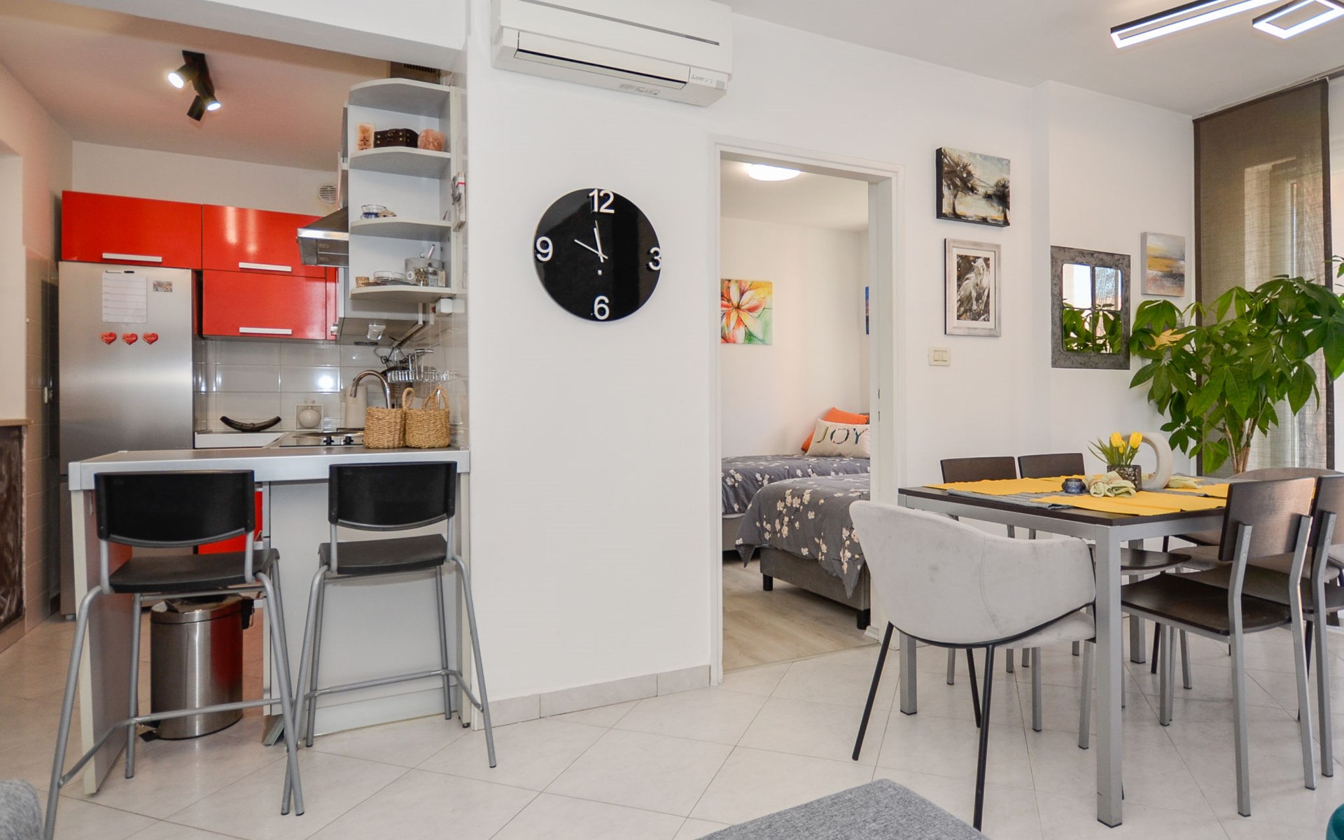 Apartment house "Kiki", 3 storeys. 1.5 km from the centre of Rabac, 5 km from the centre of Labin, 1.2 km from the sea, 1.2 km from the beach. Private: small garden 40 m2 with wildlife garden and trees. In the house: internet access. Parking at the house on the premises. Shop 500 m, supermarket 5 km, restaurant 1.2 km, bus stop 1.7 km, pebble beach 1.2 km. Please note: airfield 50 km from the property.