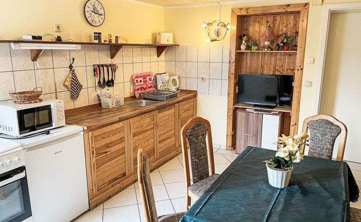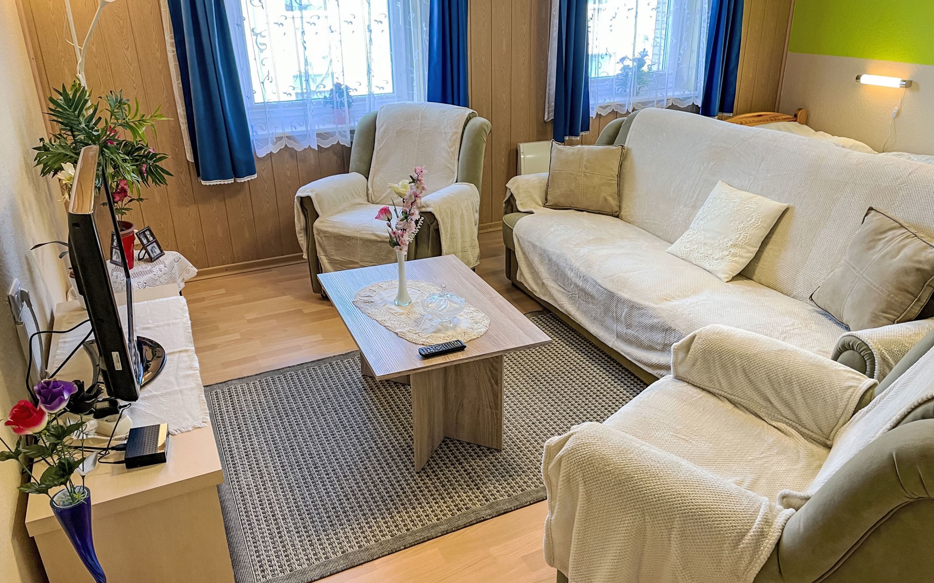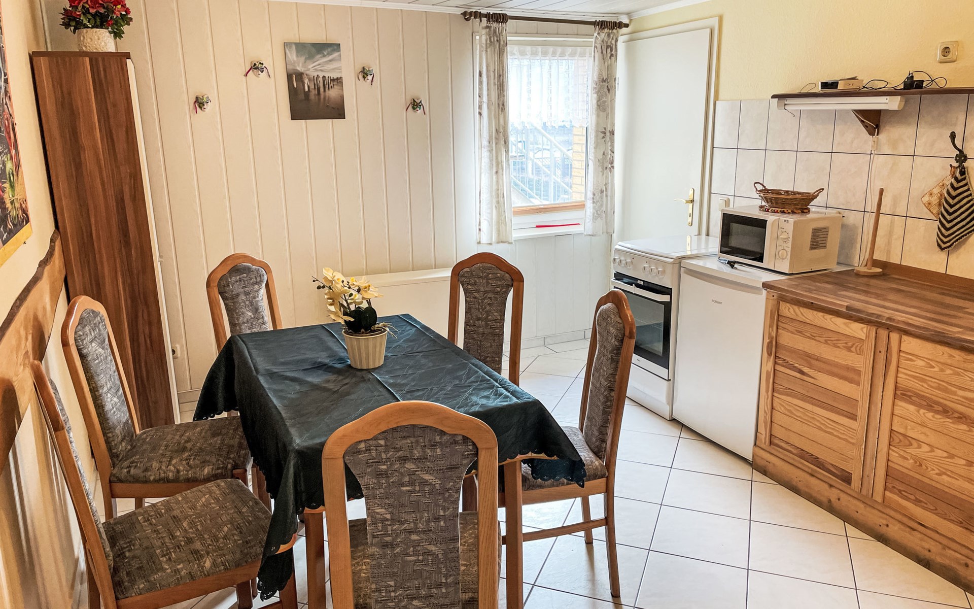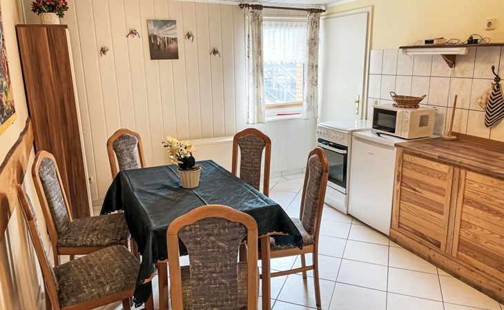 Apartment block "Old Hüsung". 500 m from the centre of Mirow, 12 km from the centre of Wesenberg, 45 km from the centre of Waren, in the residential district, 600 m from the lake. For shared use: property 2'000 m2 (fenced) with lawn and trees. Patio, garden furniture, barbecue, children's playground, parking on the premises. Shop 150 m, supermarket 600 m, restaurant 50 m, bus stop "Mirow ZOB" 600 m, grass beach 1.2 km, indoor swimming pool 25 km. Nearby attractions: Müritz Nationalpark 5 km. Bike storage on the courtyard property (not covered).