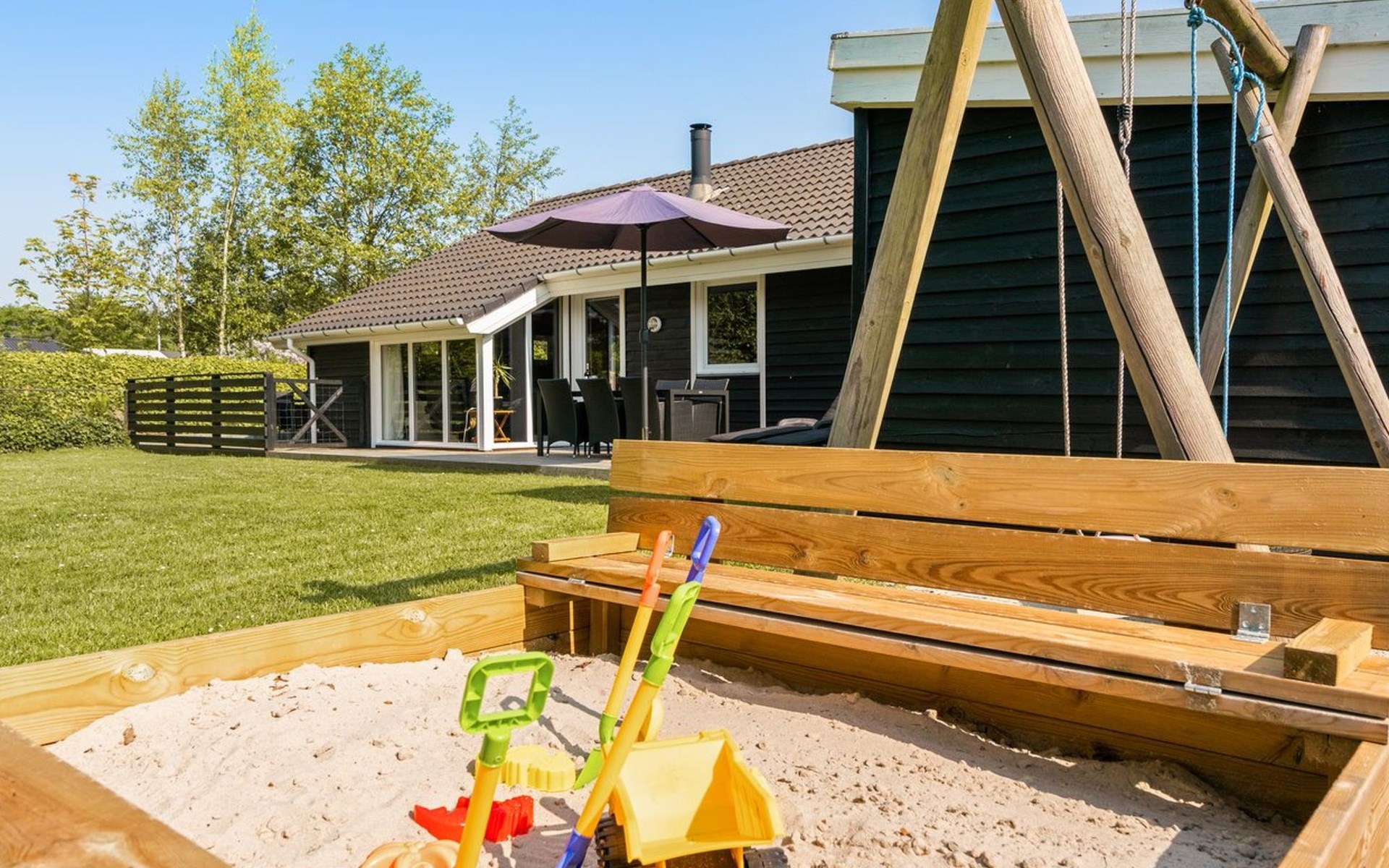 Single-family house, built in 2003. 6.6 km from the sea. For shared use: garden. Private: natural state property 810 m2, garden (fenced). Terrace (80 m2), children's playground (swing). In the house: sauna, washing machine, tumble dryer. Parking at the house. Grocery 800 m. The owner does not accept any youth groups.