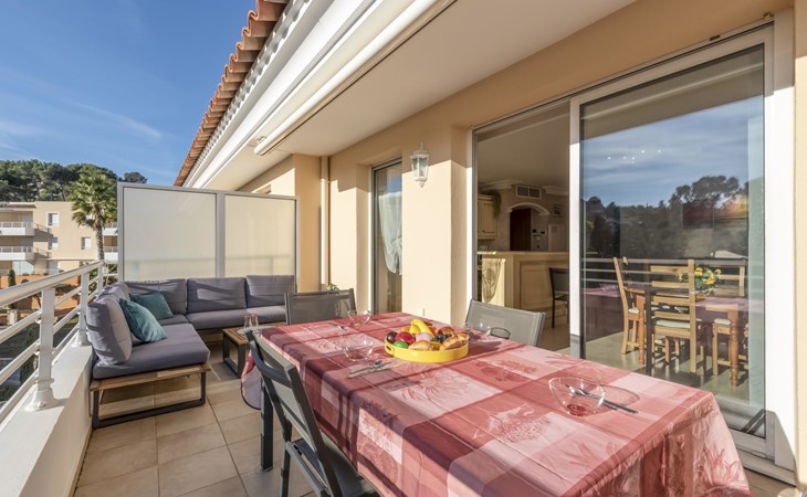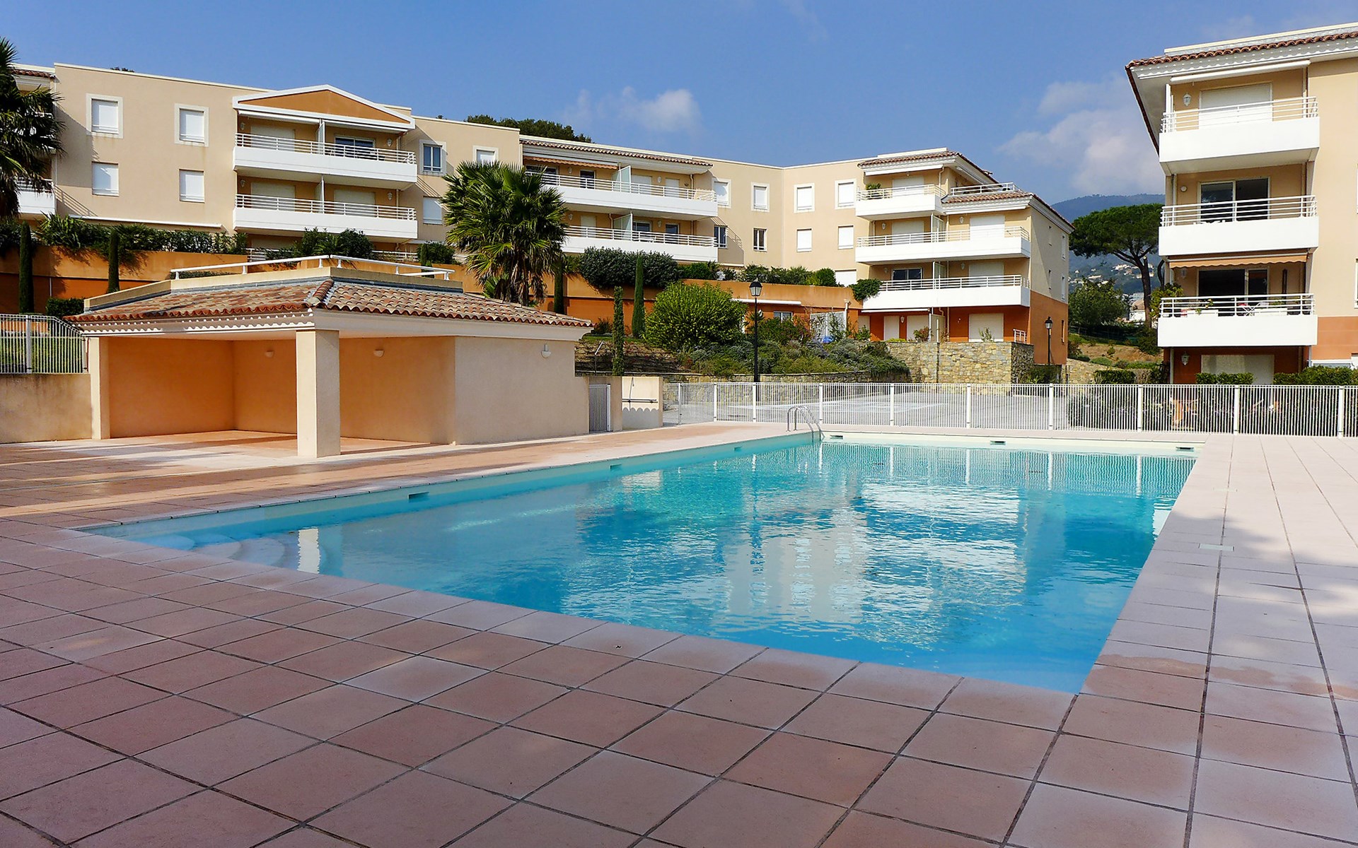Opening date of the swimming pool from May 15th to September 30th (subject to good weather conditions). Residence "Le Domaine de la Baie", 4 storeys. In the resort 50 m from the centre of Cavalaire sur Mer, in a sunny position, 300 m from the sea, 300 m from the beach. For shared use: swimming pool angular fenced (18 x 8 m, depth 120 - 210 cm, seasonal availability: 15.May. - 30.Sep.). Poolhouse with shower. In the complex: lift. Shop, grocery 100 m, supermarket 150 m, shopping centre 10 km, restaurant, bar, bakery, café 100 m, bus stop "Halte routière" 400 m, sandy beach "Taramis" 300 m, park "Aqualand" 24 km, diving center 300 m. Marina 200 m, minigolf 12 km. Nearby attractions: Azur Park, Paint-ball 13 km, Bowling à Port-Grimaud 13 km, St-Tropez 17 km, Ste-Maxime 24 km. Hiking paths: Sentier du Dattier 6.8 km, Sentier du littoral 9400 km, Toulon 60 km. Residence with electric gates.