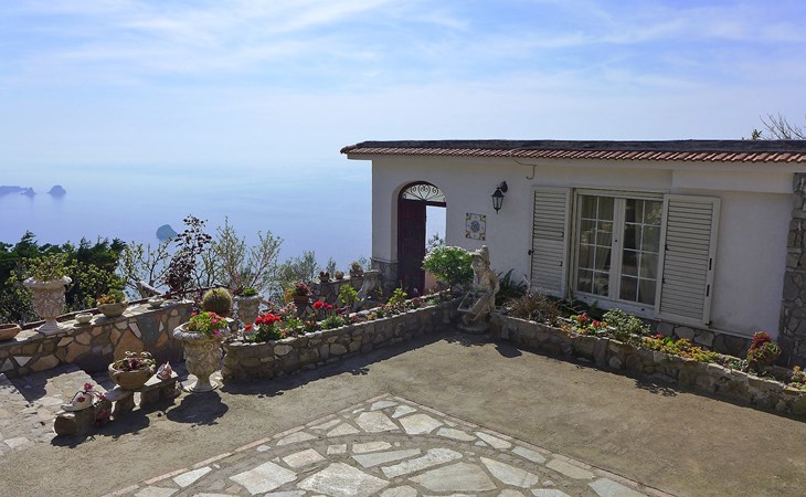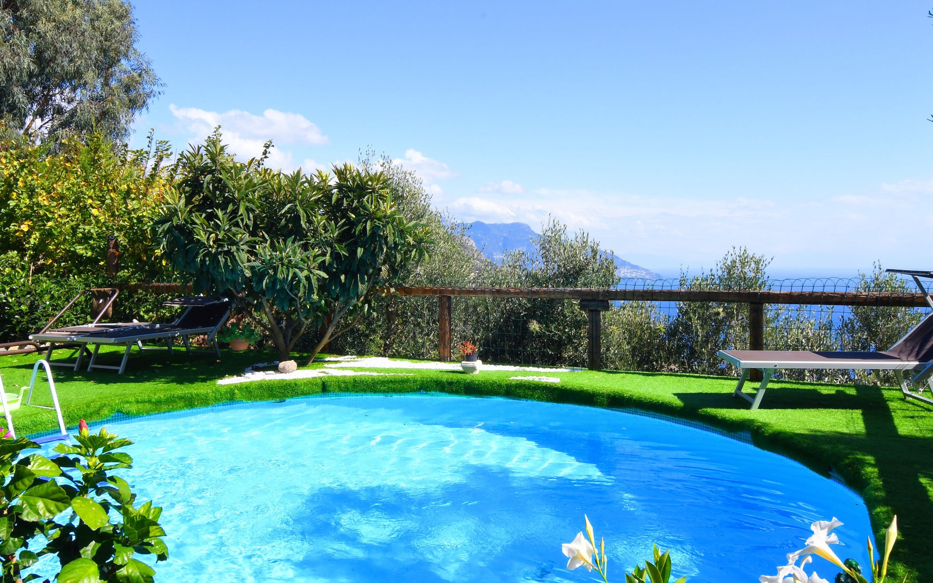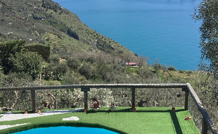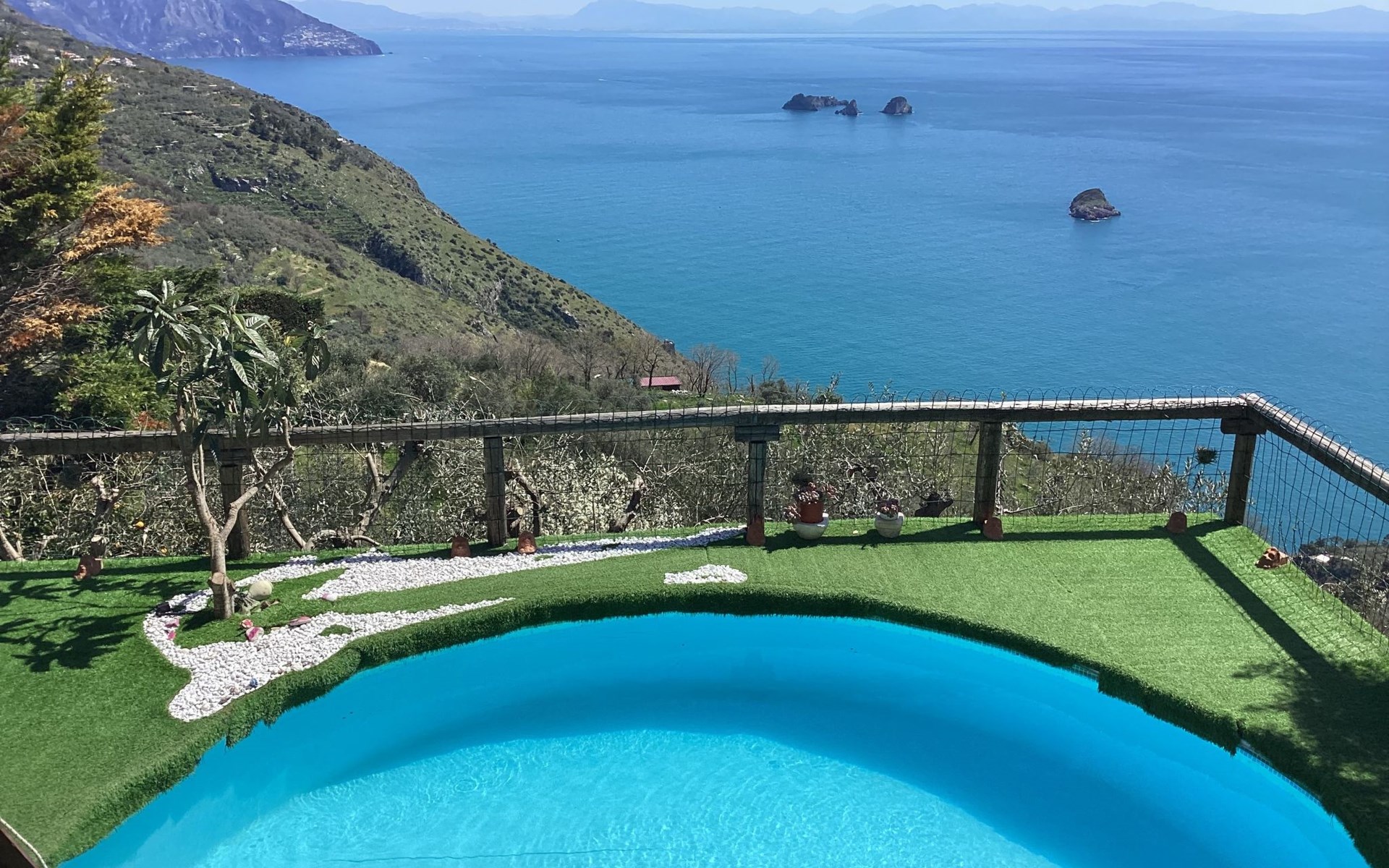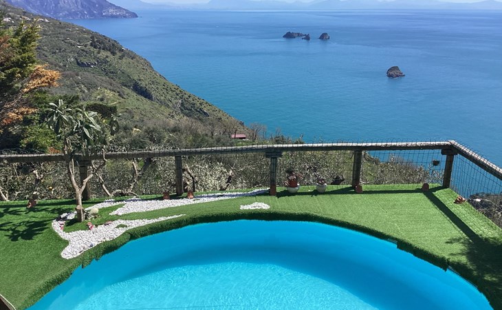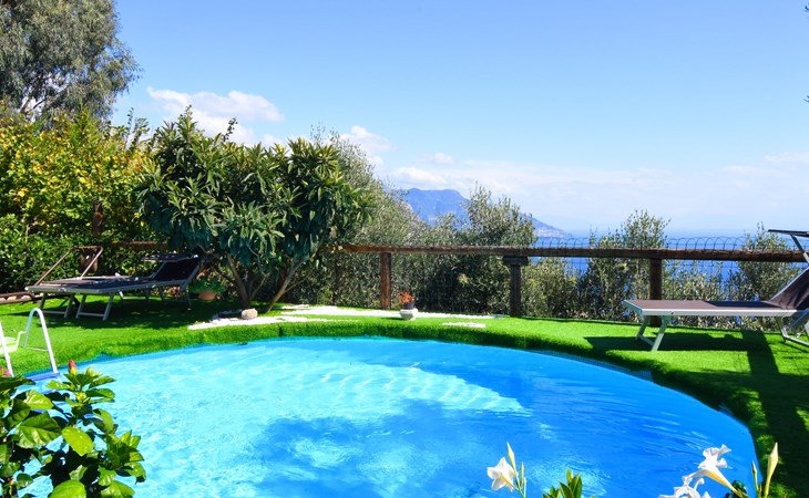 Sant'Agata sui 2 Golfi 9 km from Sorrento: Cosy, rustic 2-family house "Fontanarosa" in 2018, surrounded by trees. 2 apartments in the property. 2 km from the centre of Sant'Agata sui due Golfi, 9 km from the centre of Sorrento, in the district Torvillo, in a quiet, sunny, elevated position, 6 km from the sea, 6 km from the beach, in the countryside. For shared use: terraced garden (fenced) with flowers and trees. Garden furniture, barbecue. Private: swimming pool (5 m diameter, depth 120 cm, seasonal availability: 01.May. - 30.Sep.). Patio (50 m2), garden furniture, pool maintenance by the owner/gardener. In the house: WiFi. Room cleaning on request (extra). Pre-arrival grocery service. Airport transfer. 1.5 km long narrow motor access. Width of access road: 180 cm. Parking on the premises. Shop 2 km, grocery 2 km, supermarket 2 km, restaurant 2 km, bar 2 km, bakery 2 km, internet café 2 km, bus stop 2 km, railway station "Sorrento" 9 km, pebble beach "Marina del Cantone" 6 km, diving center 6 km. Nearby attractions: Sorrento 9 km, Positano 18 km, Amalfi 35 km, Pompei 30 km, Naples 60 km, Capri & Ischia Islands. Please note: car recommended. Baby equipment on request (extra). The keys‘ handover takes place by the agency Interhome in Sant'Agata, 4 km. The owner lives on the same property.