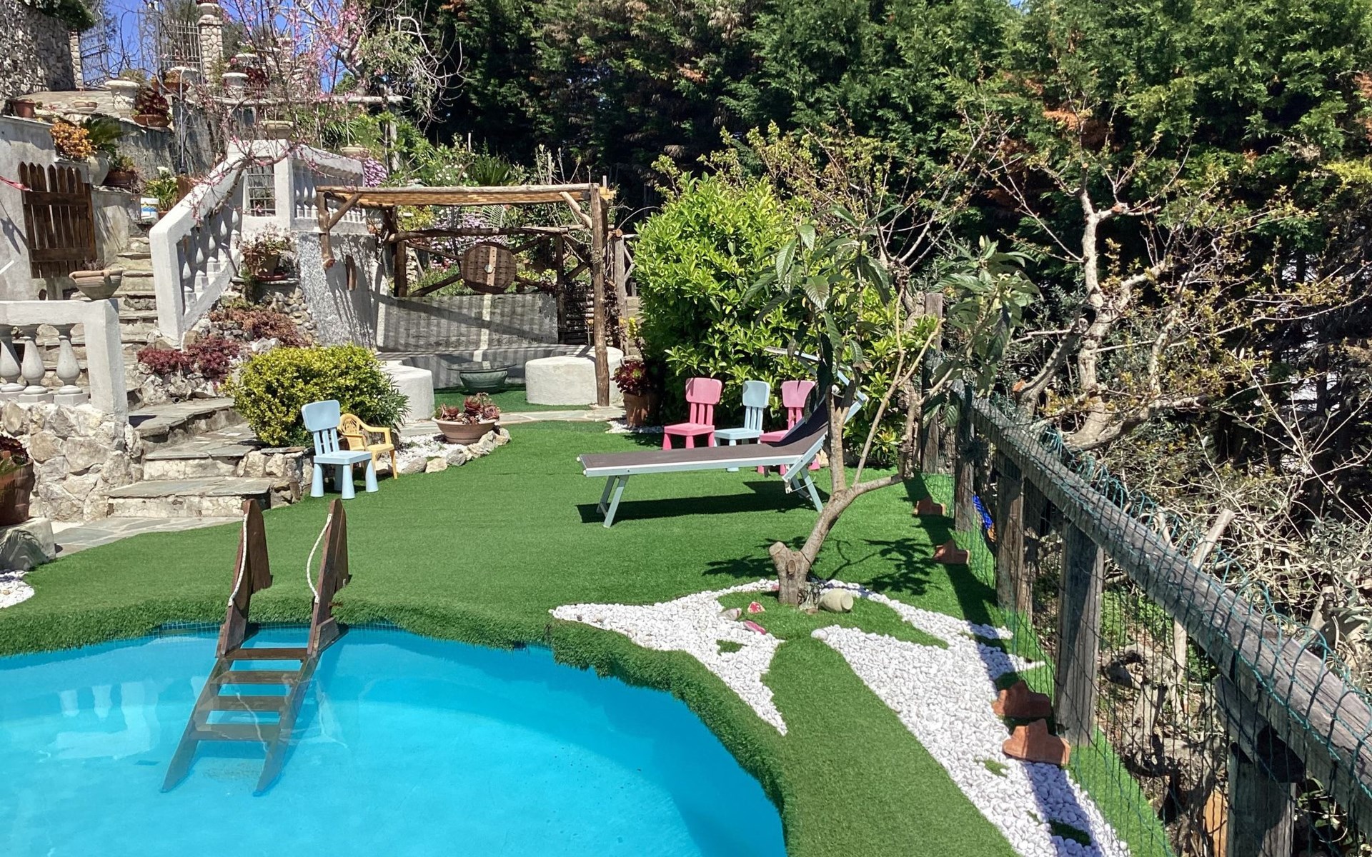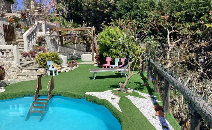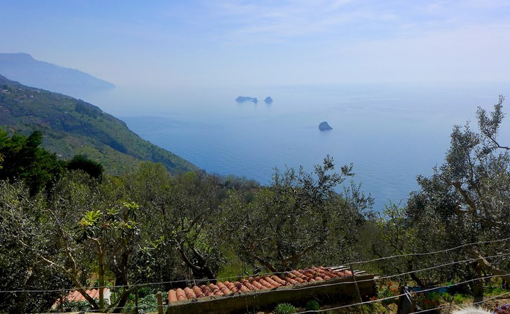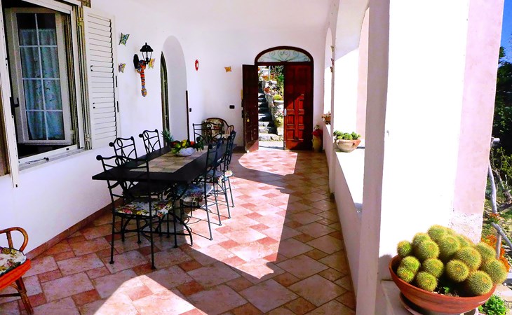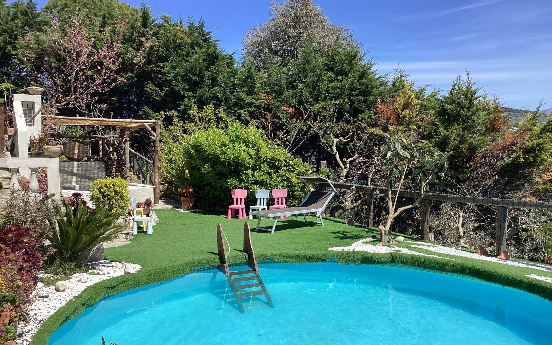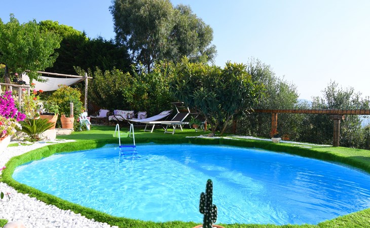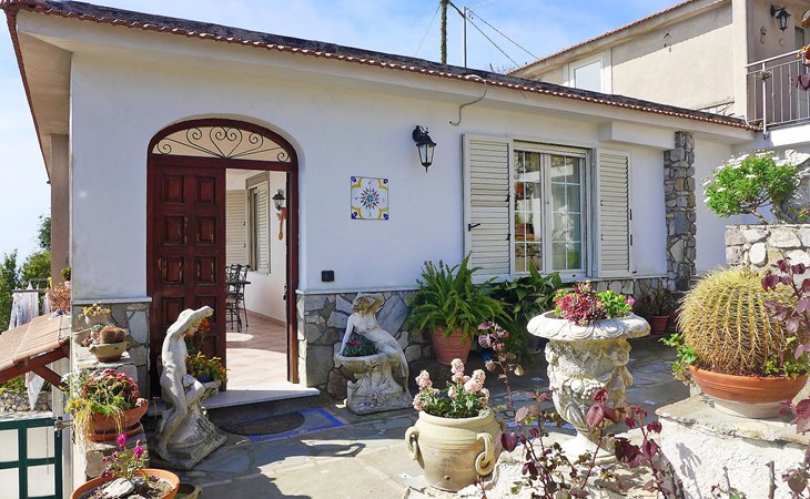 Sant'Agata sui 2 Golfi 9 km from Sorrento: Cosy, rustic 2-family house "Fontanarosa" in 2018, surrounded by trees. 2 apartments in the property. 2 km from the centre of Sant'Agata sui due Golfi, 9 km from the centre of Sorrento, in the district Torvillo, in a quiet, sunny, elevated position, 6 km from the sea, 6 km from the beach, in the countryside. For shared use: terraced garden (fenced) with flowers and trees. Garden furniture, barbecue. Private: swimming pool (5 m diameter, depth 120 cm, seasonal availability: 01.May. - 30.Sep.). Patio (50 m2), garden furniture, pool maintenance by the owner/gardener. In the house: WiFi. Room cleaning on request (extra). Pre-arrival grocery service. Airport transfer. 1.5 km long narrow motor access. Width of access road: 180 cm. Parking on the premises. Shop 2 km, grocery 2 km, supermarket 2 km, restaurant 2 km, bar 2 km, bakery 2 km, internet café 2 km, bus stop 2 km, railway station "Sorrento" 9 km, pebble beach "Marina del Cantone" 6 km, diving center 6 km. Nearby attractions: Sorrento 9 km, Positano 18 km, Amalfi 35 km, Pompei 30 km, Naples 60 km, Capri & Ischia Islands. Please note: car recommended. Baby equipment on request (extra). The keys‘ handover takes place by the agency Interhome in Sant'Agata, 4 km. The owner lives on the same property.