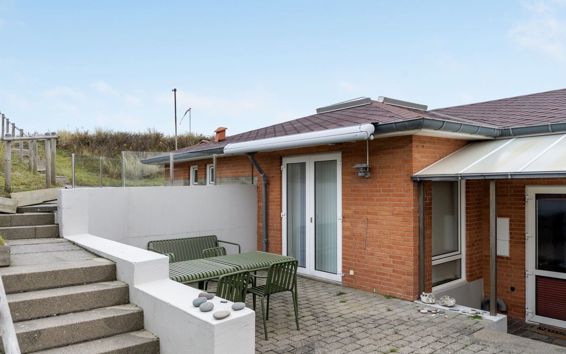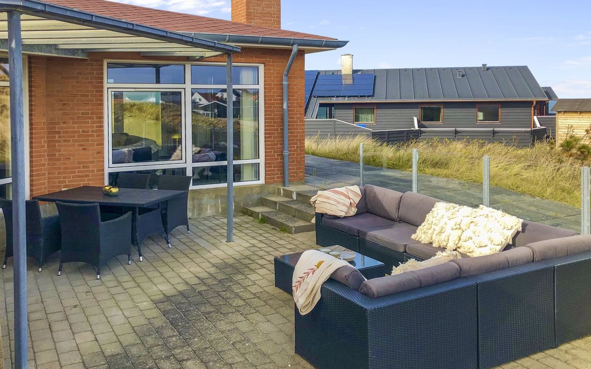Single-family house, built in 2002. 100 m from the sea. Private: natural state property 1'365 m2. Outdoor shower, barbecue. In the house: washing machine, tumble dryer. Parking at the house. Grocery 800 m. Golf course 5 km. The owner does not accept any youth groups.