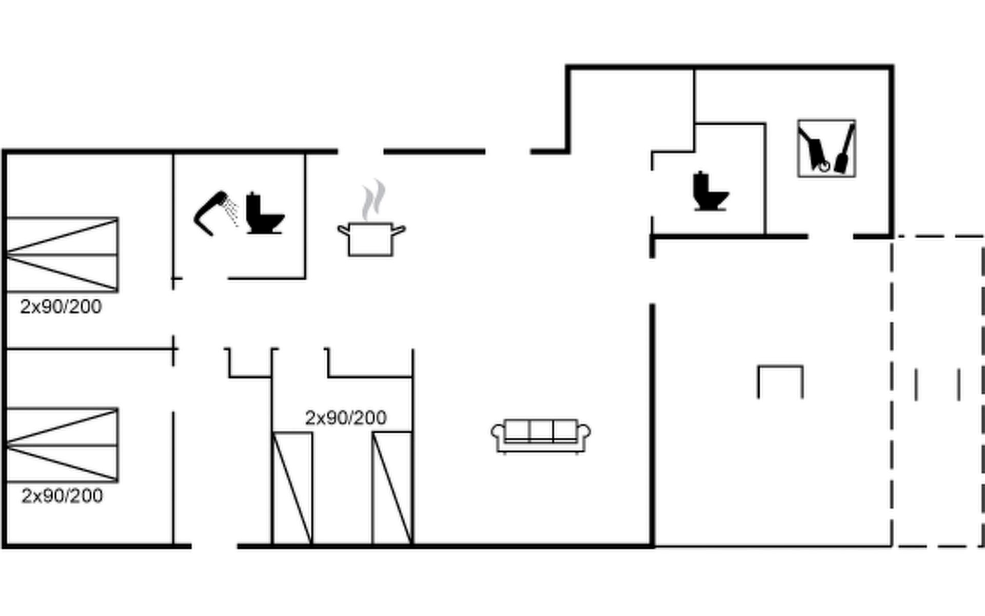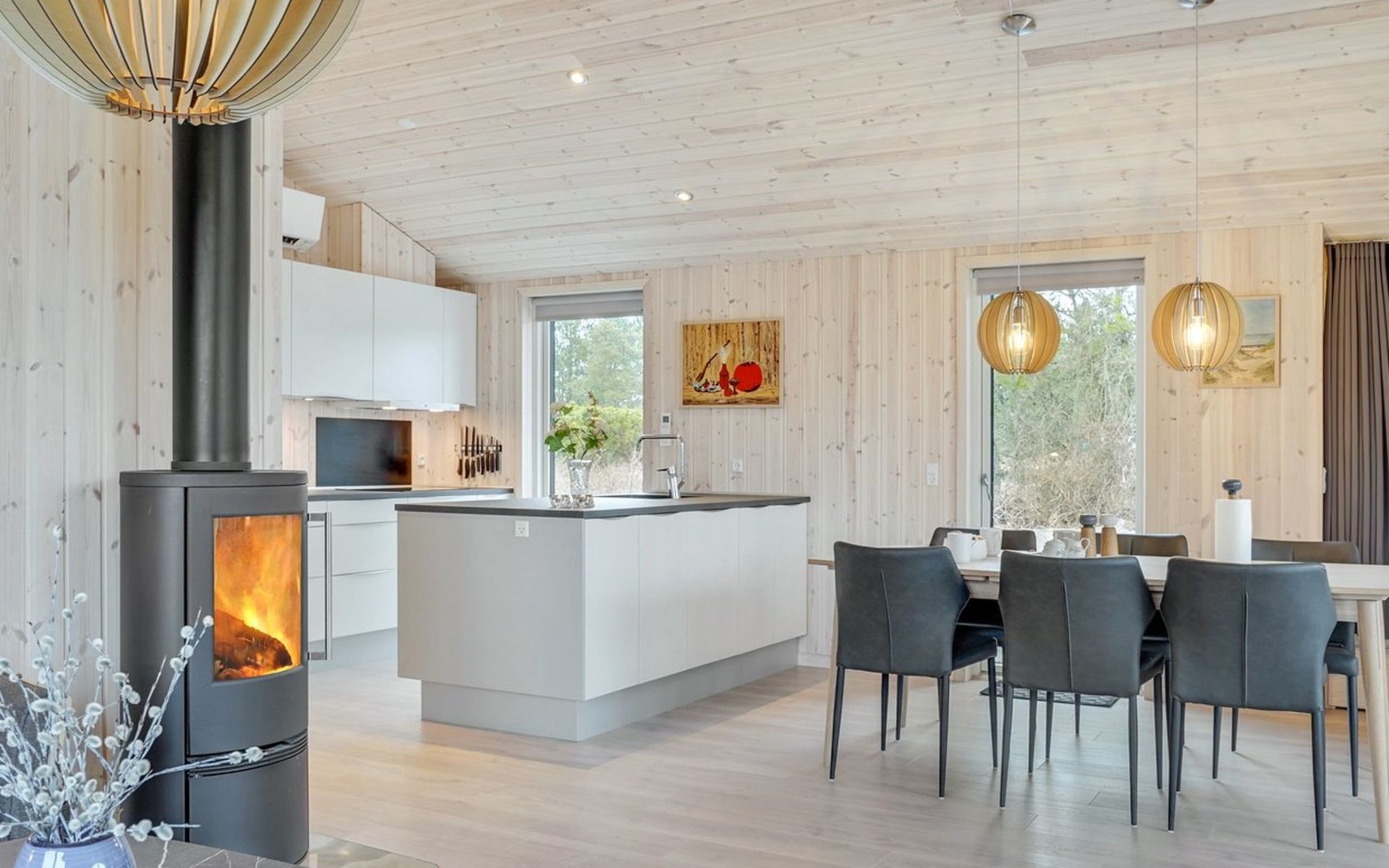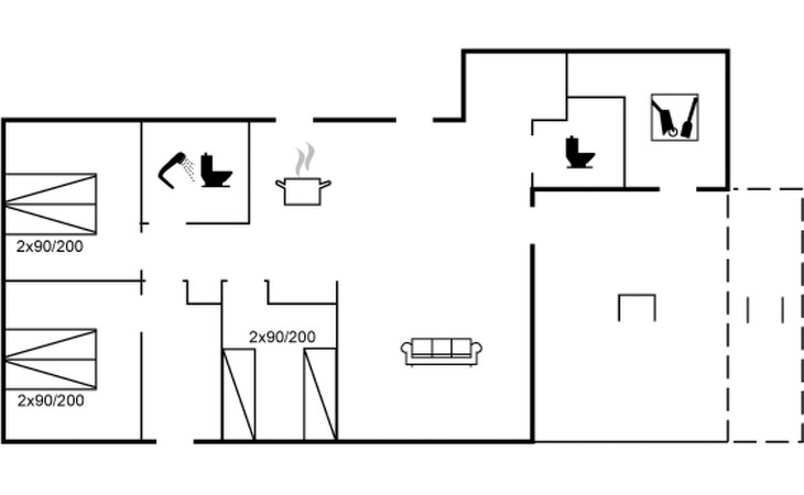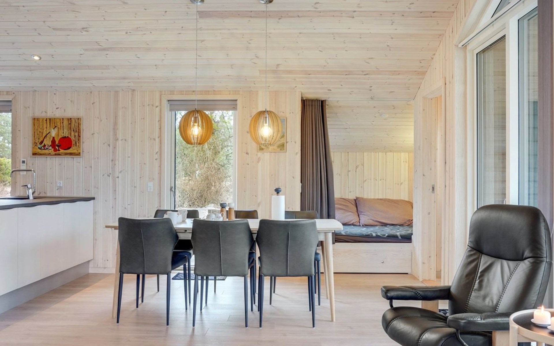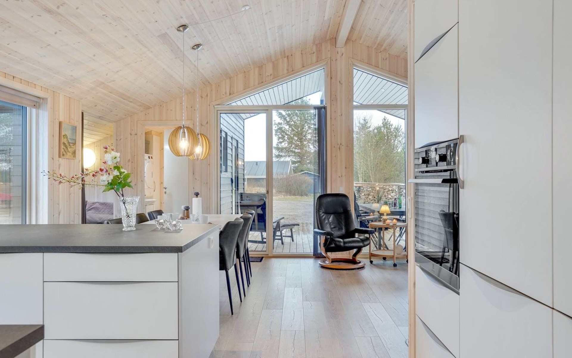 Single-family house, built in 2022. 225 m from the sea. Private: natural state property 835 m2. Outdoor shower, barbecue, children's playground (swing). In the house: washing machine, tumble dryer. Parking at the house. E-charging station. Grocery 5 km. The owner does not accept any youth groups.