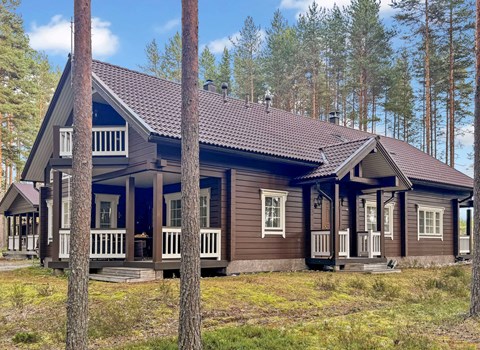 Log-built cabin. On the ground floor, spacious living room, kitchen, 2 bedrooms (both with two beds), WC with shower. On the upper floor, two bedrooms, one with two beds and another with double bed and two single beds, sauna (electric sauna stove), WC / washroom and dressing room. In the backyard, there is a covered cooking area with solid masonry grill.