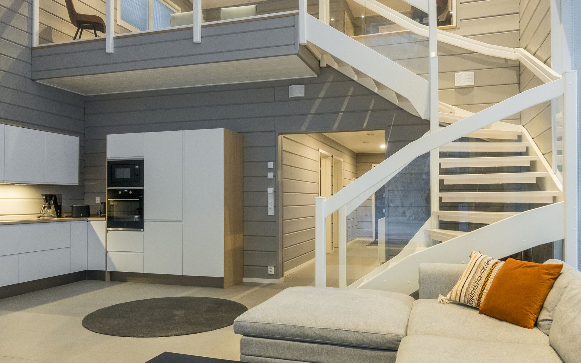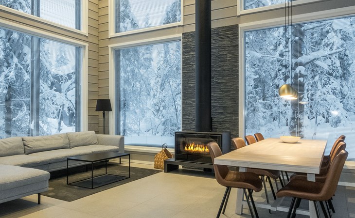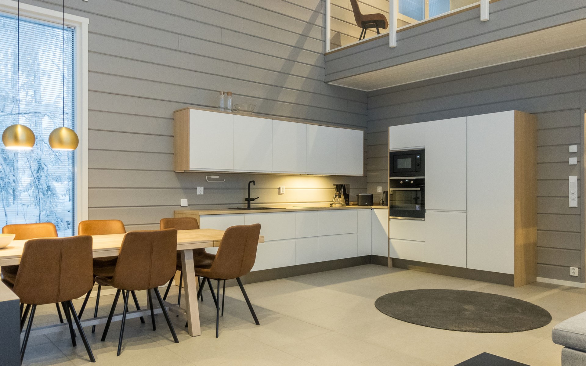 A traditional electric sauna provides relaxation after long days. From the dressing room, you have access to the terrace, where you can enjoy the fresh air and admire the surrounding landscape.