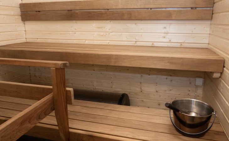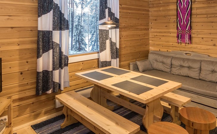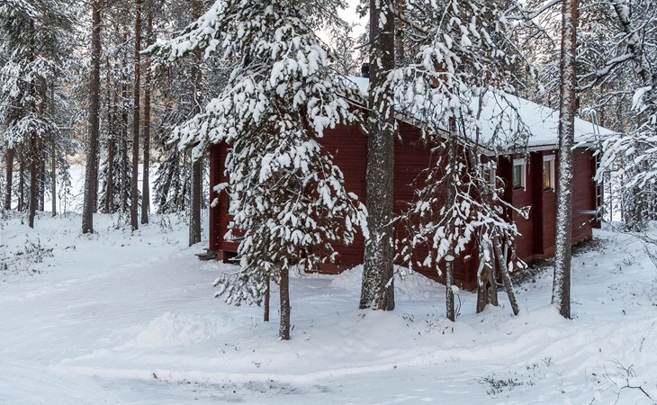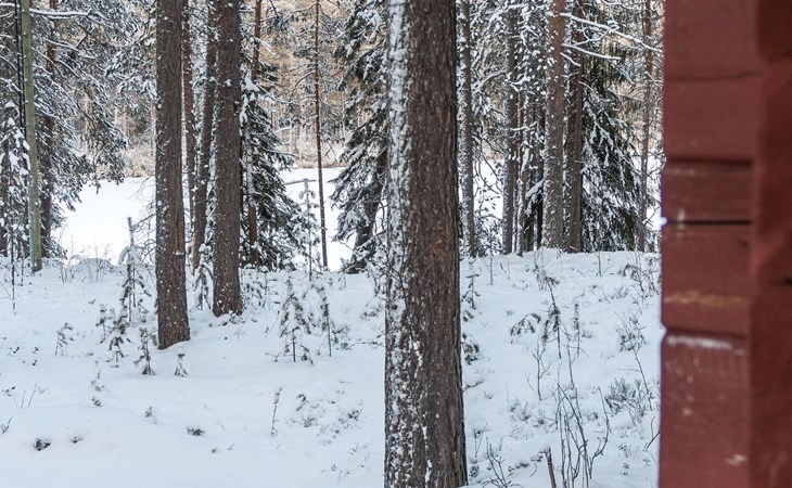 Lean-to shelter in shared use for 3 cottages. Lakeside sauna (wood-heated stove, water must be carried from the lake) on request during summer (additional fee).