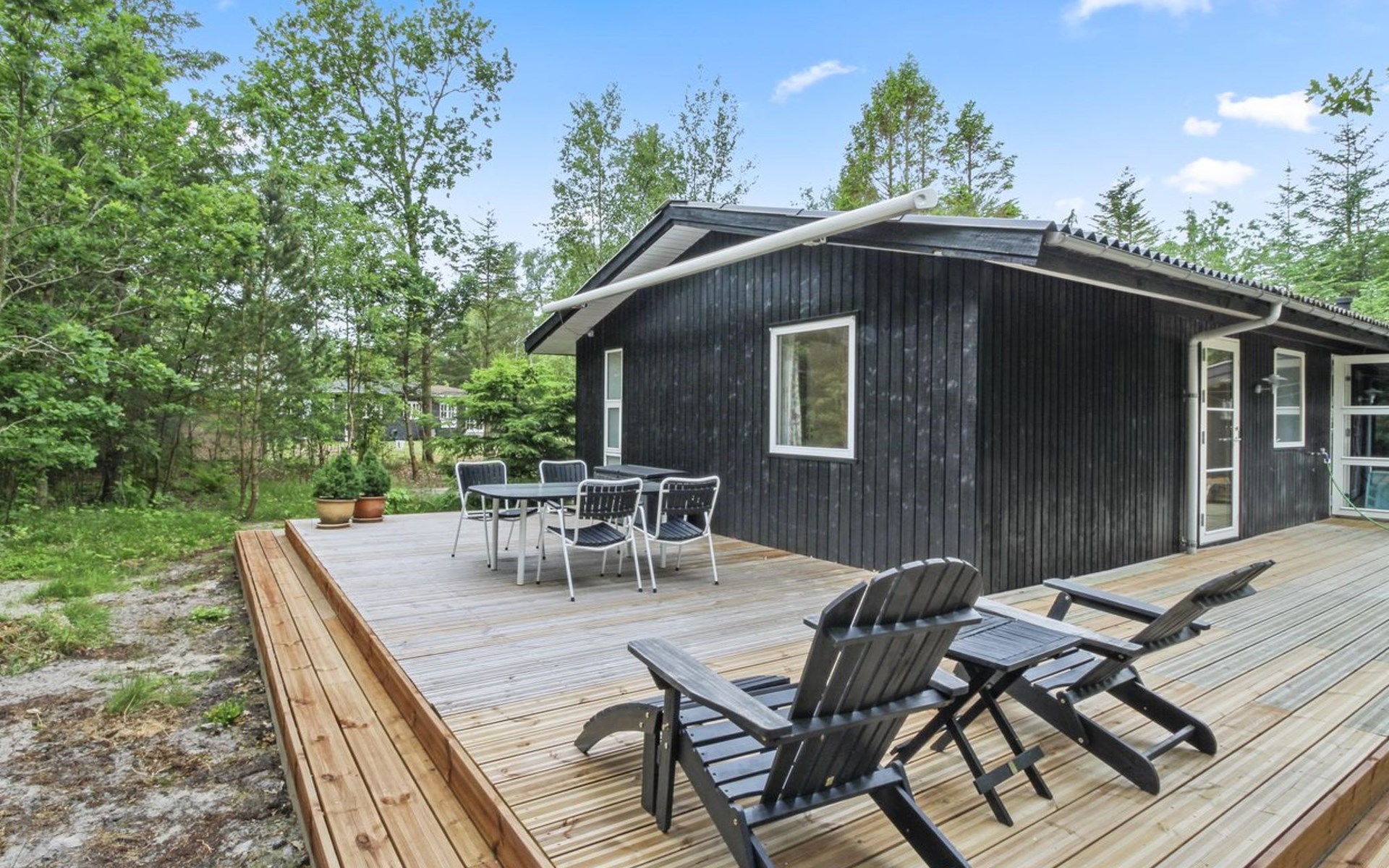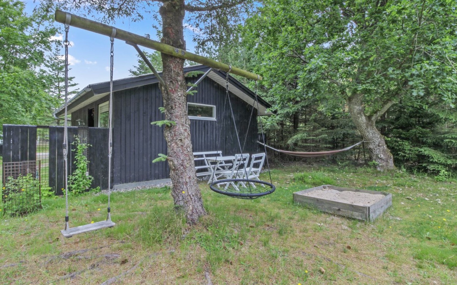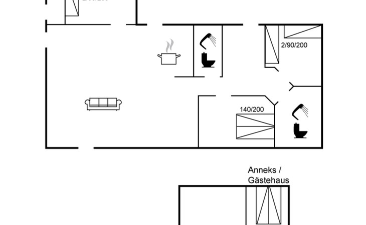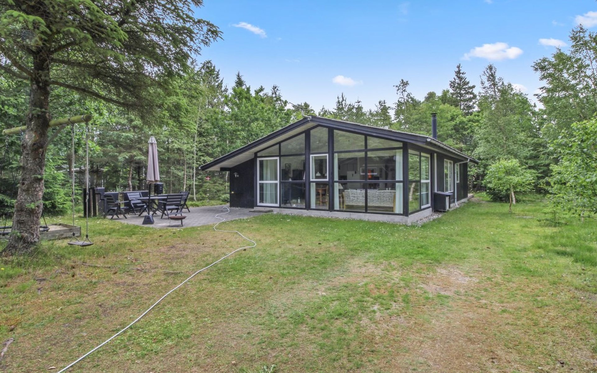 Single-family house, built in 1979. 150 m from the sea. Private: natural state property 1'272 m2. Outdoor shower, terrace (25 m2), barbecue, children's playground (swing). In the house: washing machine, tumble dryer. Parking at the house. Grocery 2.5 km. The owner does not accept any youth groups.